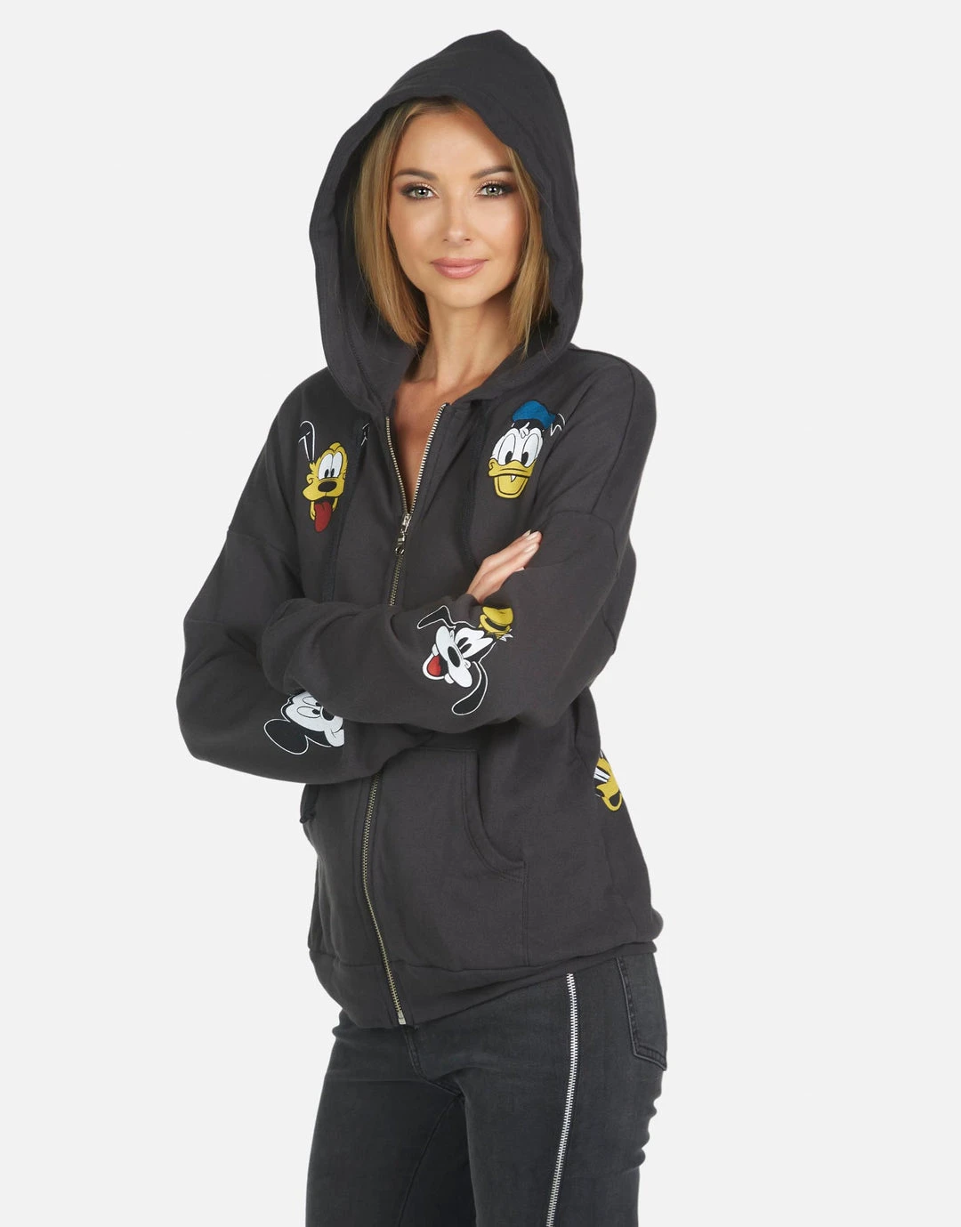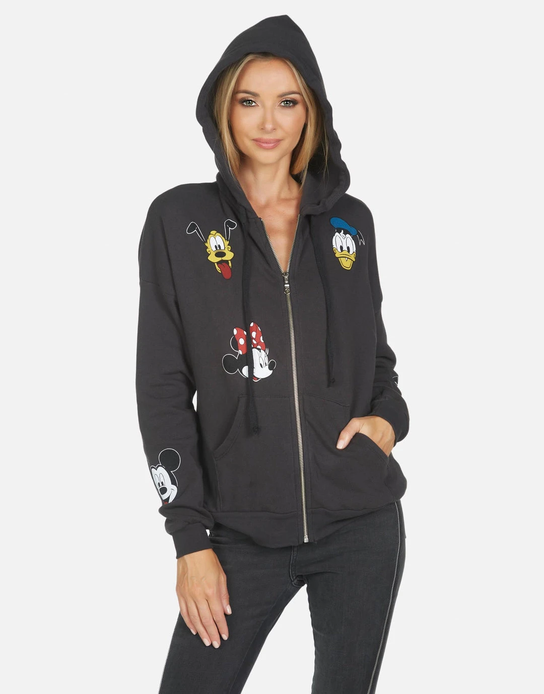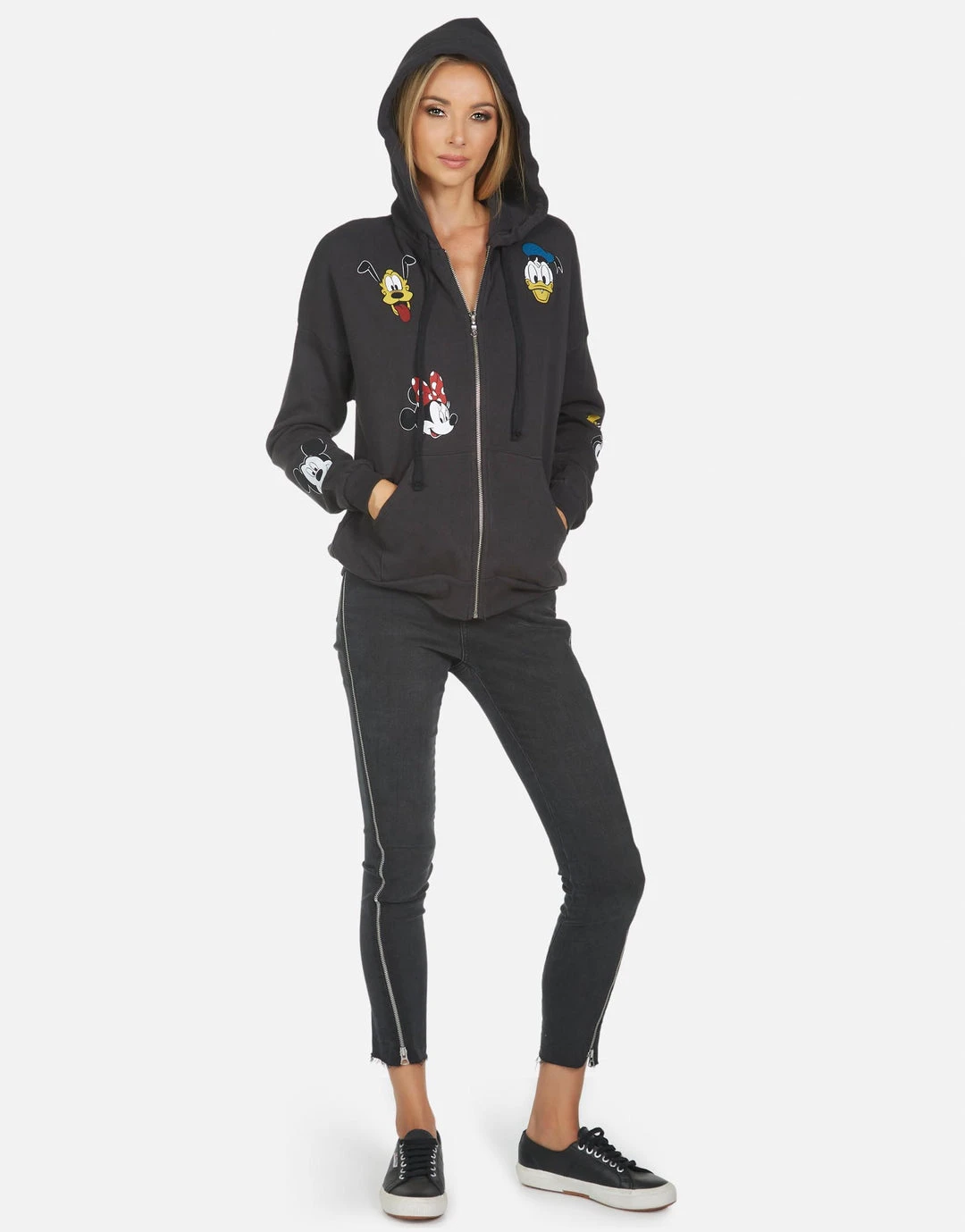 Mickey Crew Printed on Ultra Soft Lightweight Hoodie in Onyx by Lauren Moshi.