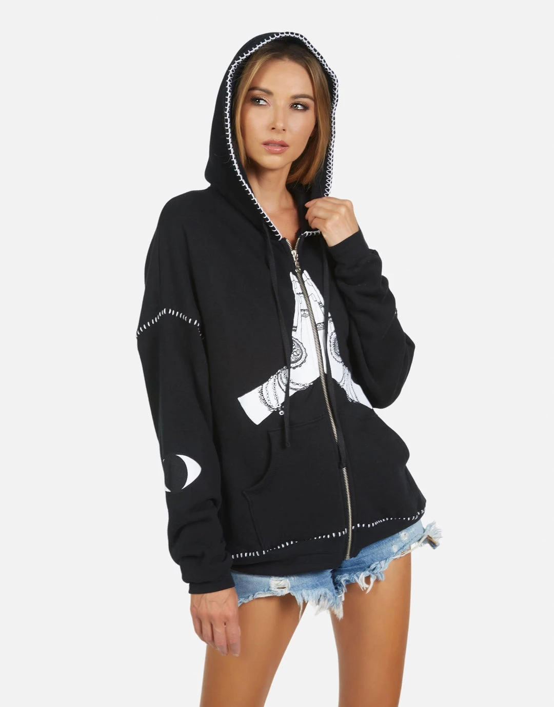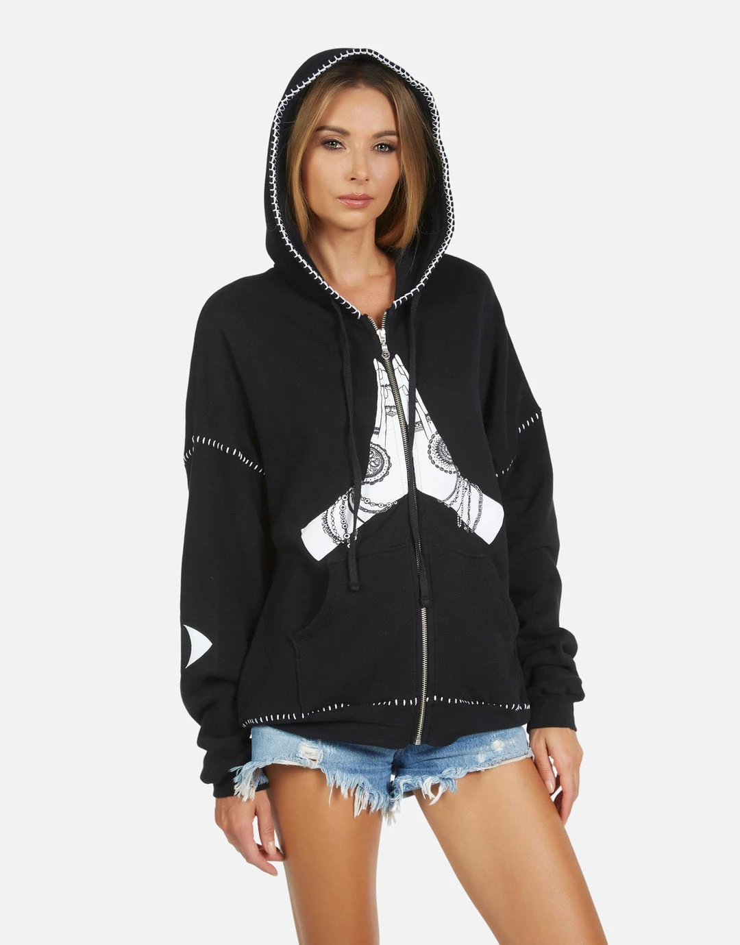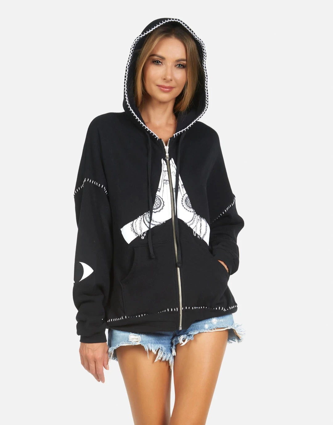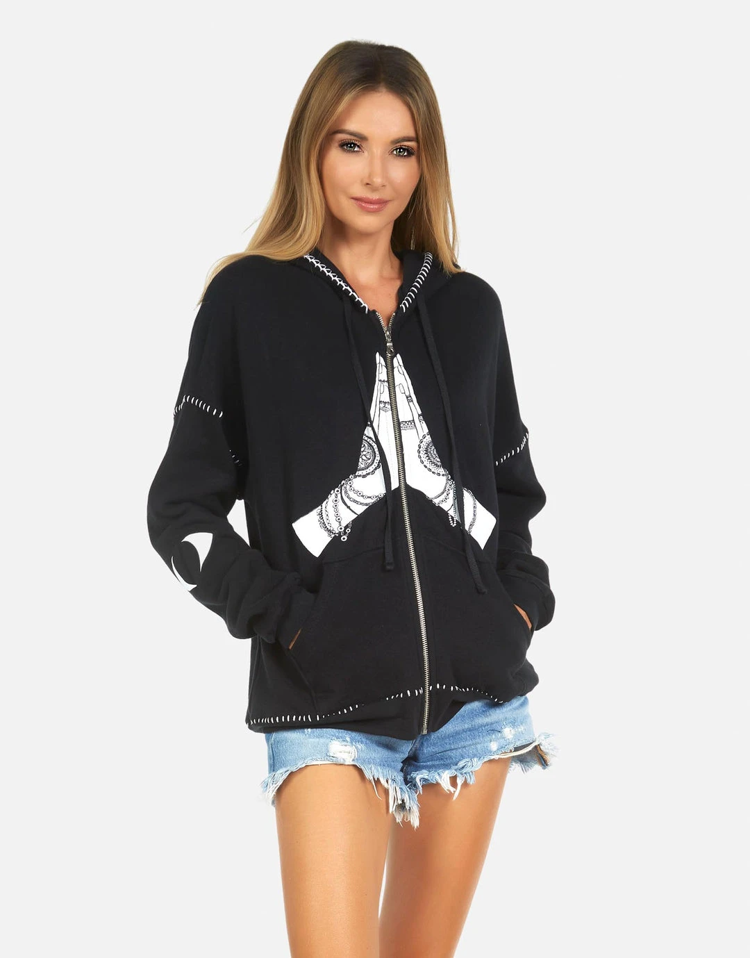 Prayer Hands Printed on Ultra Soft Lightweight Hoodie in Black by Lauren Moshi.