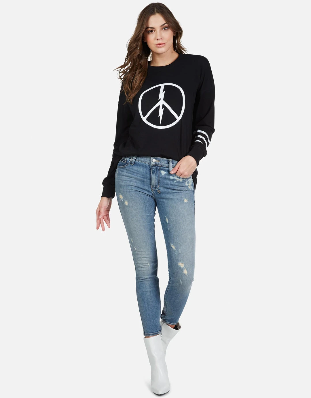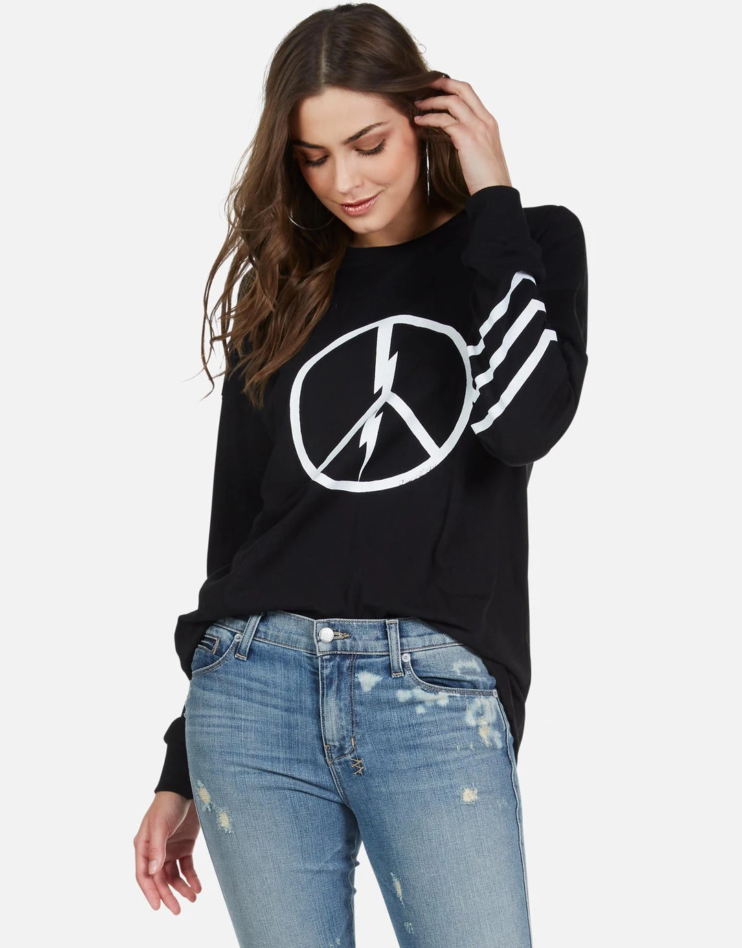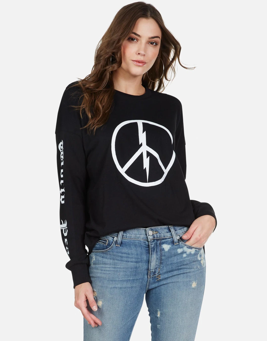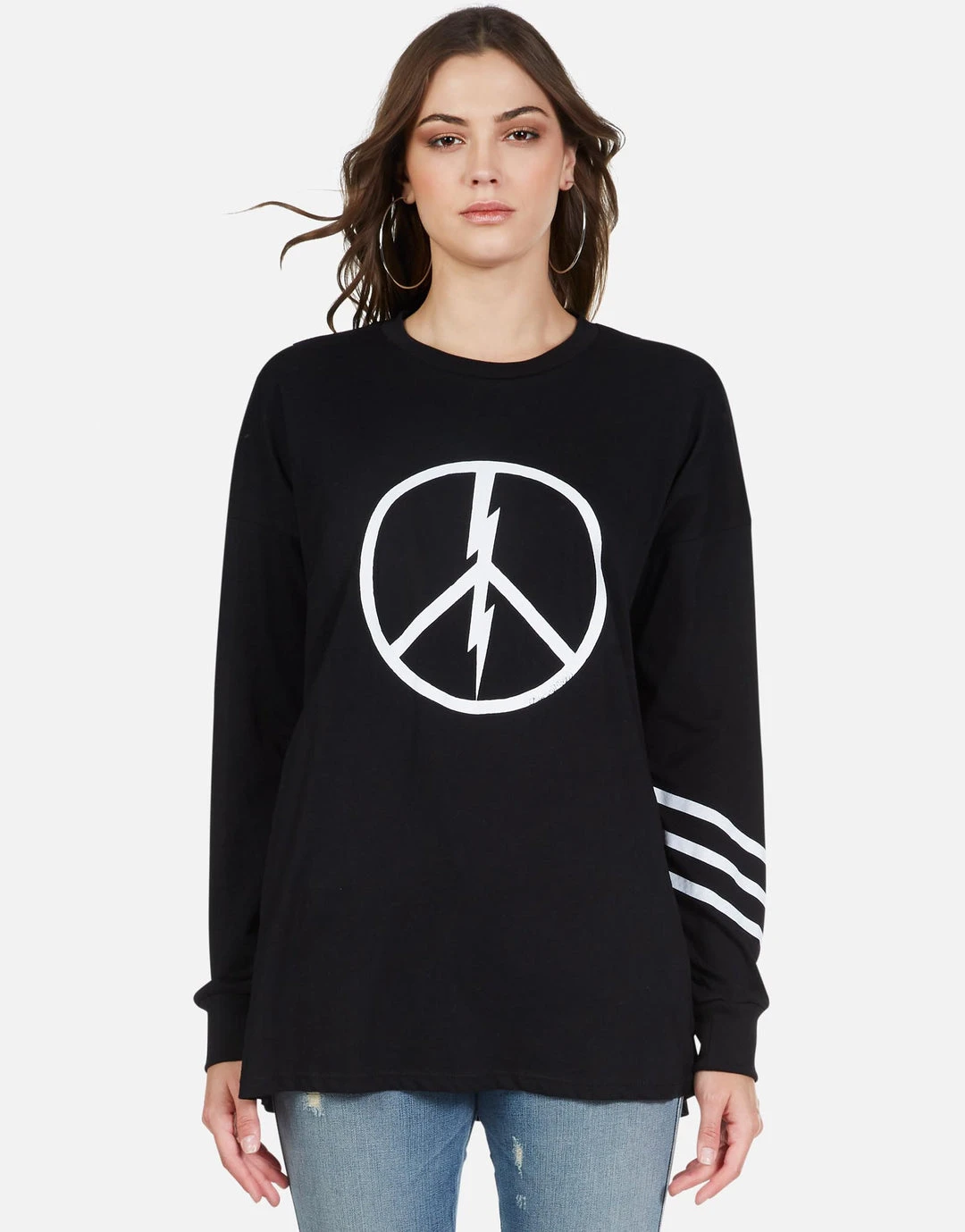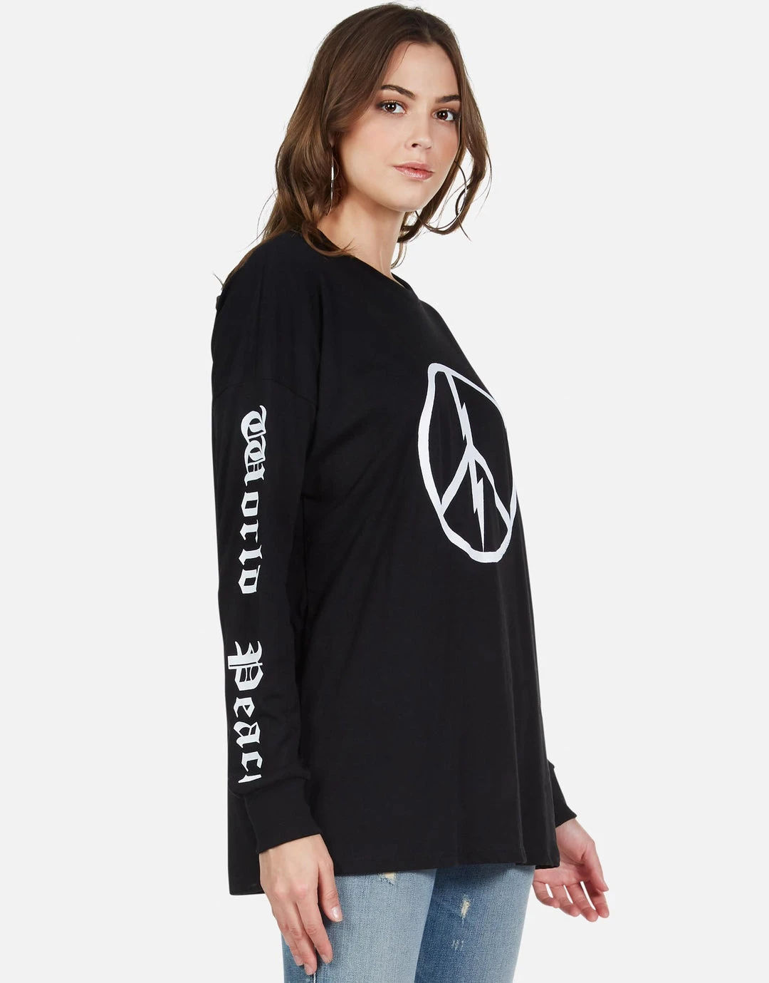 World Peace Lightning Printed on Ultra Soft Lightweight Tee in Black by Lauren Moshi.