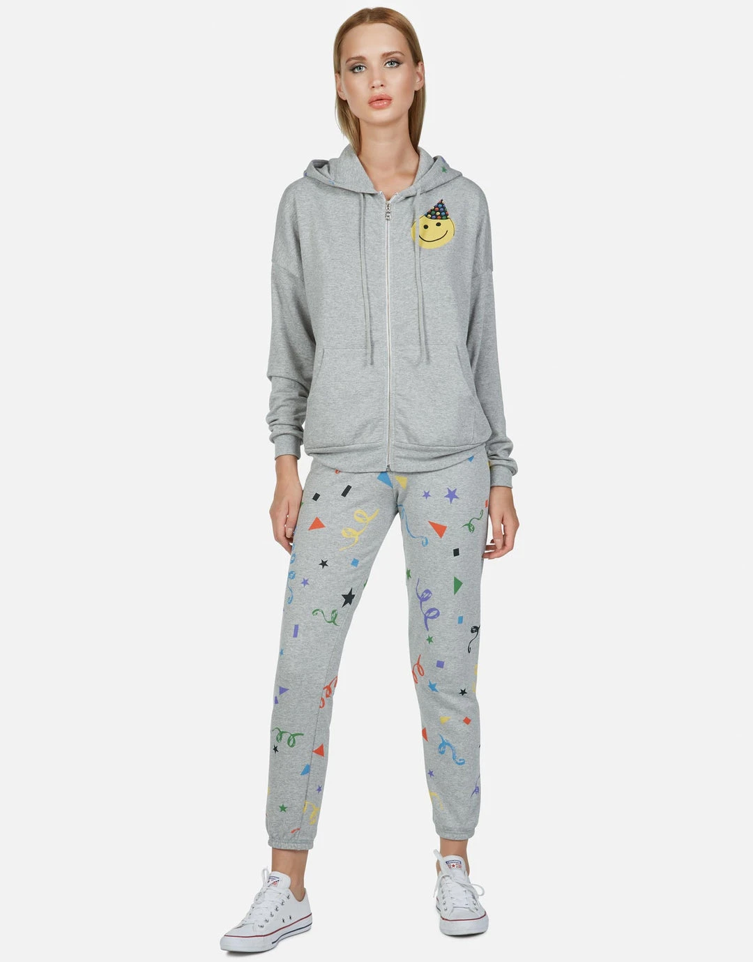 Confetti Printed on Ultra Soft Lightweight Sweatpant in Heather Grey by Lauren Moshi.