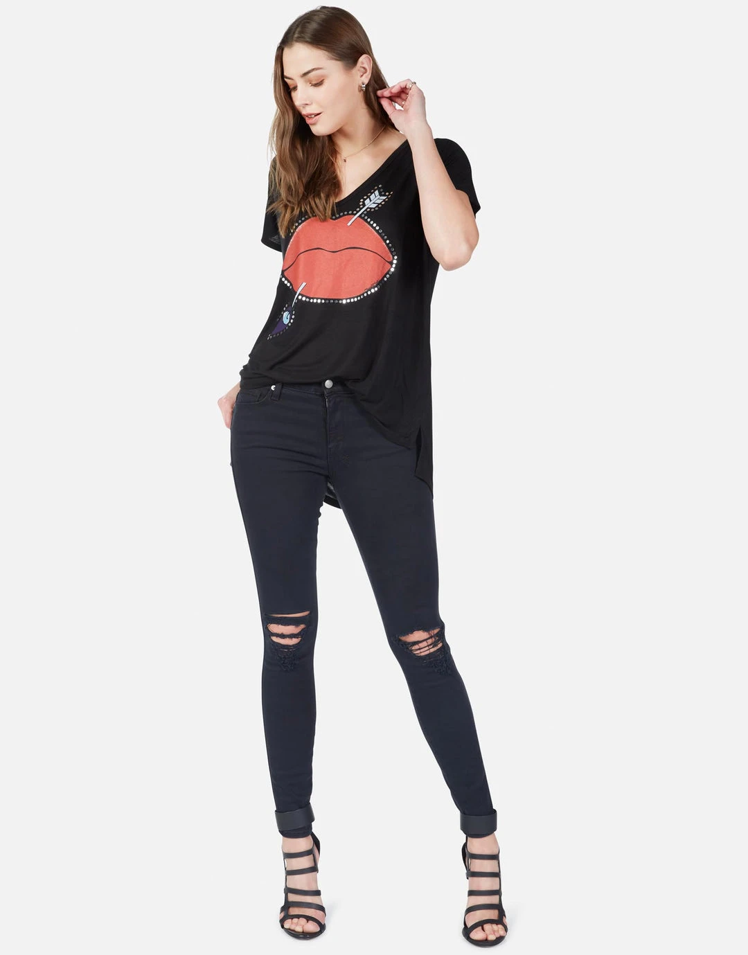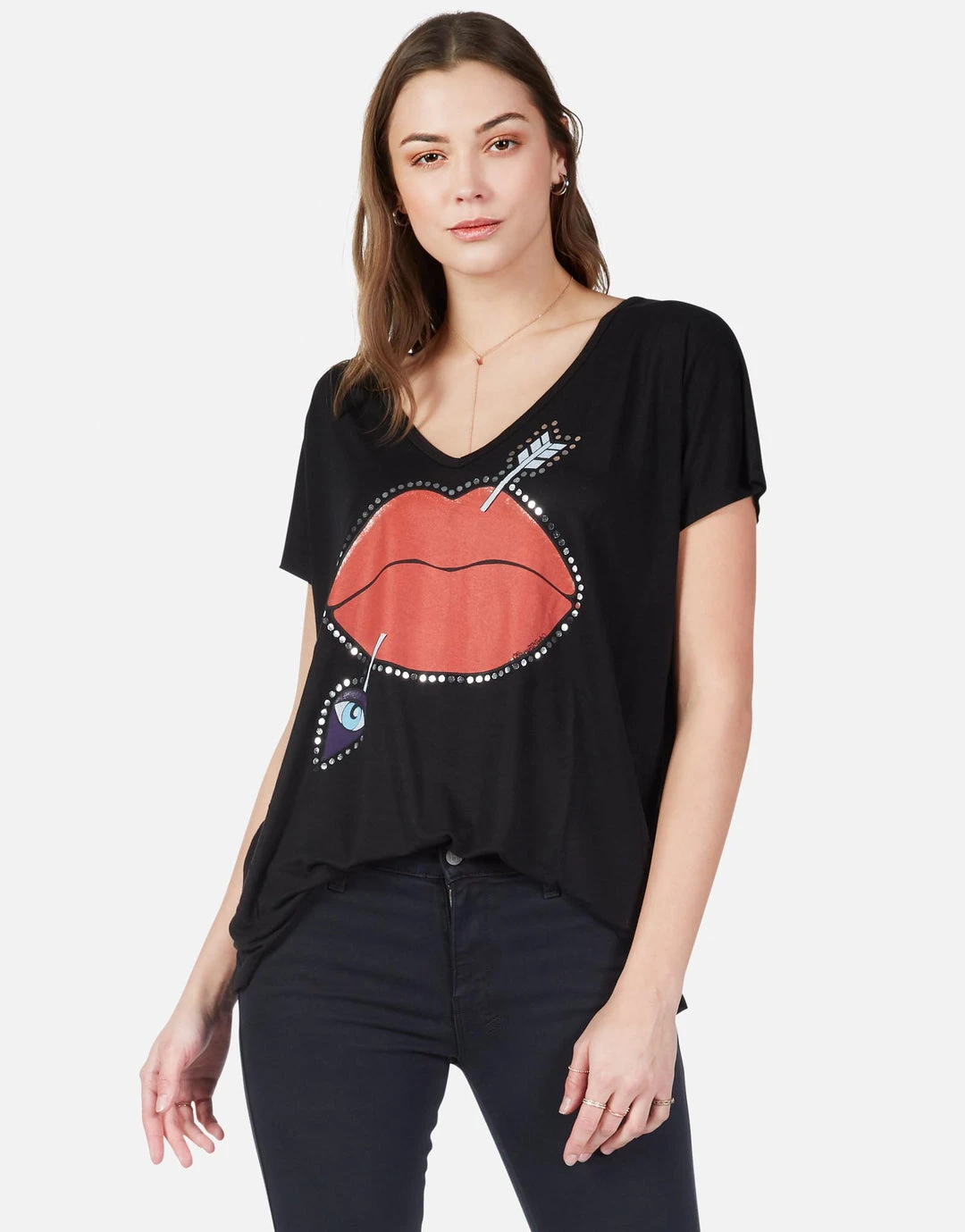 Arrow Lip Printed on Ultra Soft Lightweight Tee in Black by Lauren Moshi.