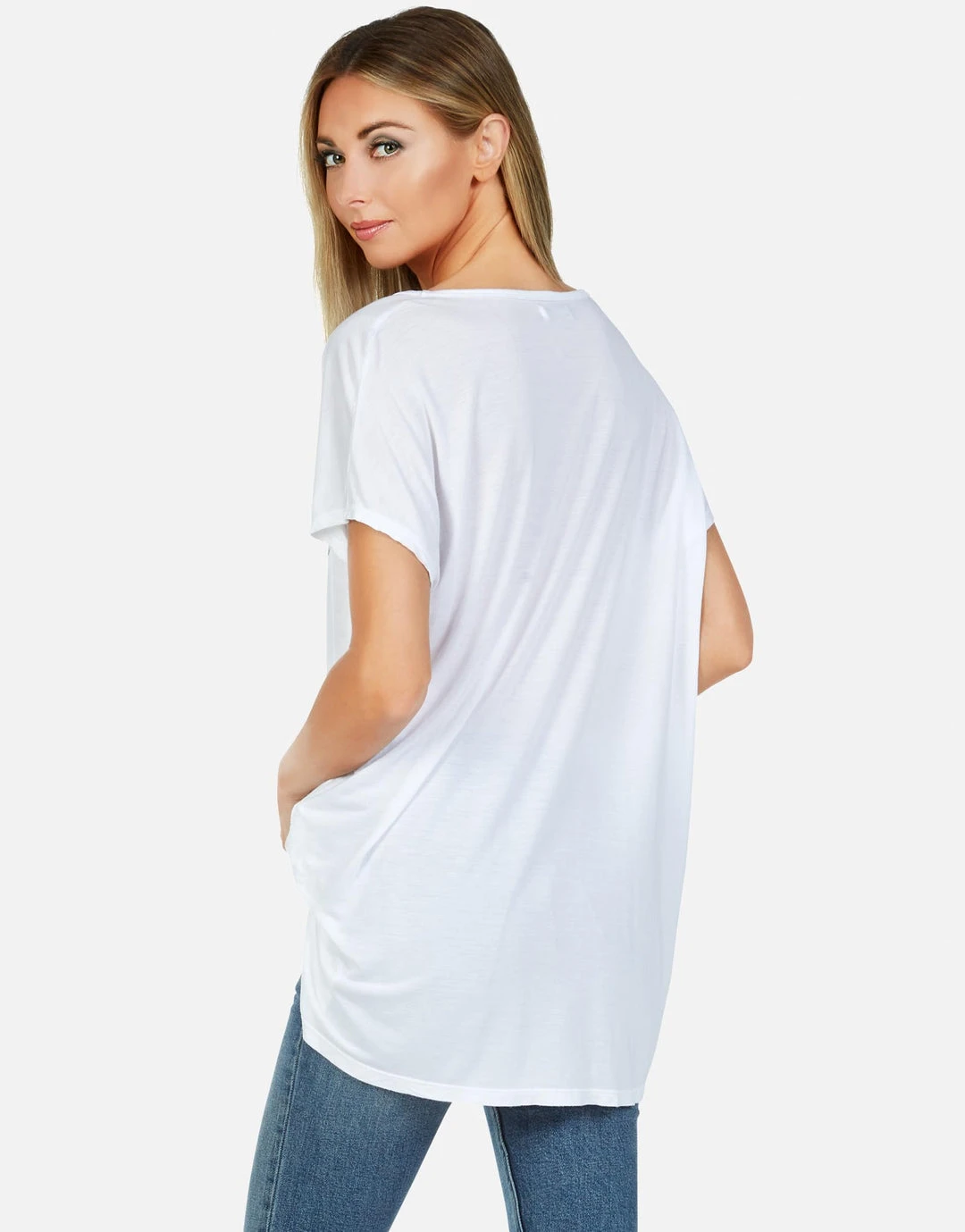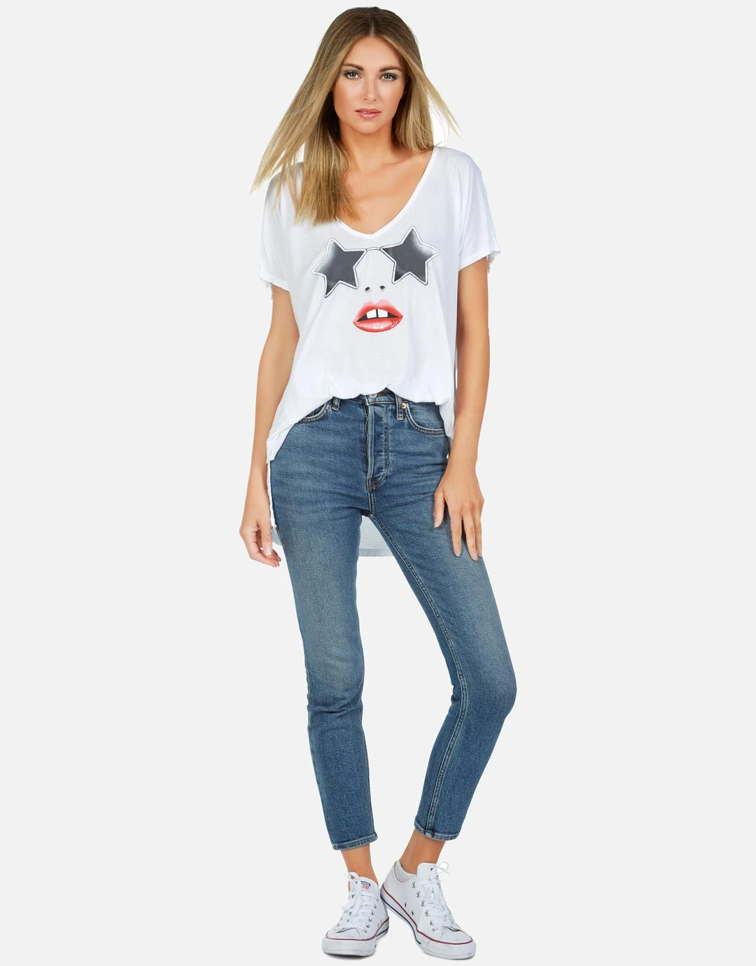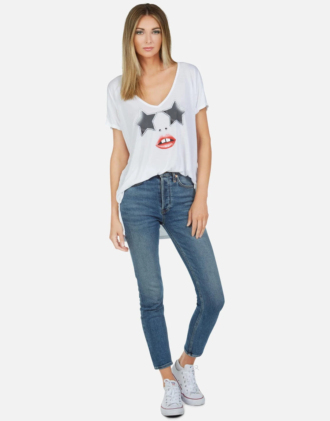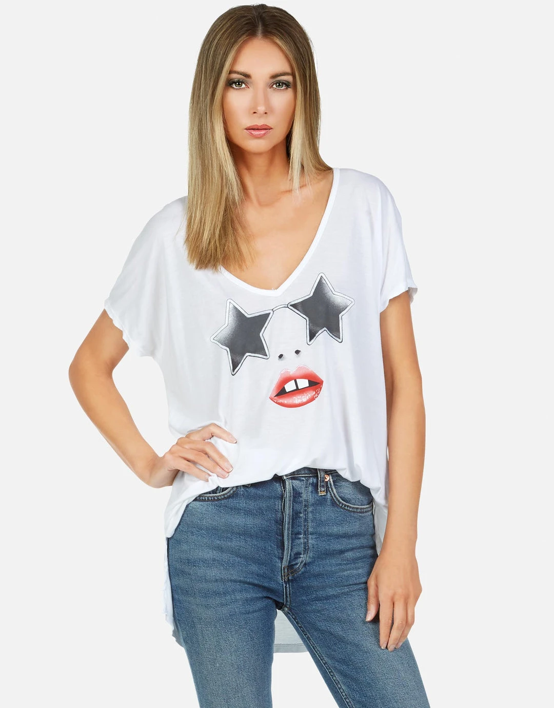 Star Glam Face Printed on Ultra Soft Lightweight Tee in White by Lauren Moshi.