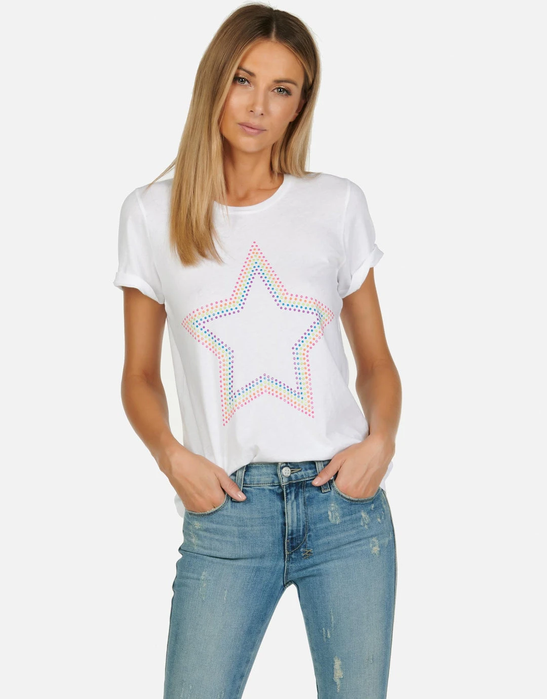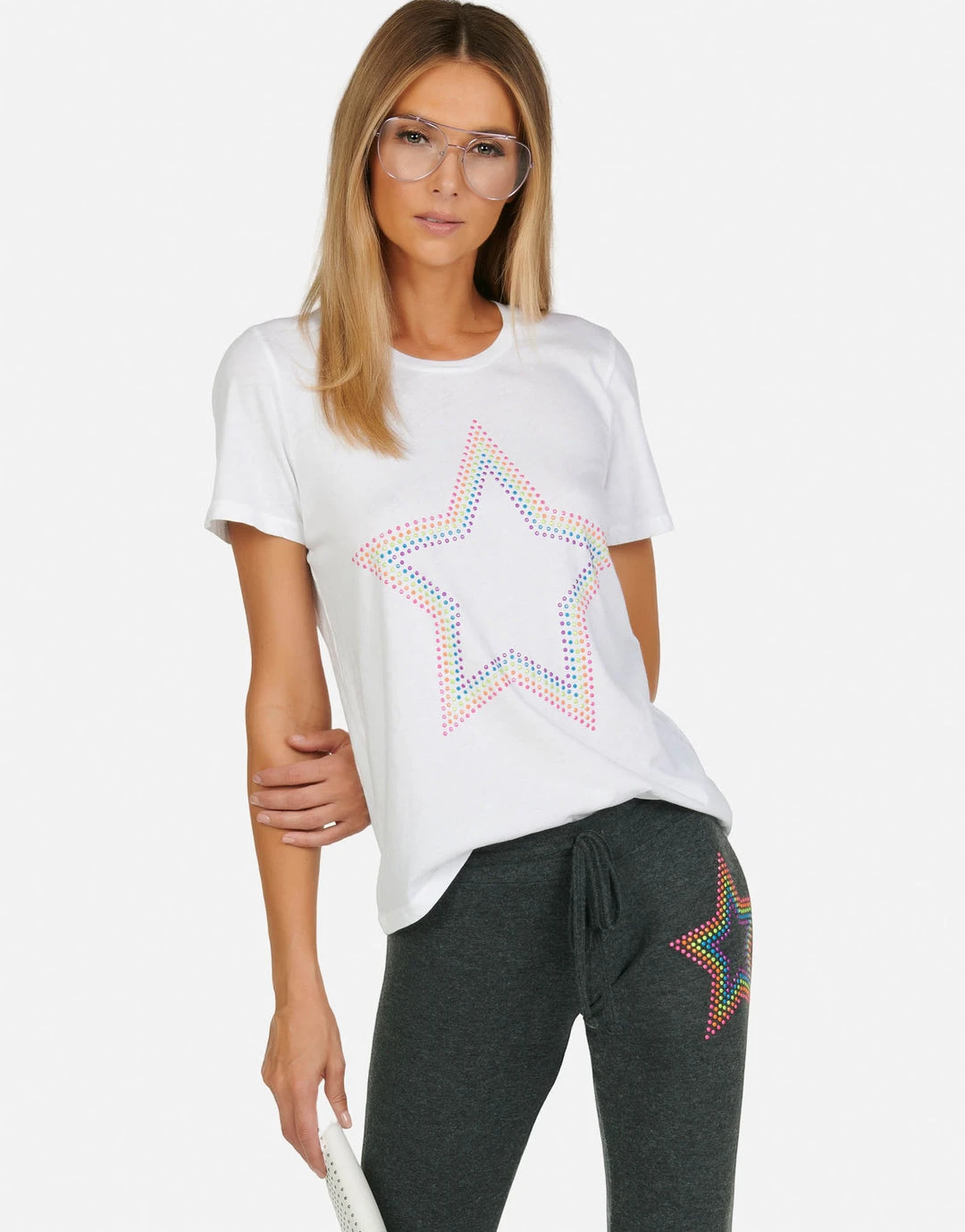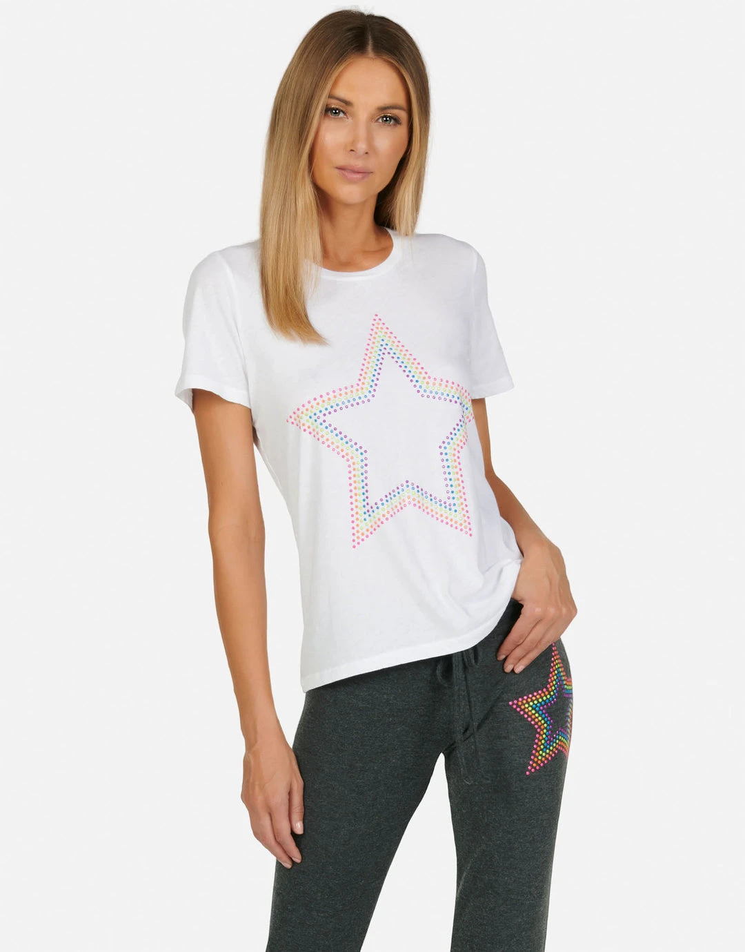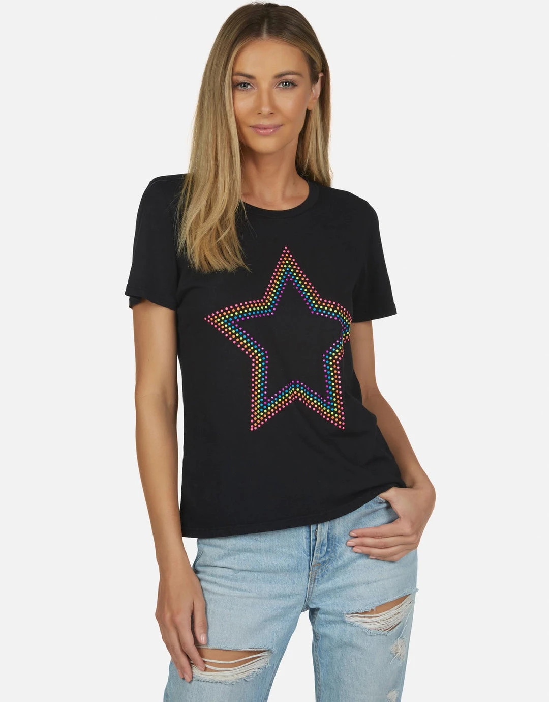 Neon Stud Star on Ultra Soft Lightweight Tee in White & Black by Lauren Moshi.