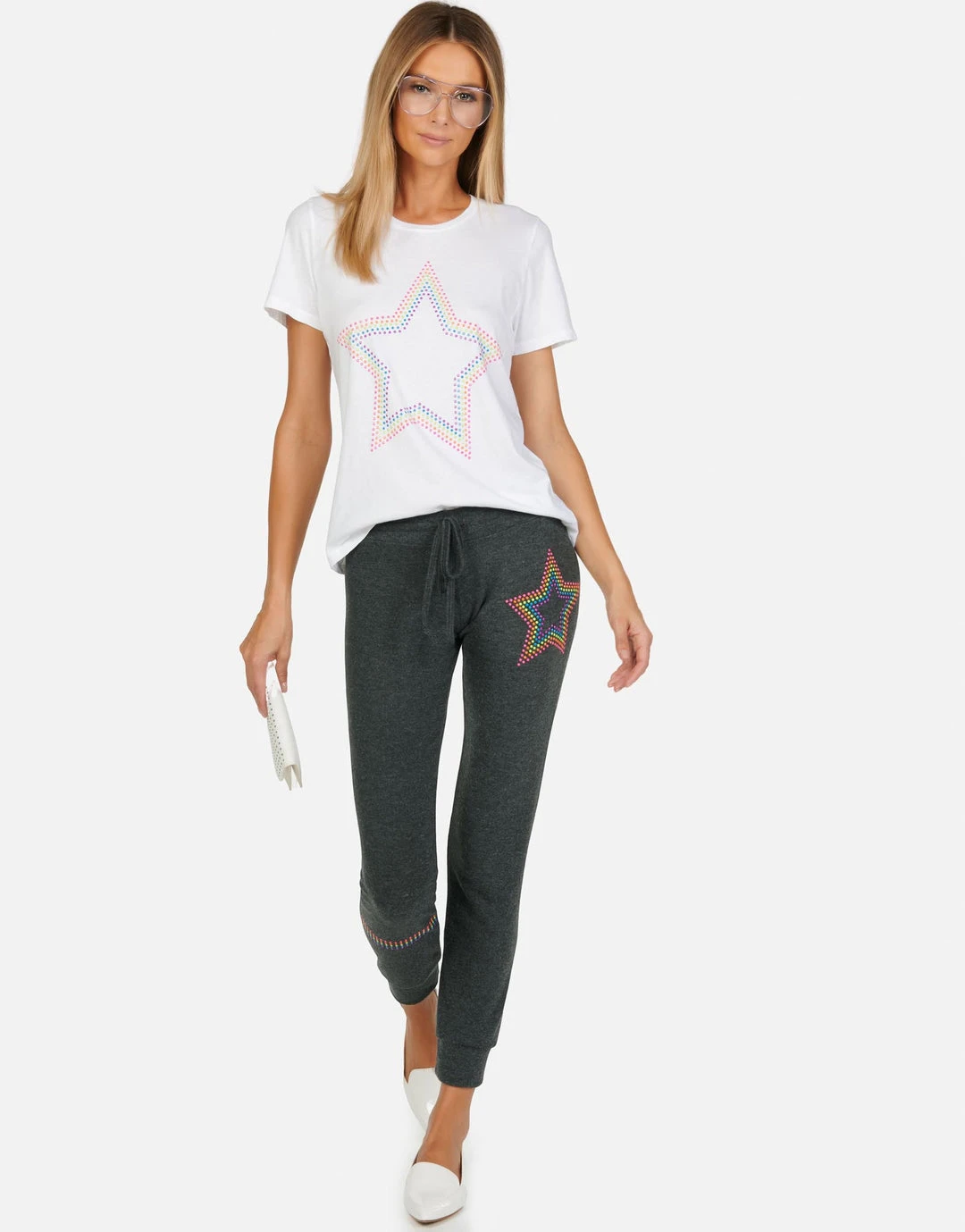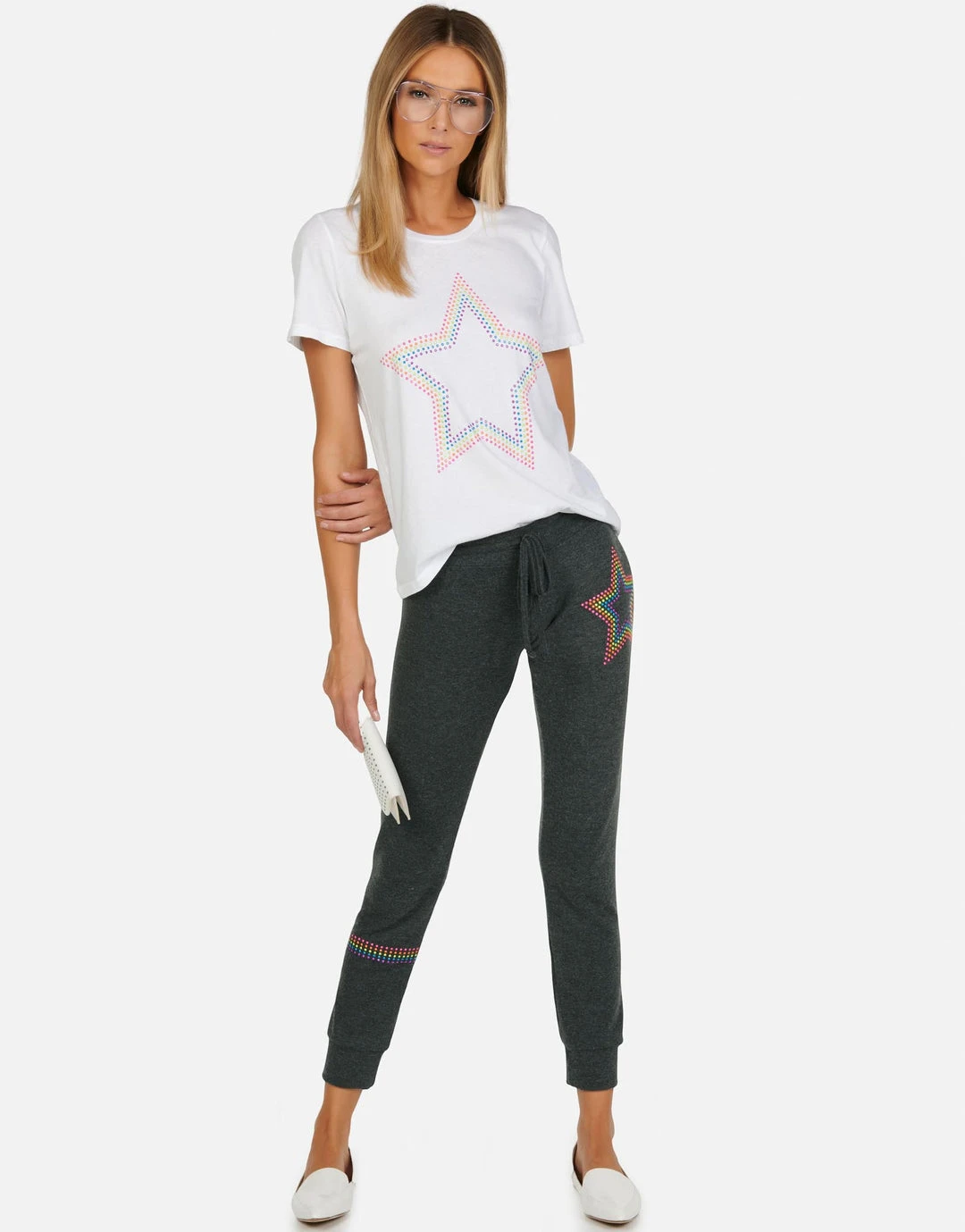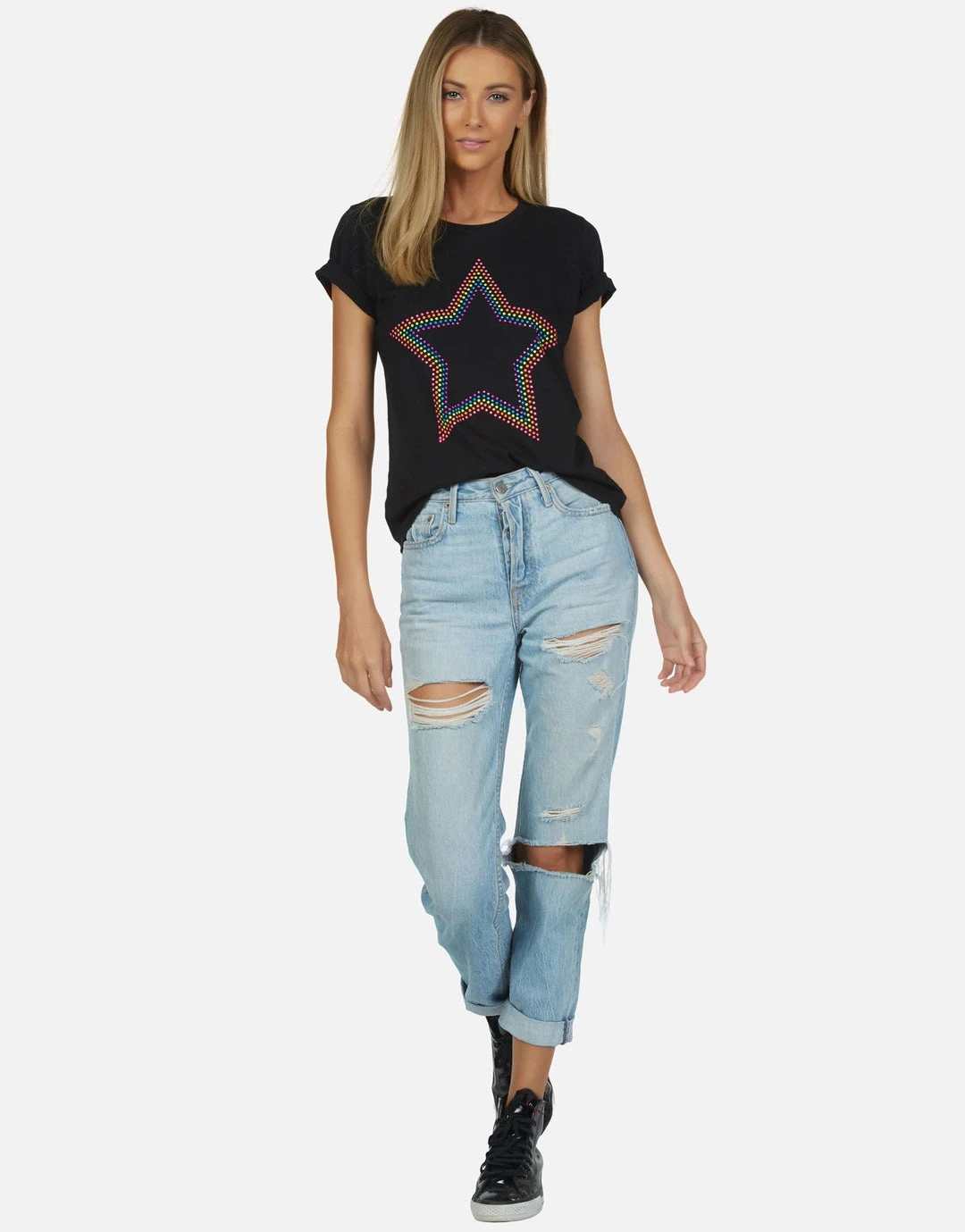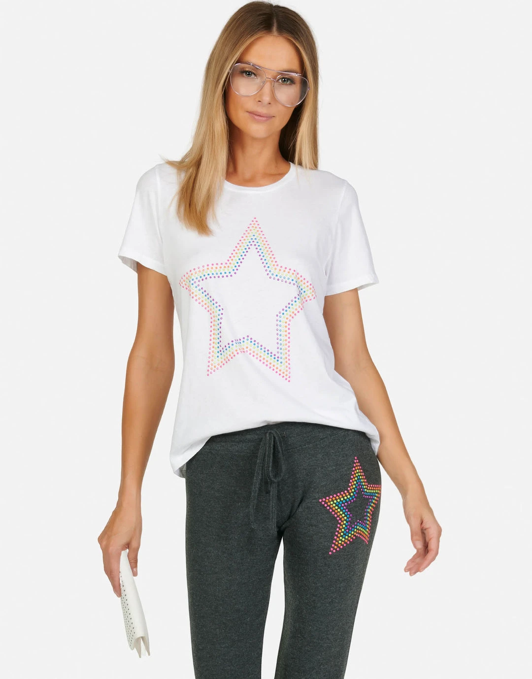 Neon Stud Star on Ultra Soft Lightweight Tee in White & Black by Lauren Moshi.