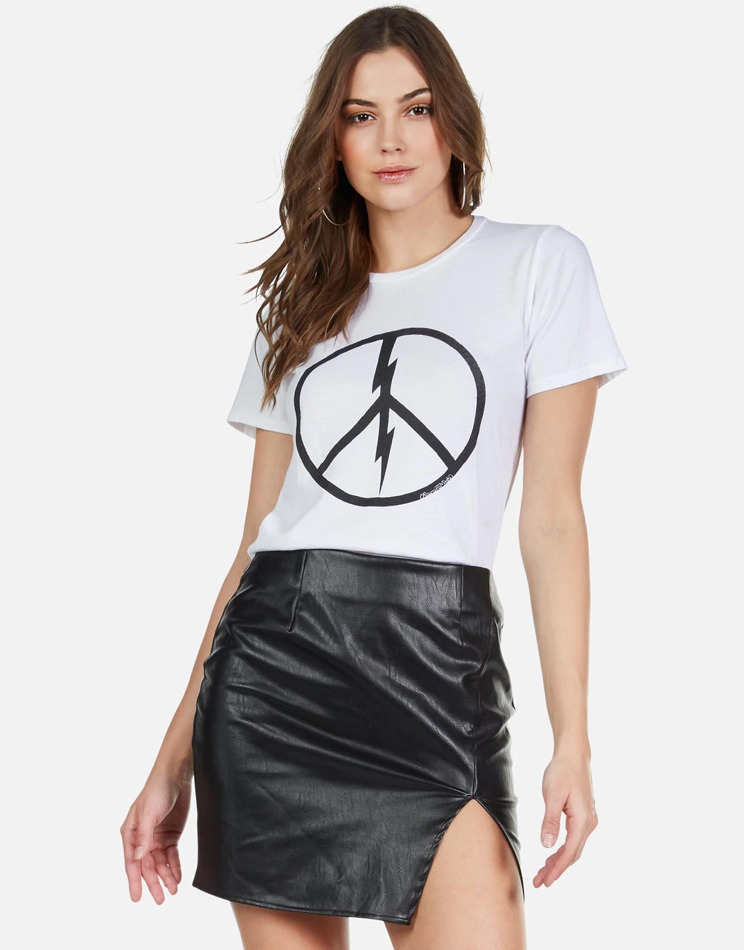 Peace Lightning Printed on Ultra Soft Lightweight Tee in White by Lauren Moshi.