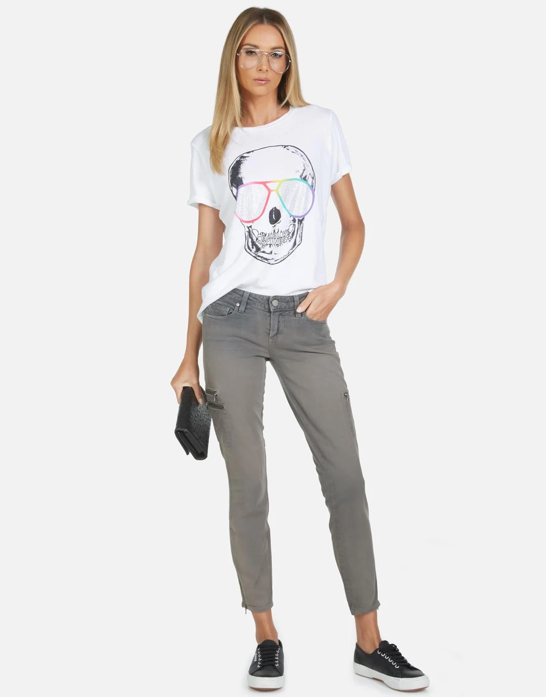 Cool Skull Printed on Ultra Soft Lightweight Tee in White by Lauren Moshi.