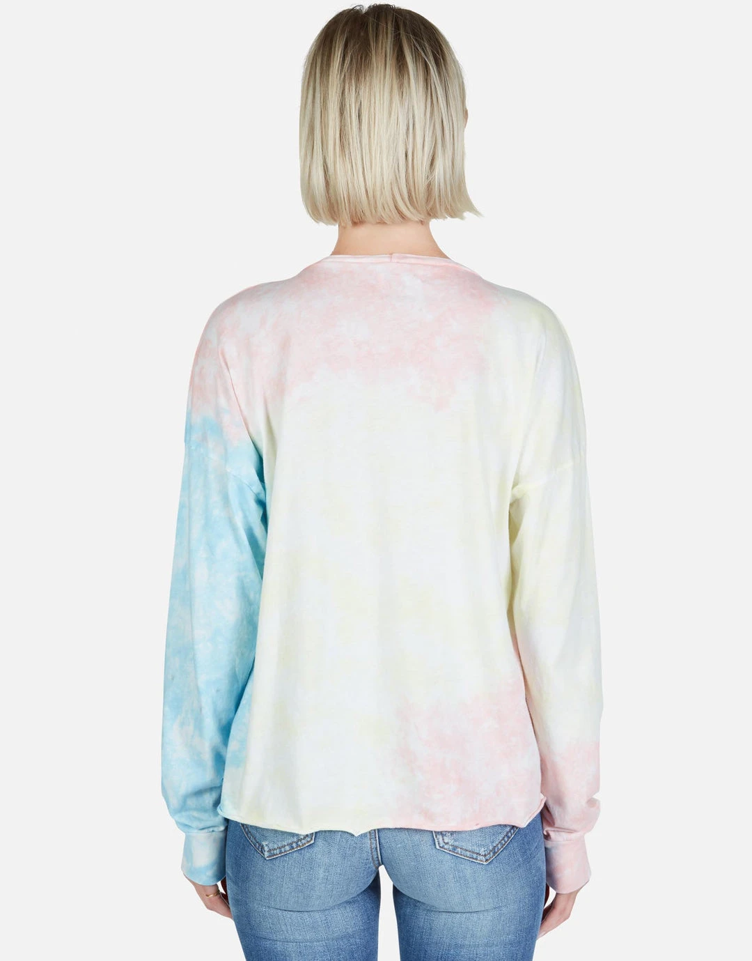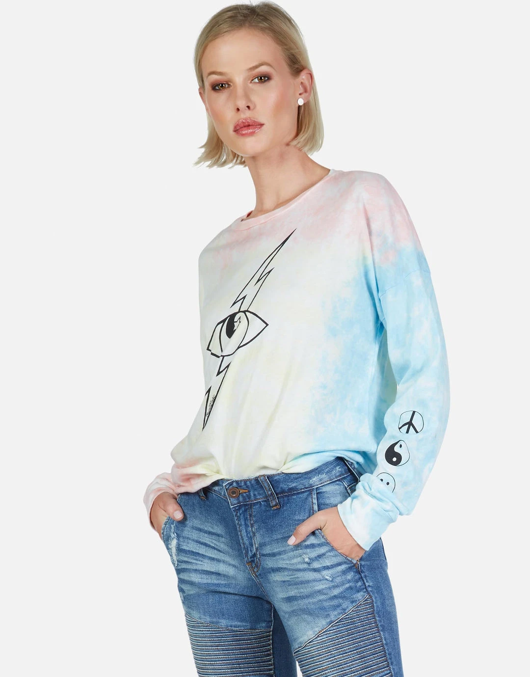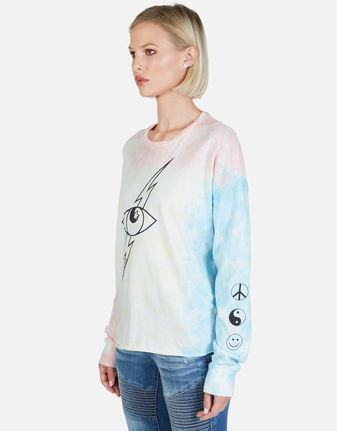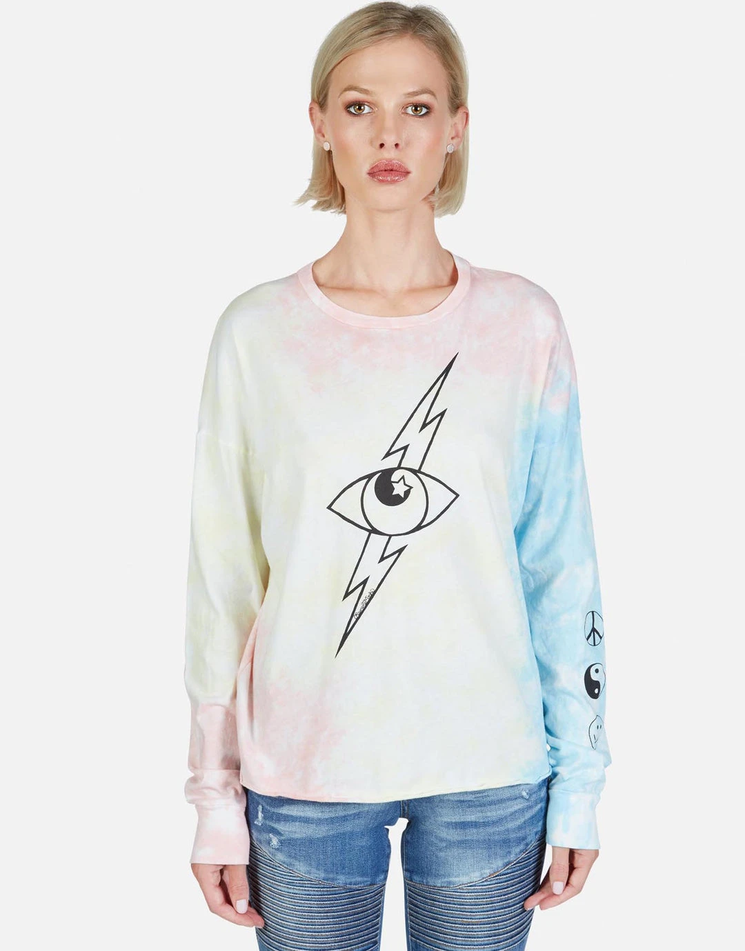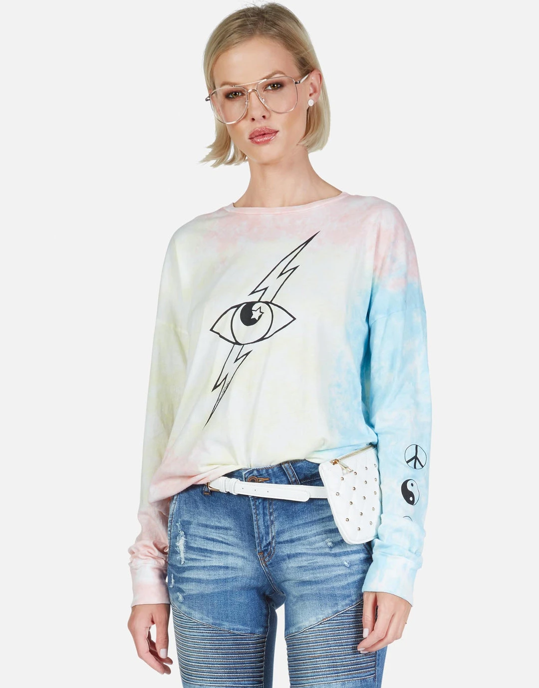Lightning Star Eye Printed on Ultra Soft Lightweight Tee in Pastel Tie Dye by Lauren Moshi.