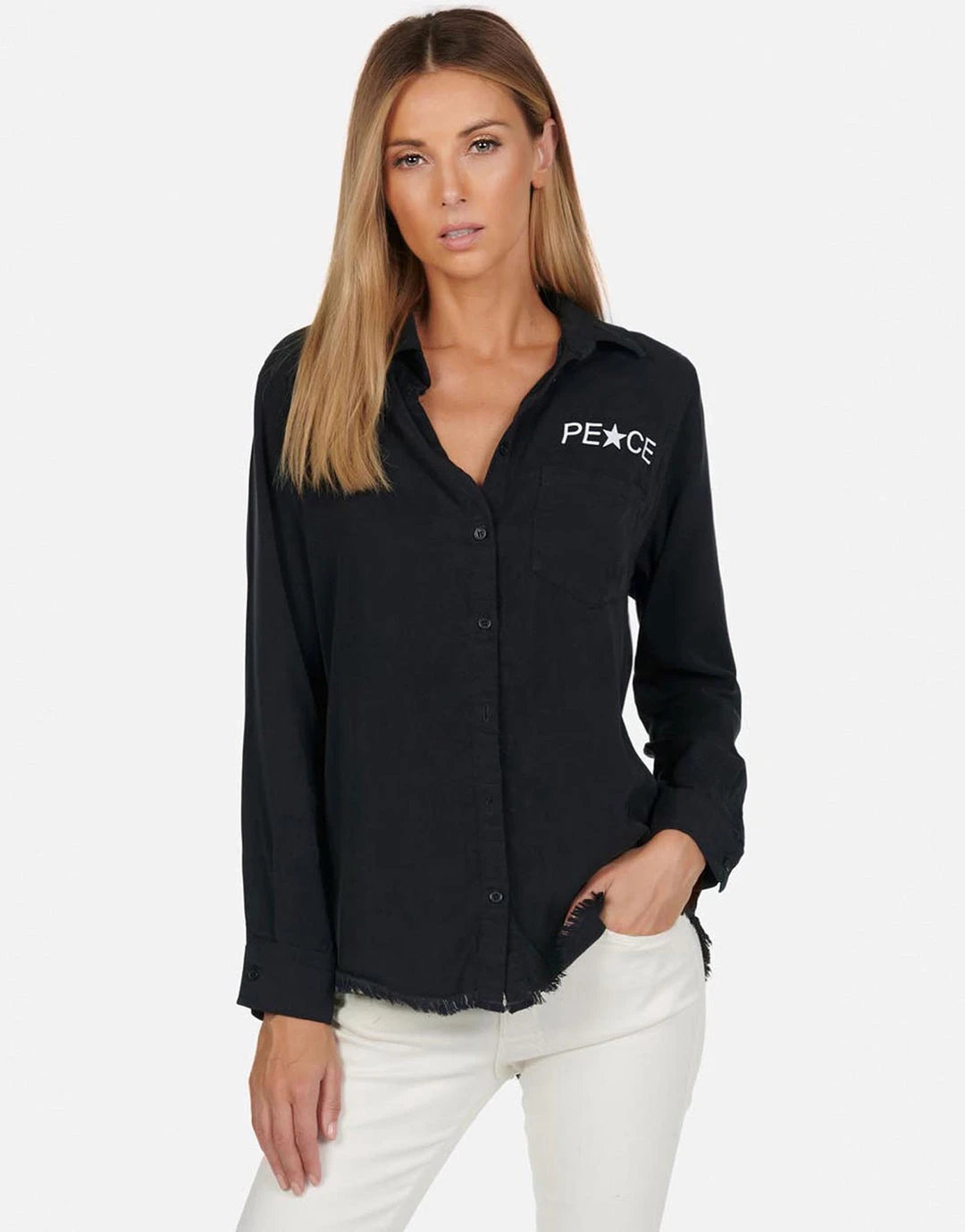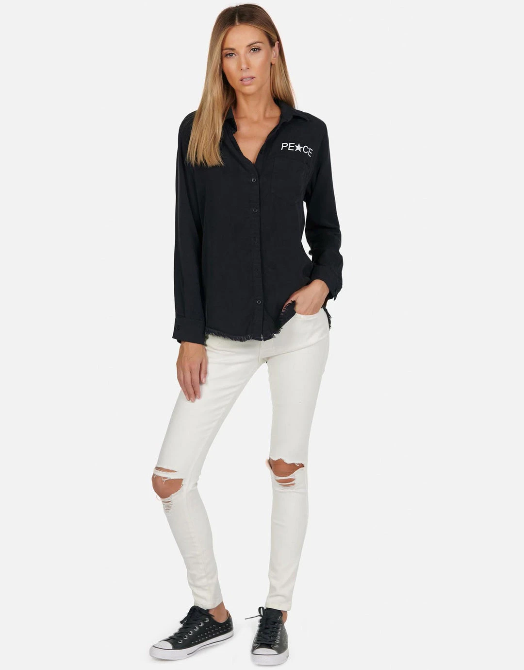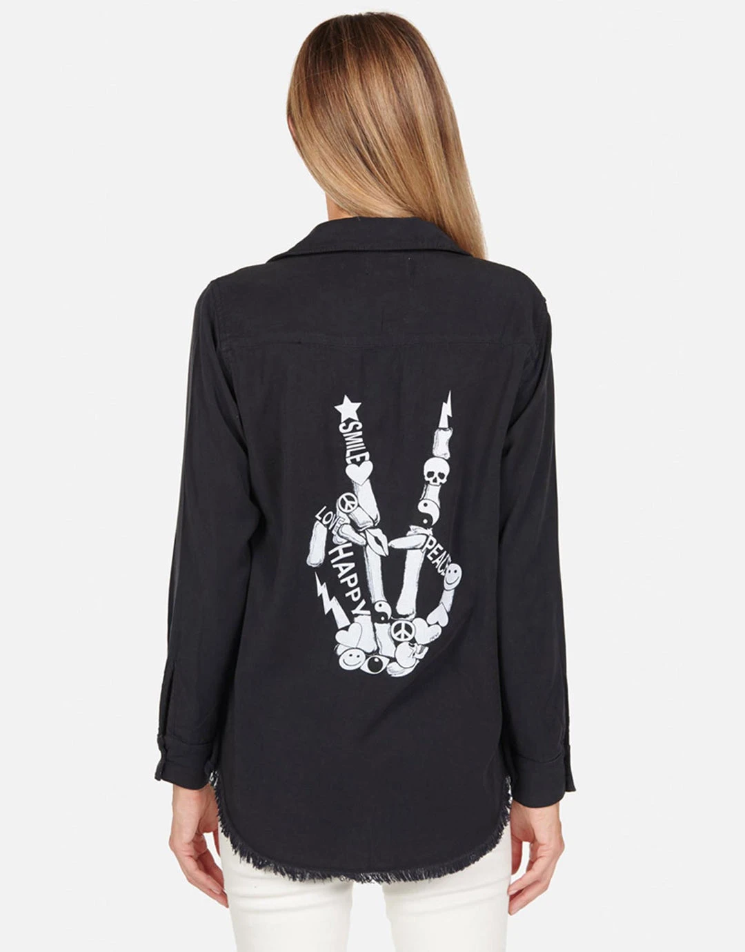Skeleton Peace Elements Printed on Ultra Soft Lightweight Shirt in Onyx by Lauren Moshi.