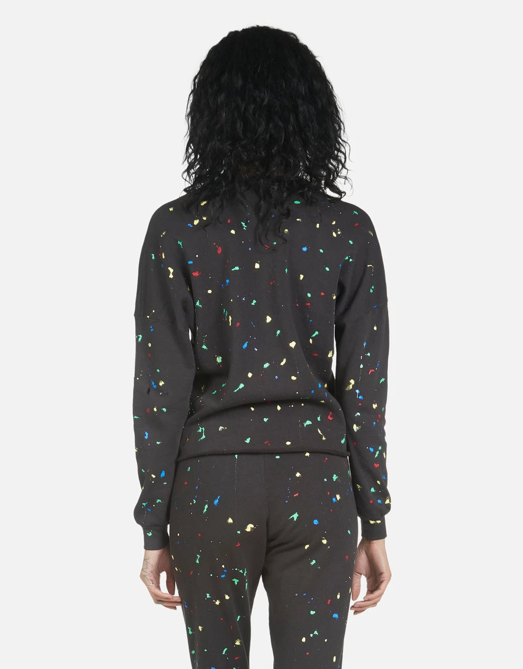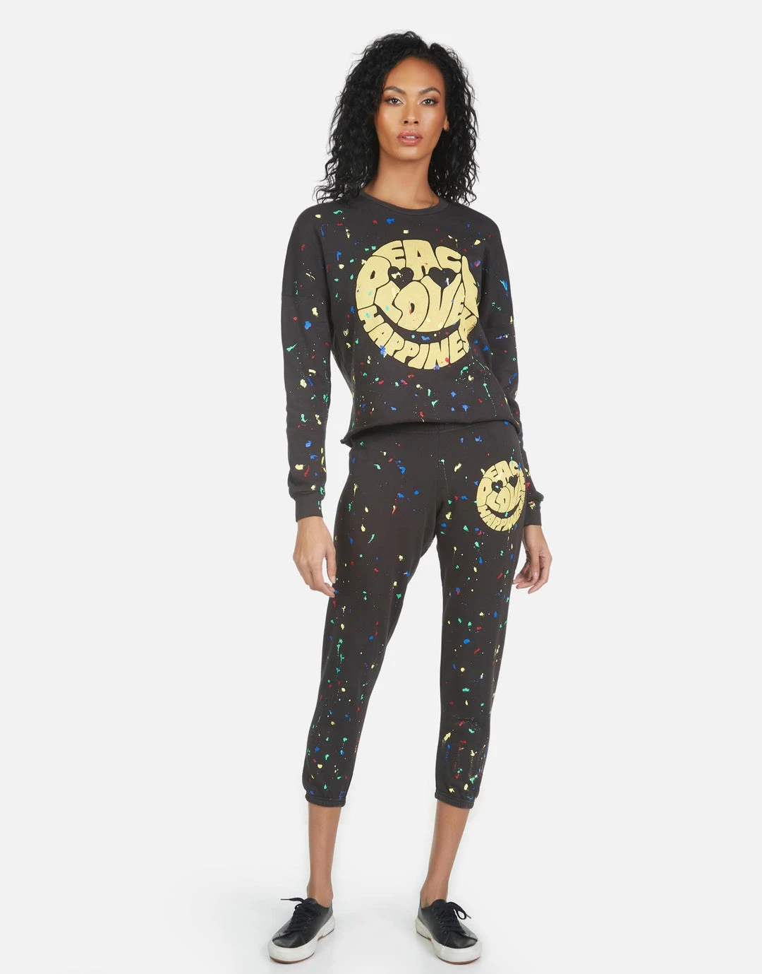 Text Happy Face Printed on Ultra Soft Lightweight Pullover in Onyx/Primary Splatter by Lauren Moshi.