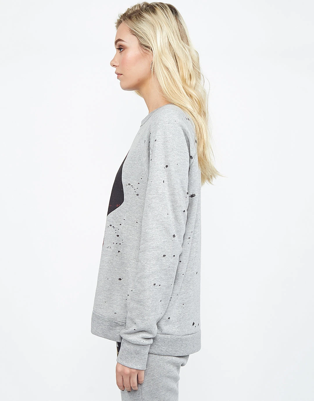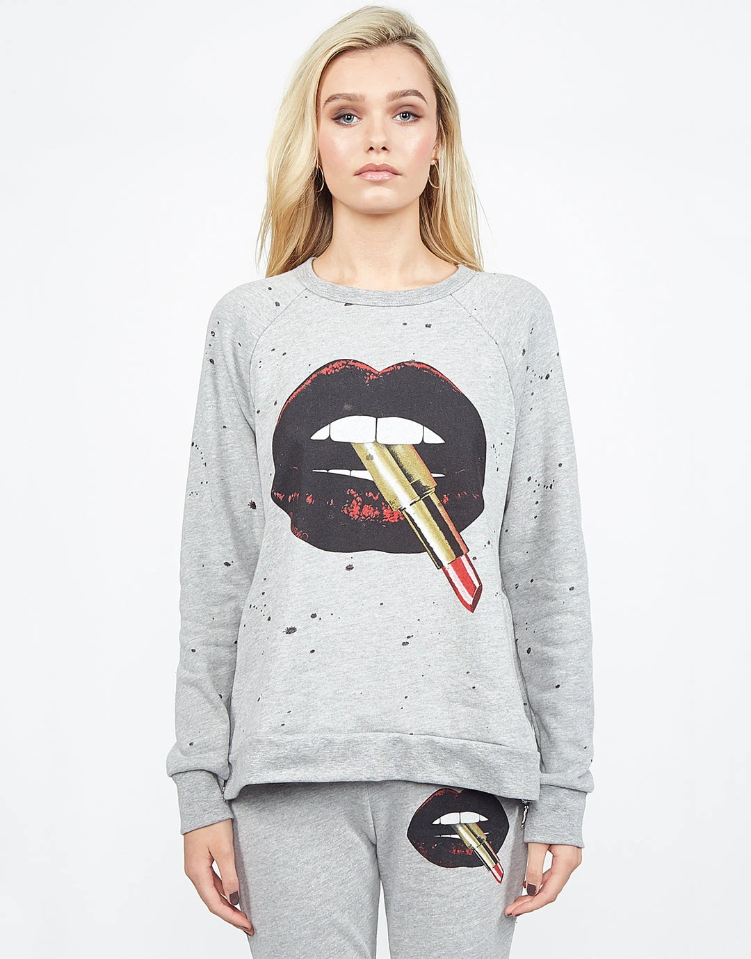 Lipstick Mouth Printed on Ultra Soft Lightweight Pullover in Heather Grey by Lauren Moshi.