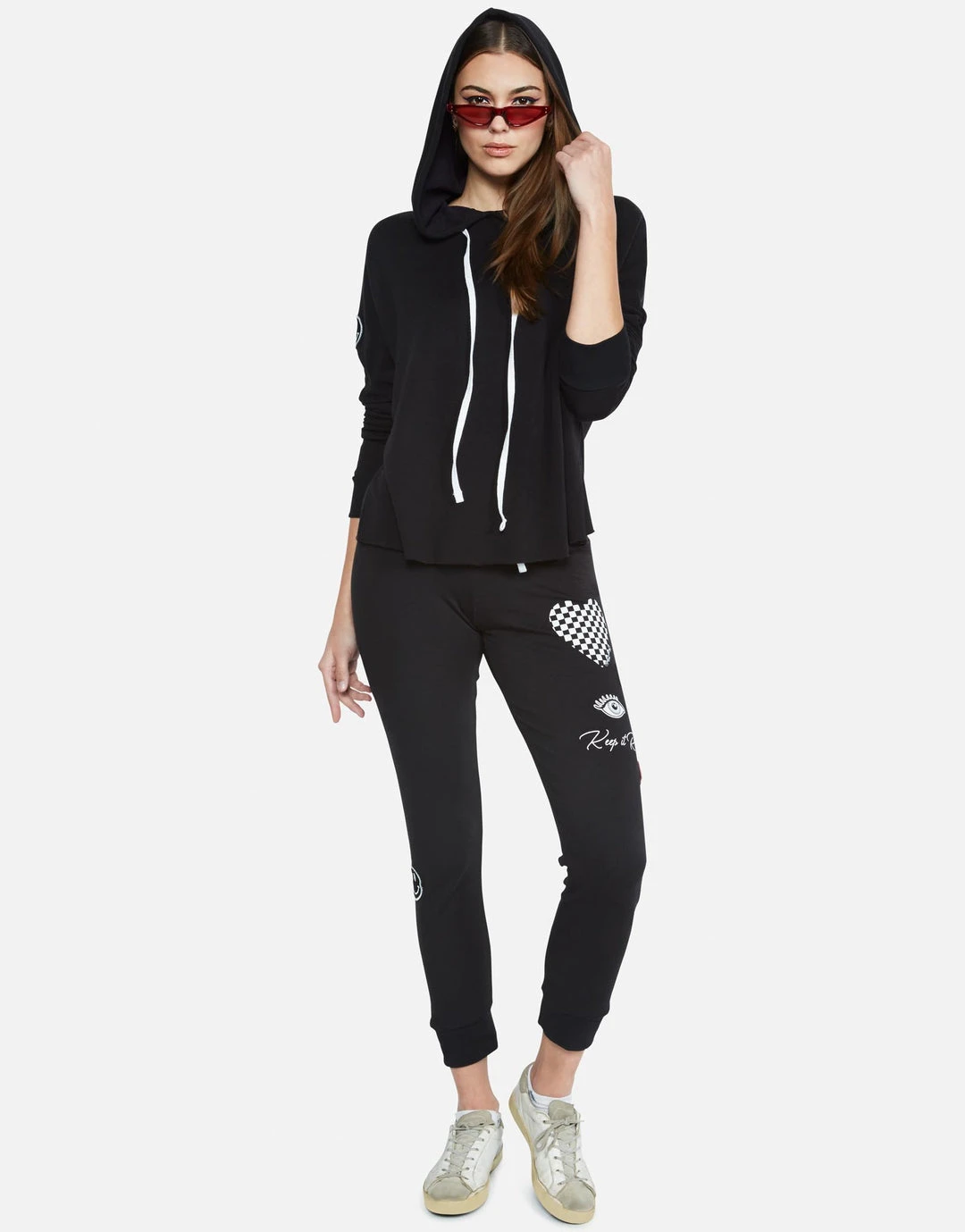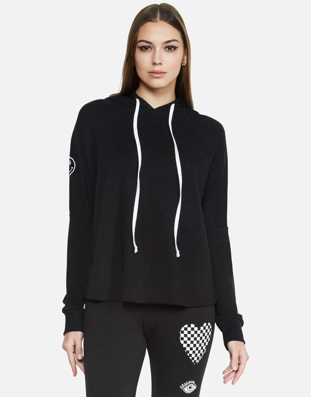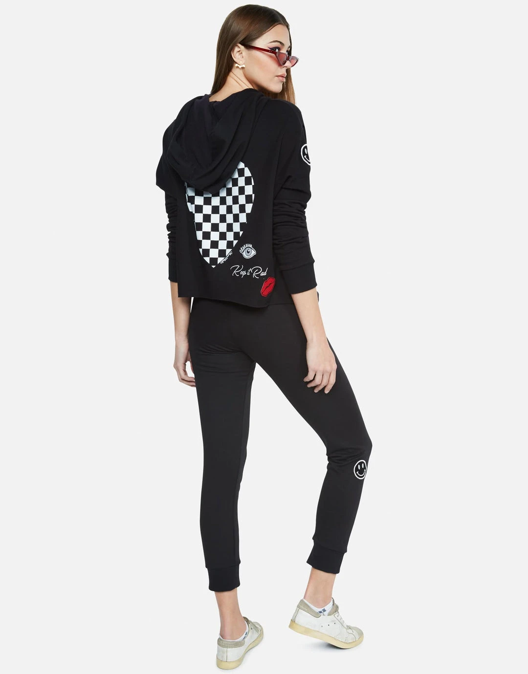 Rad Checkered Heart Printed on Ultra Soft Lightweight Pullover Hoodie in Black by Lauren Moshi.