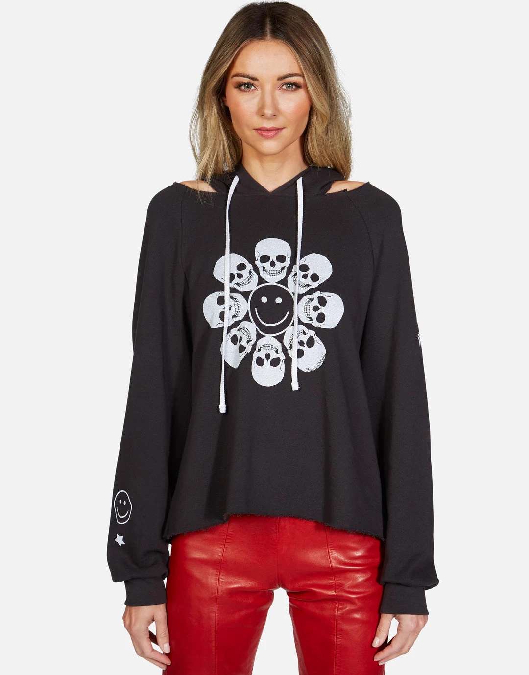 Happy Skull Flower Printed on Ultra Soft Lightweight Hoodie in Onyx by Lauren Moshi.