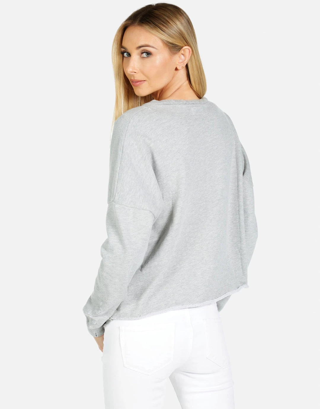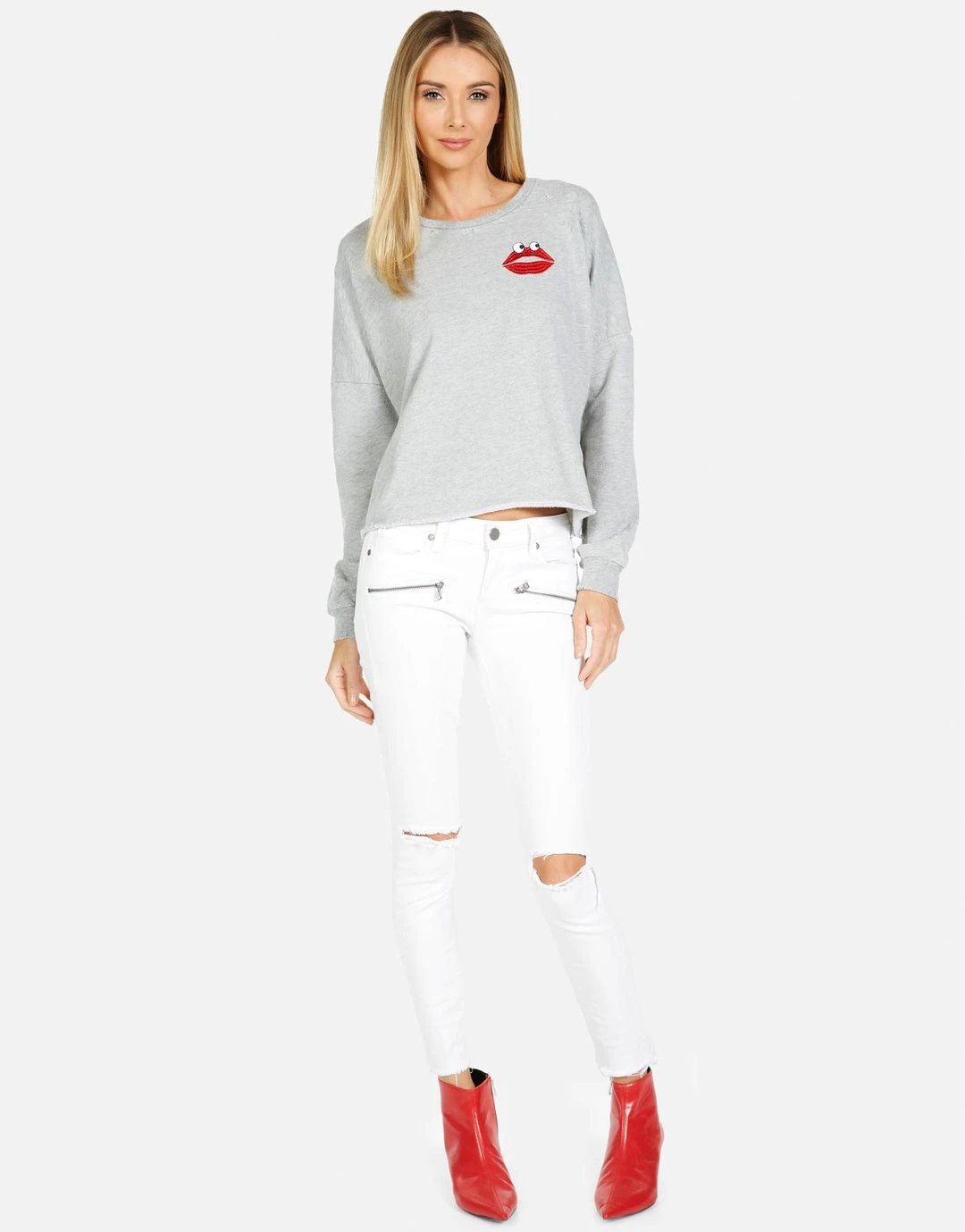 Kiss Face Printed on Ultra Soft Lightweight Pullover in Heather Grey by Lauren Moshi.