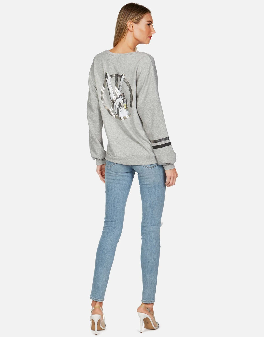 Peace Sign Hand Printed on Ultra Soft Lightweight Pullover in Heather Grey by Lauren Moshi.