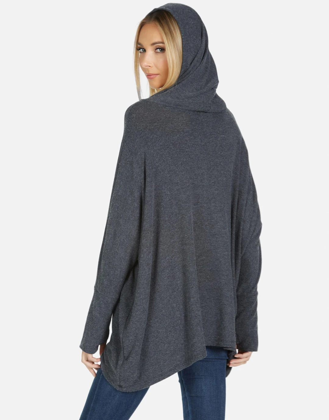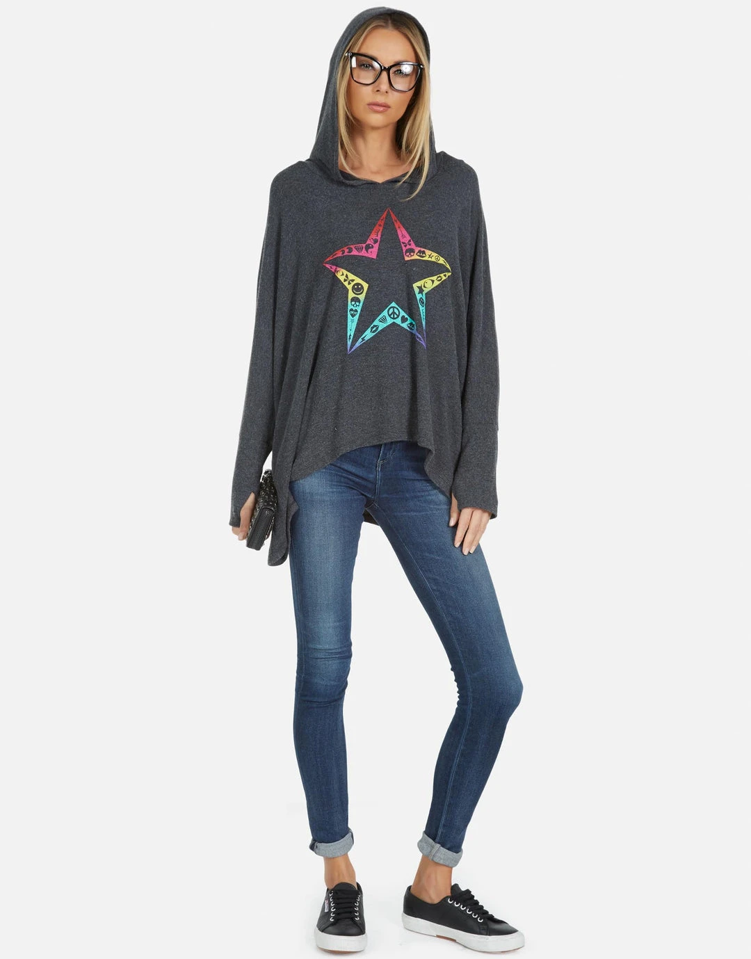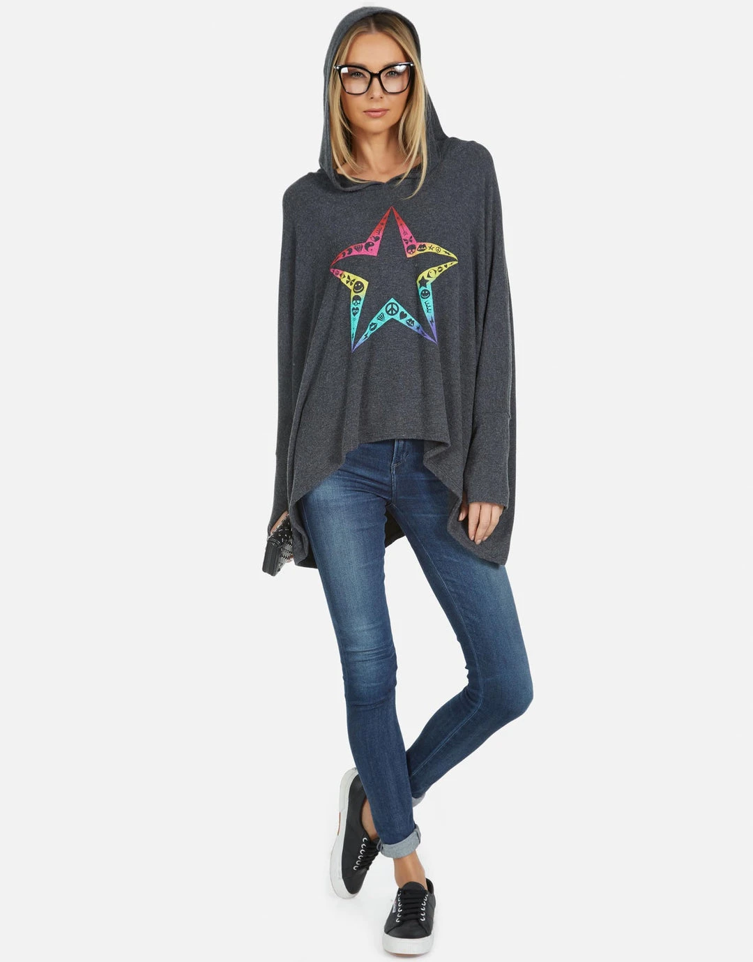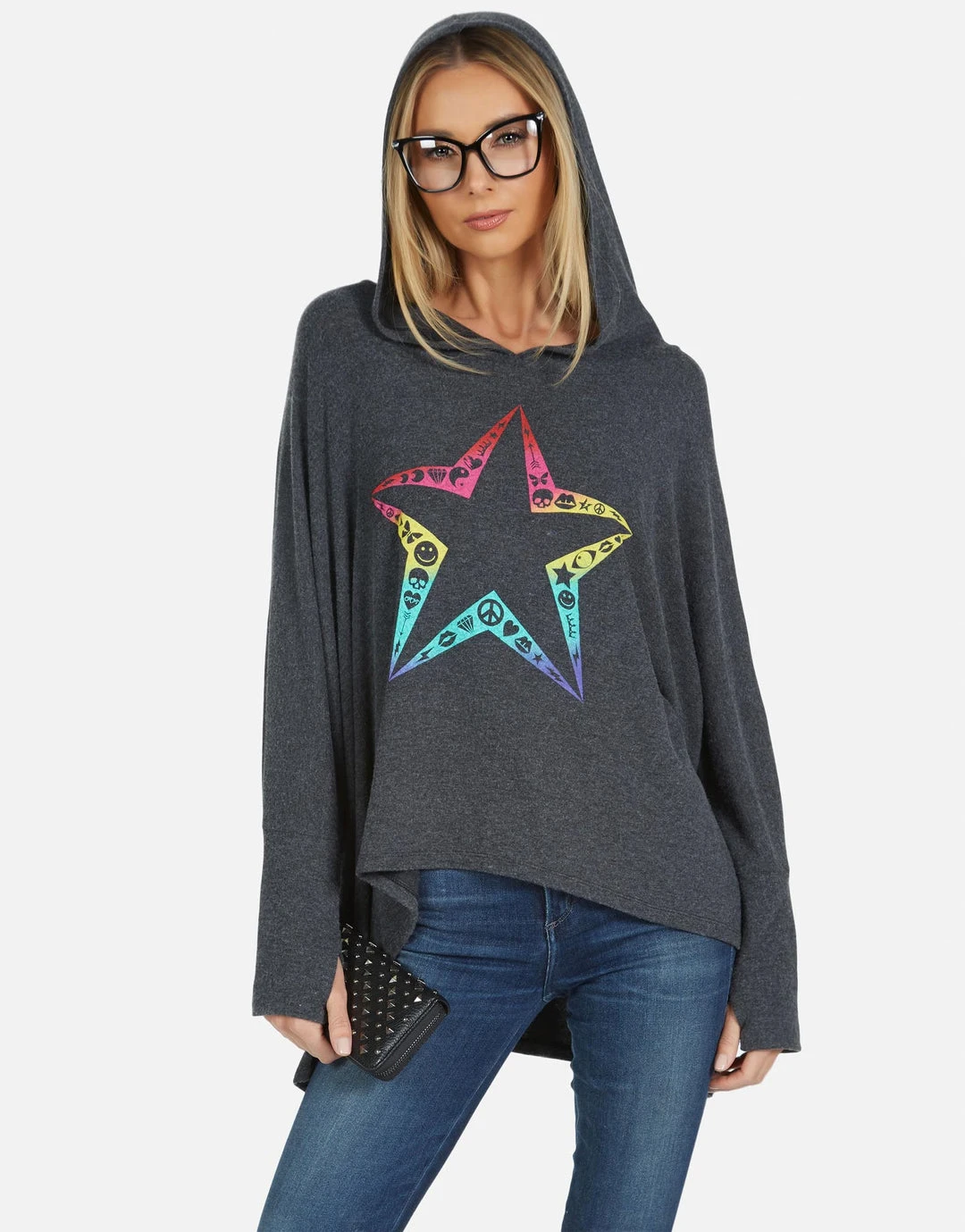 Color Elements Star on Ultra Soft Lightweight Pullover w/Hood in Heather Black by Lauren Moshi.