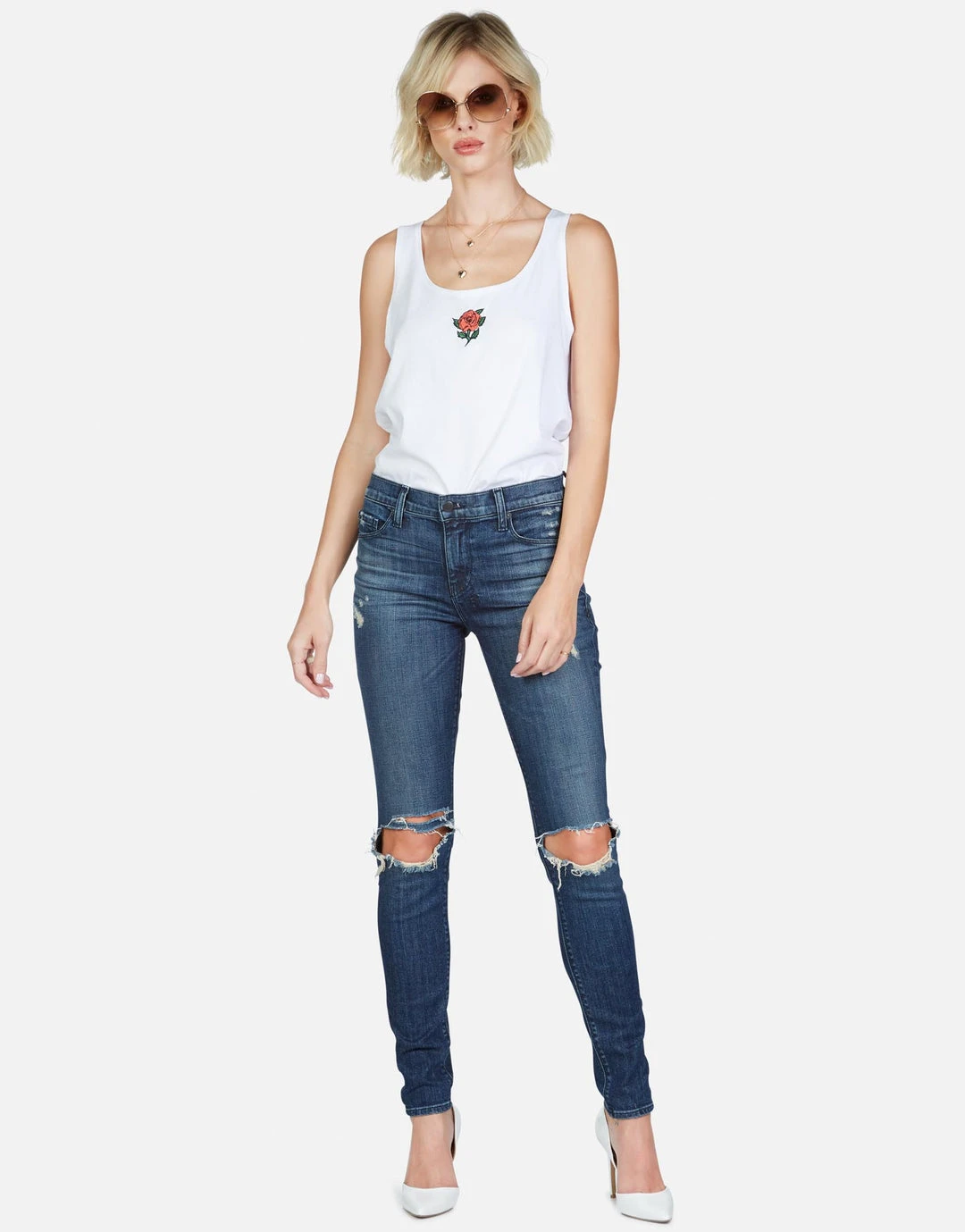 Lightning Stem Rose Printed on Ultra Soft Lightweight Tank in White by Lauren Moshi.