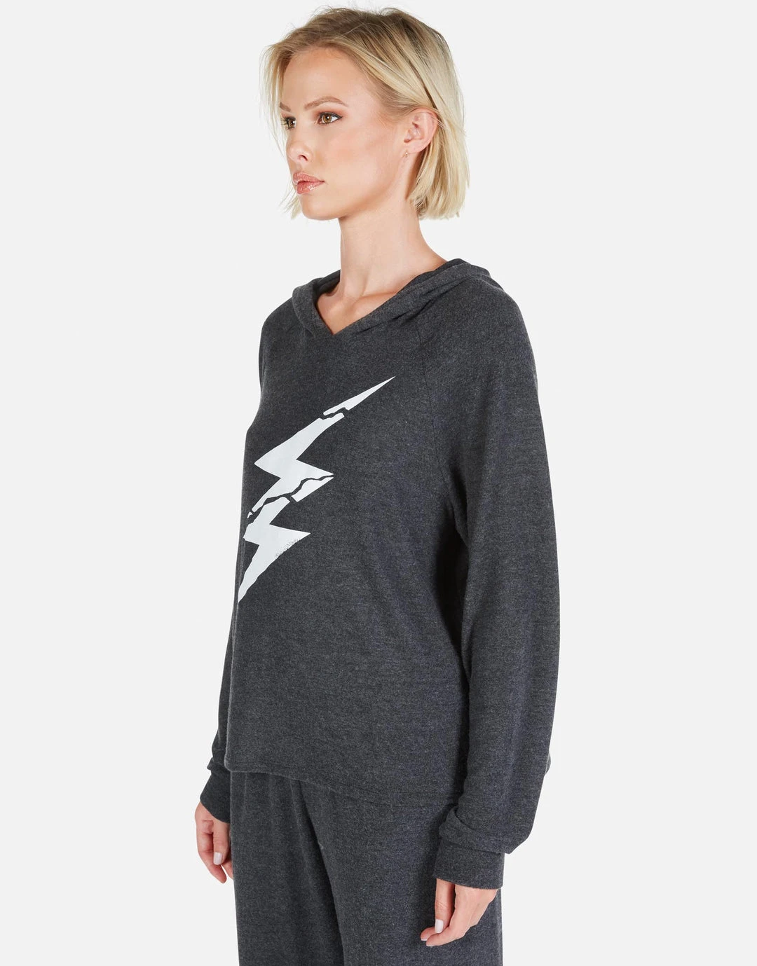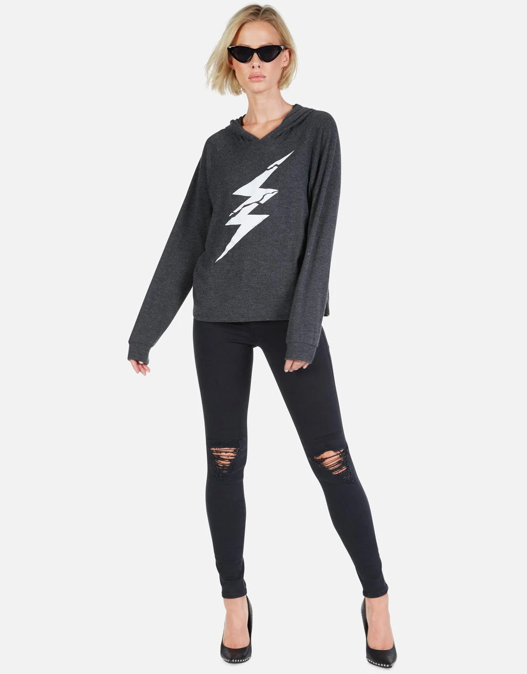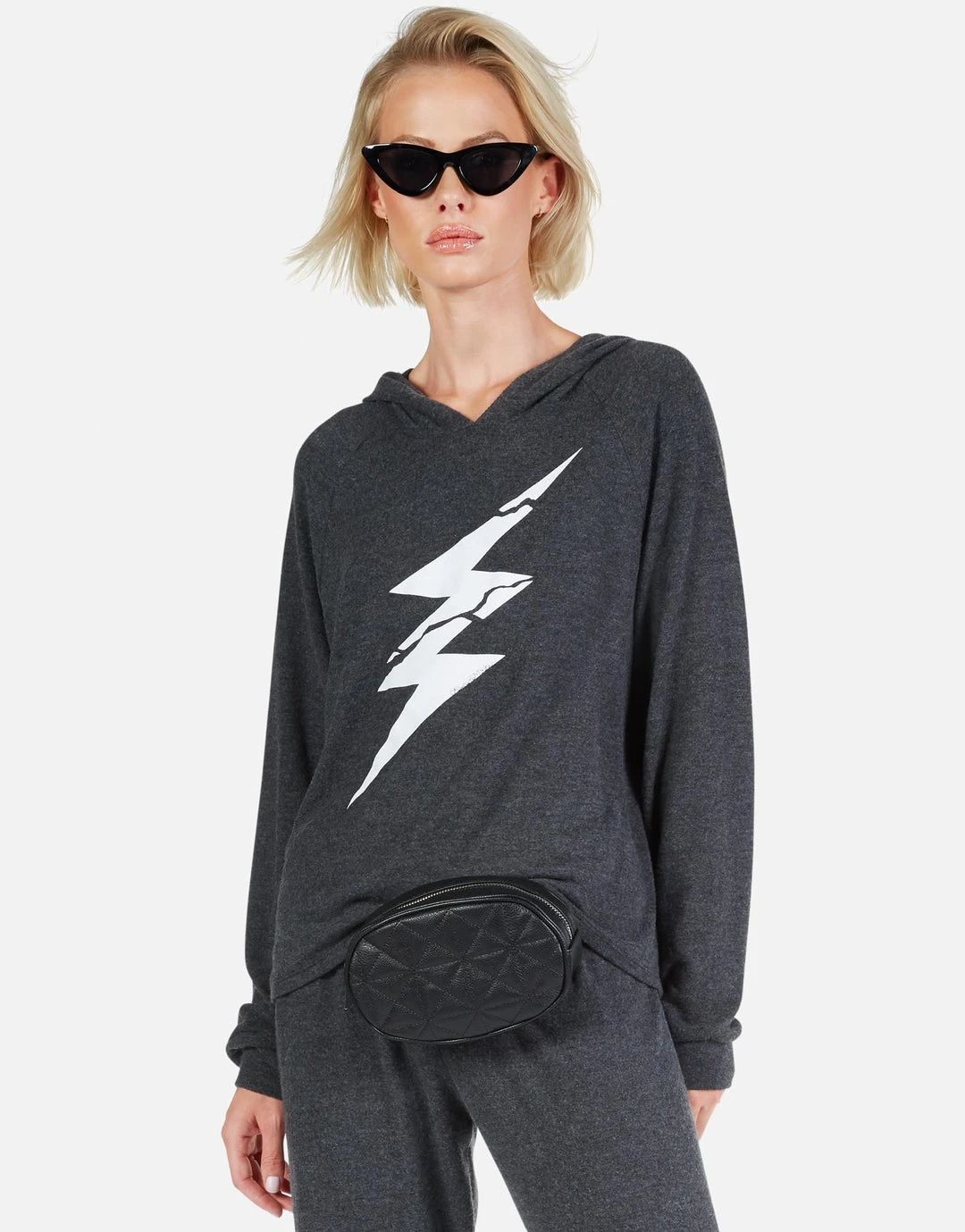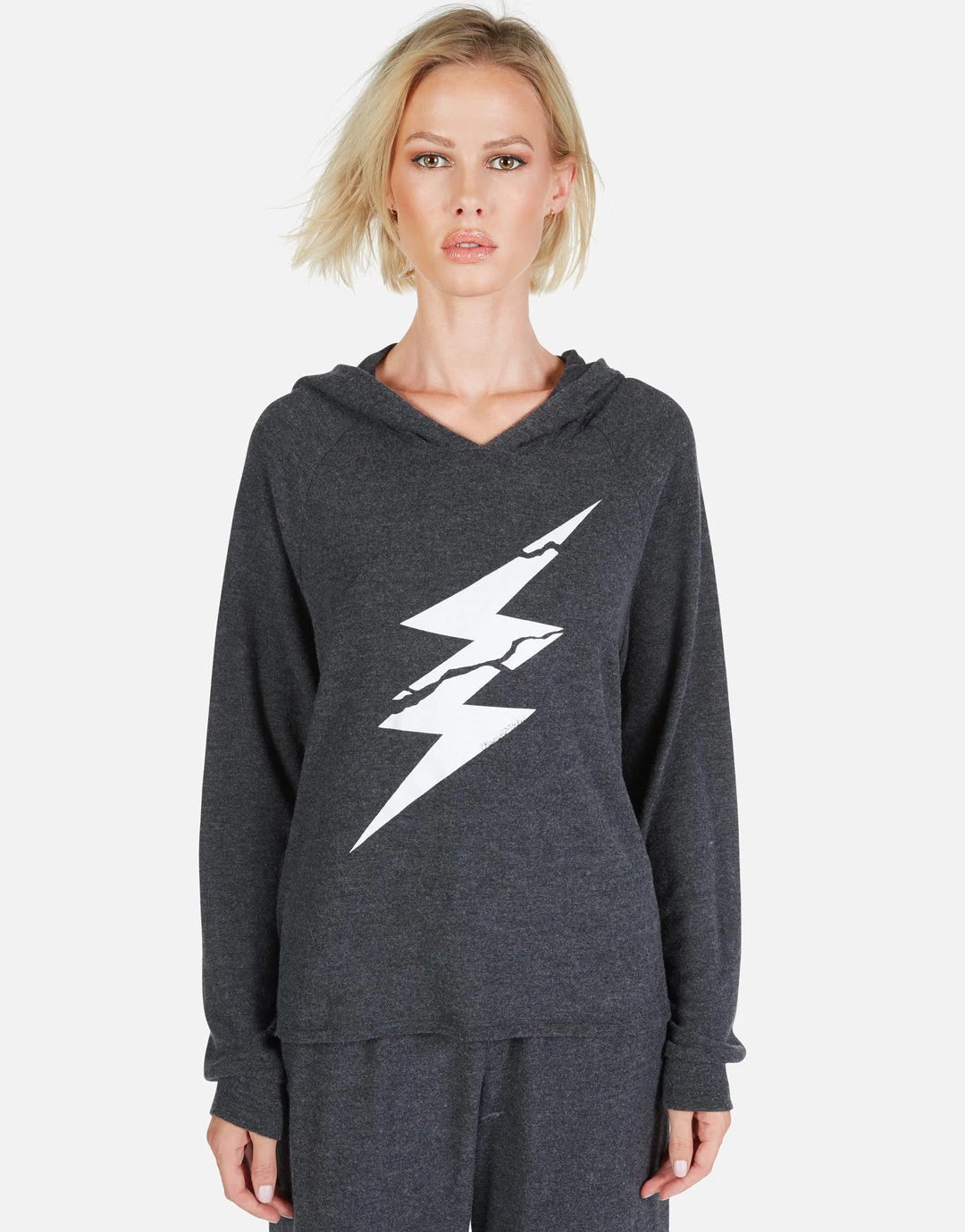 Cracked Lightning Printed on Ultra Soft Lightweight Hoodie in Heather Black by Lauren Moshi.