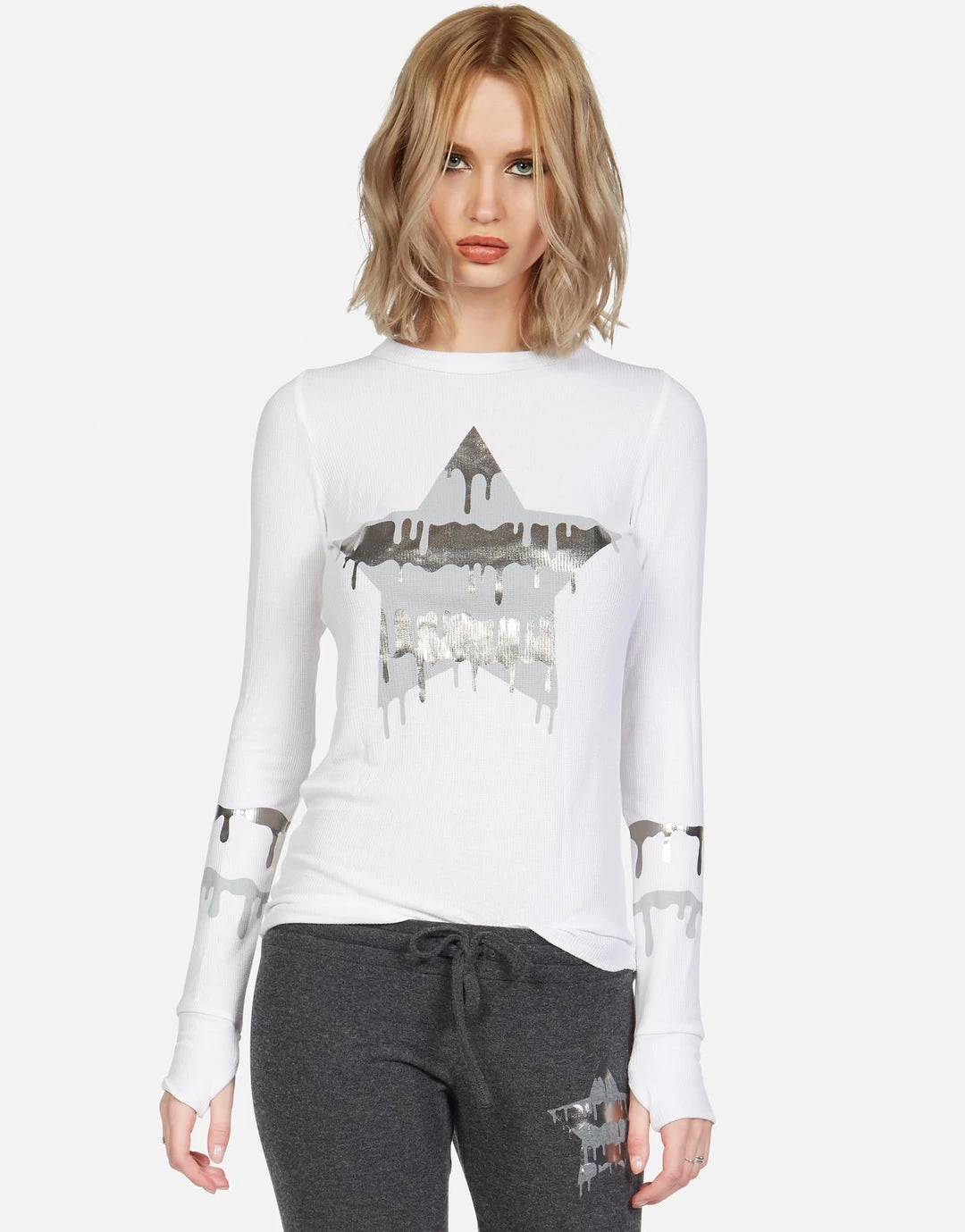 Dripping Star Printed on Ultra Soft Lightweight Thermal in White by Lauren Moshi.