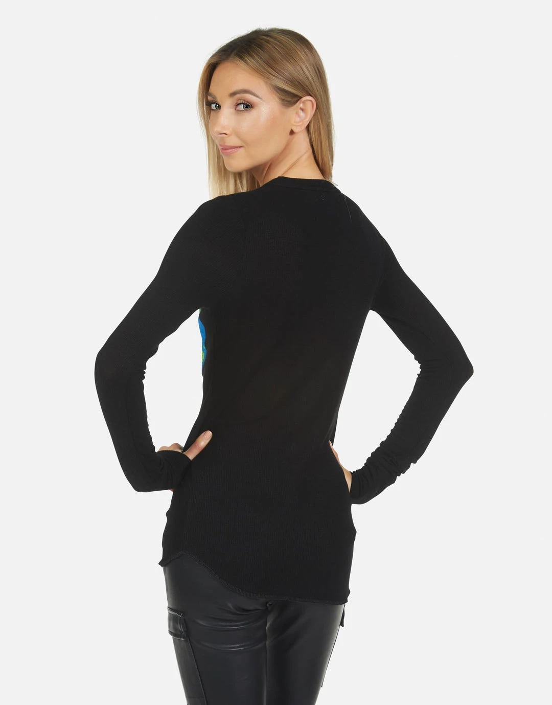 World Peace Lips Printed on Ultra Soft Lightweight Thermal in Black by Lauren Moshi.