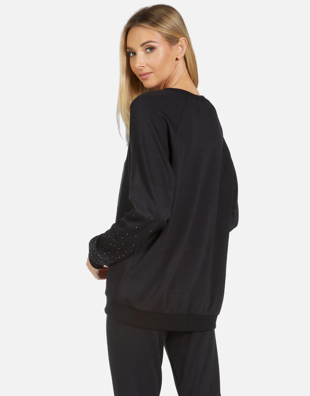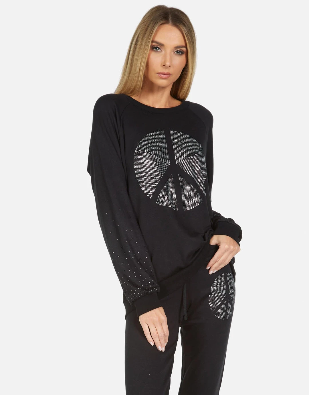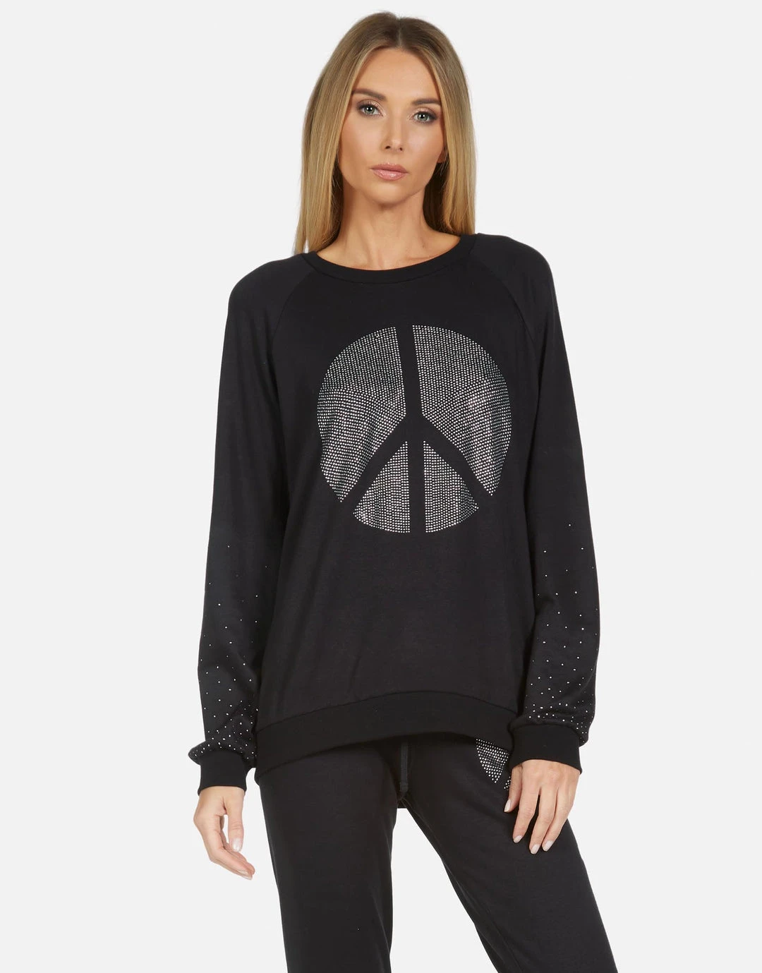 Crystal Peace on Ultra Soft Lightweight Pullover in Black by Lauren Moshi.