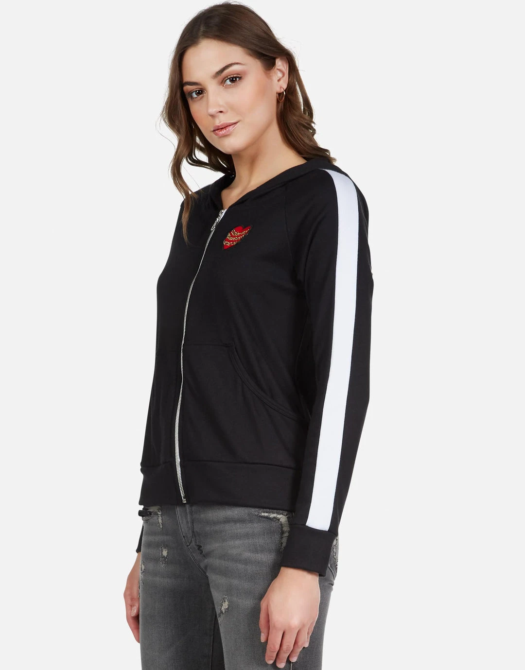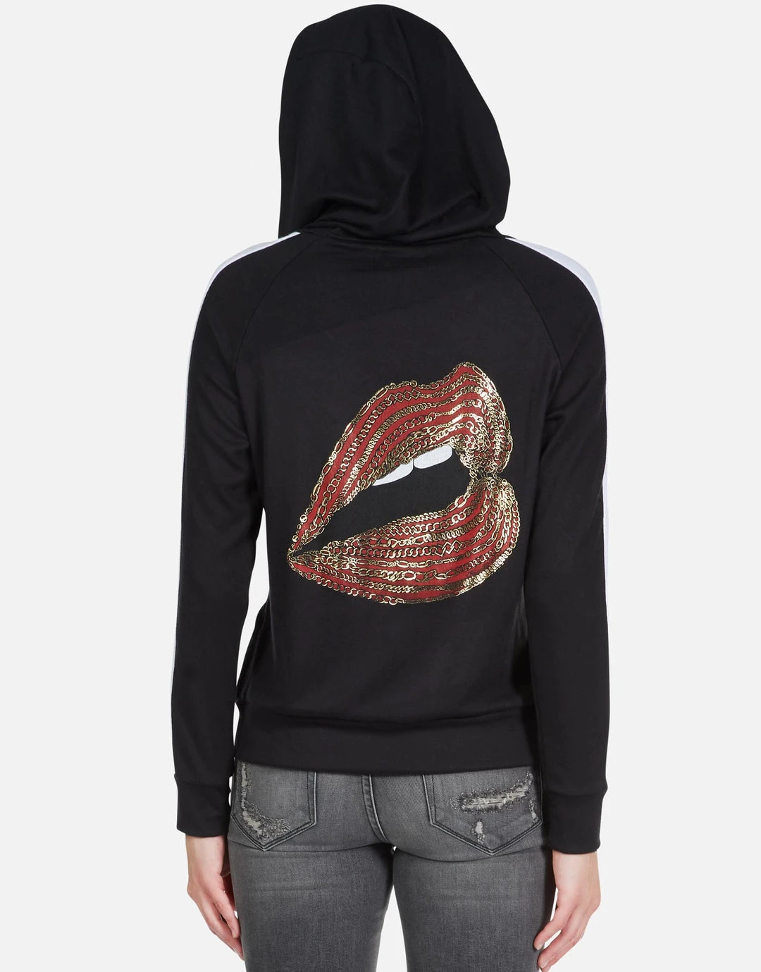 Red Gap Mouth Printed on Super Soft Lightweight Raglan Hoodie in Black by Lauren Moshi.