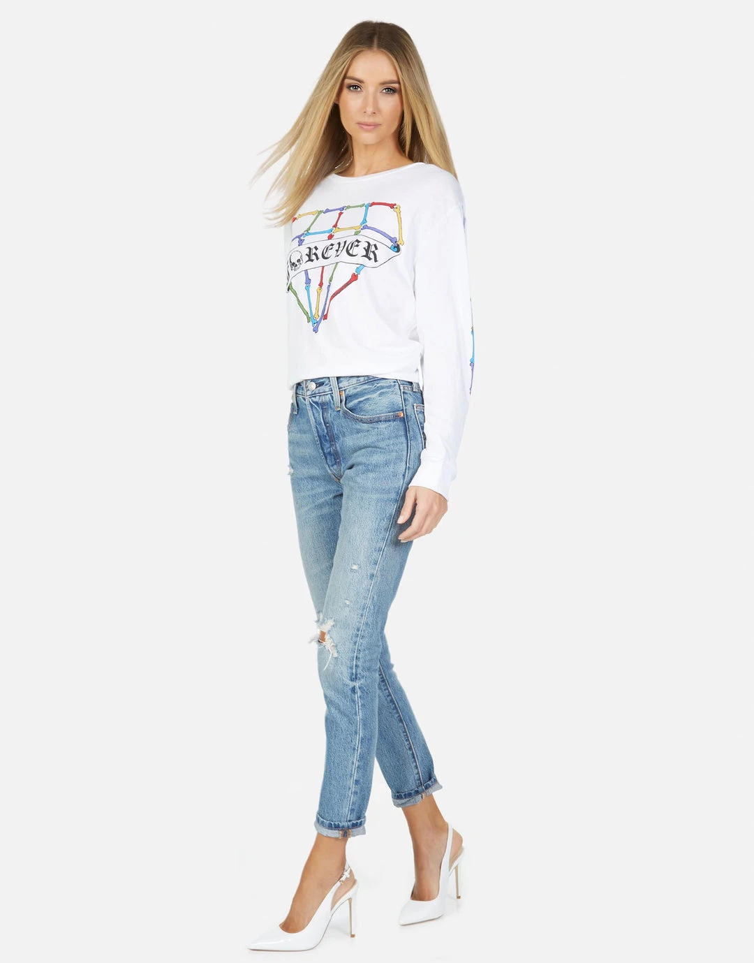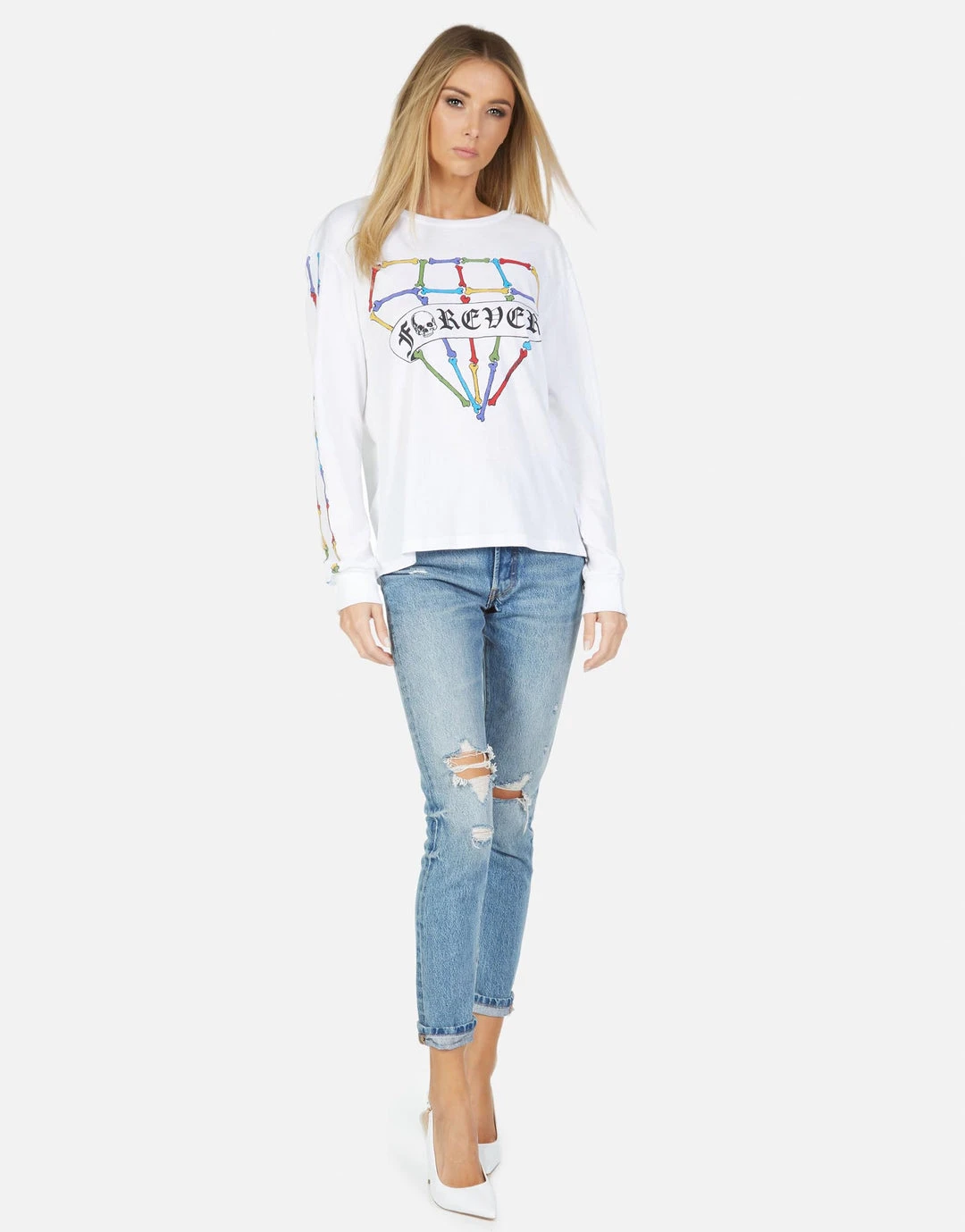 Bone Diamond Printed on Ultra Soft Lightweight Pullover in White by Lauren Moshi.
