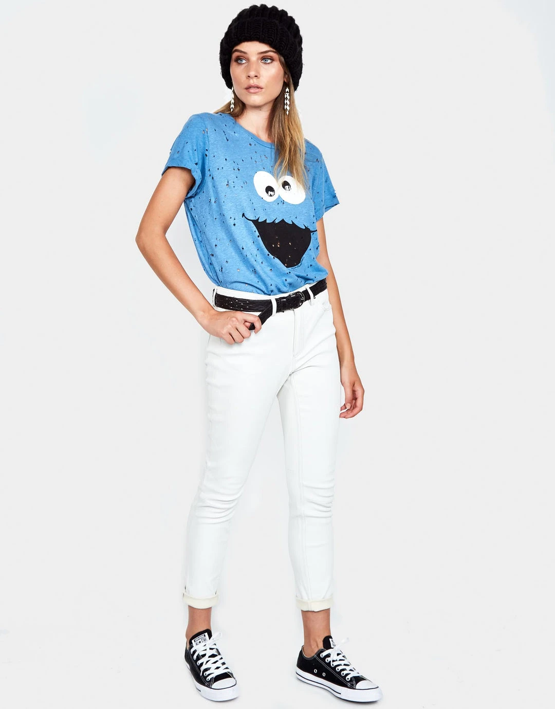 Cookie Monster Printed on Super Soft Lightweight Tee in Riptide by Lauren Moshi.