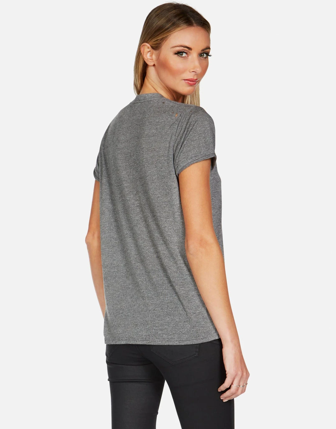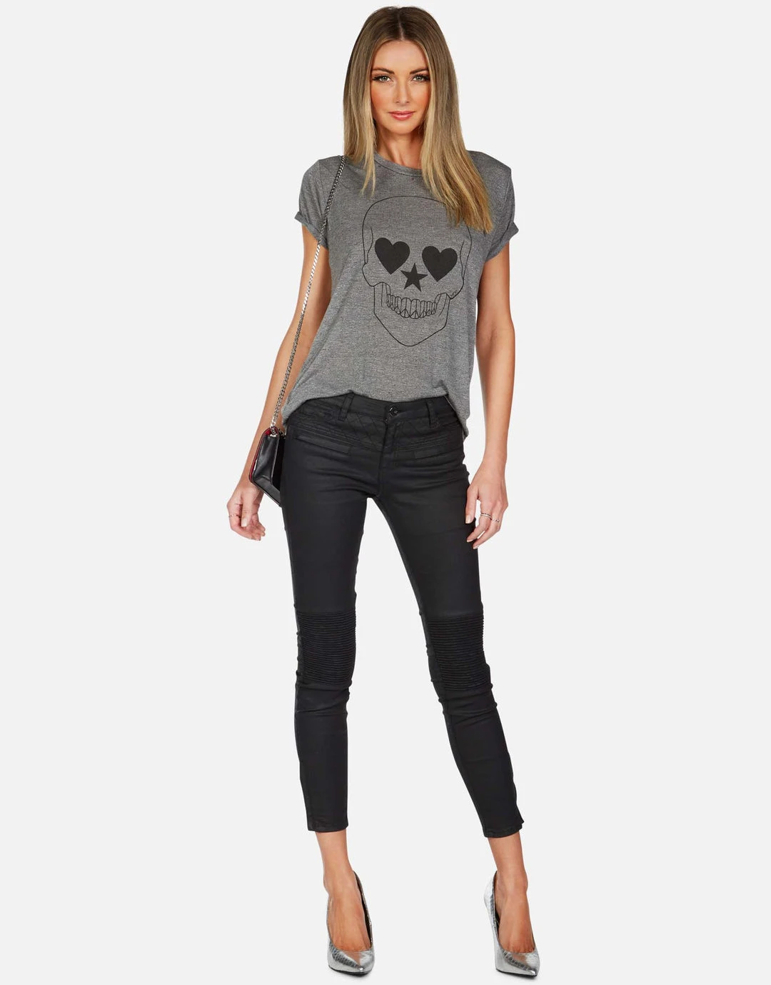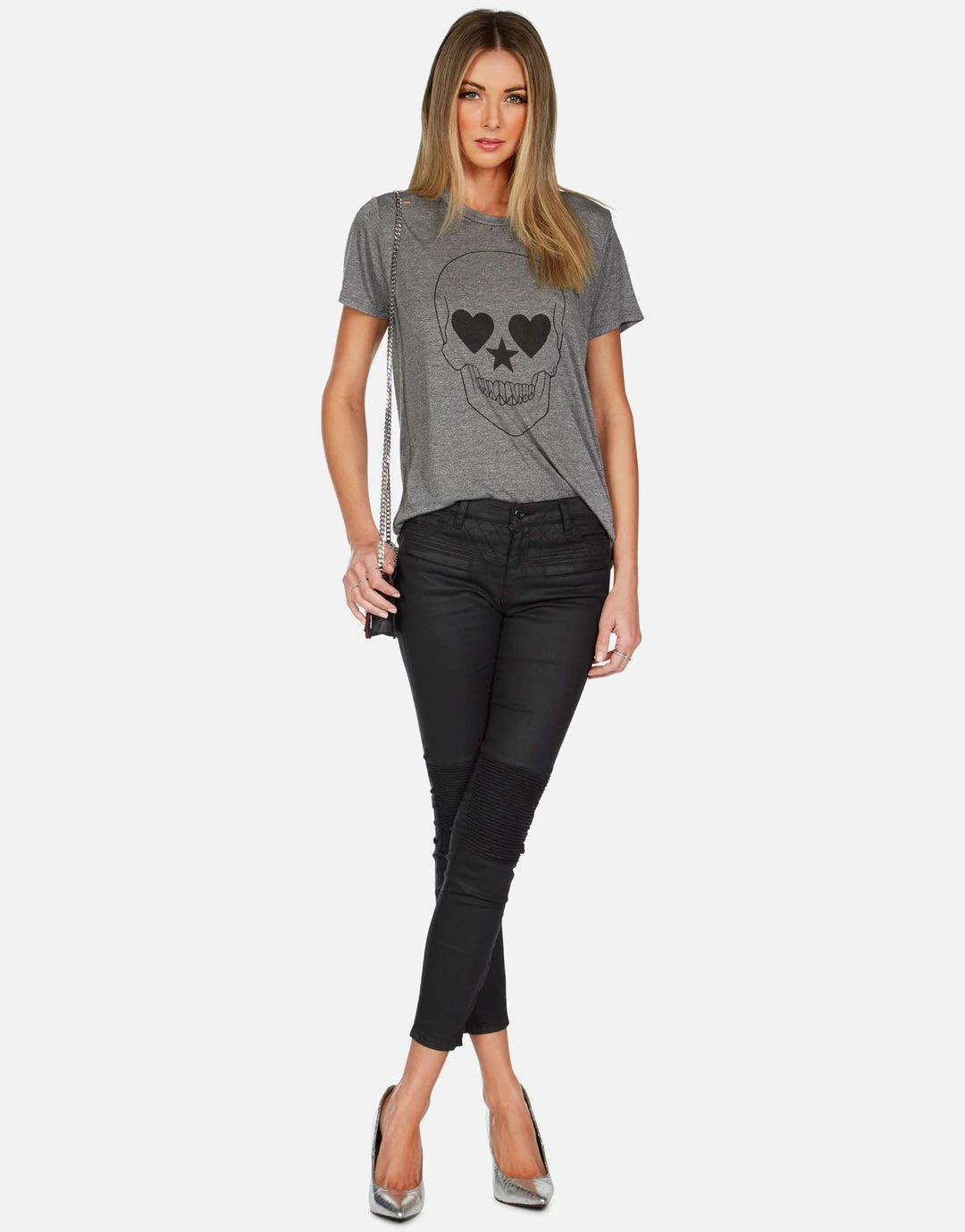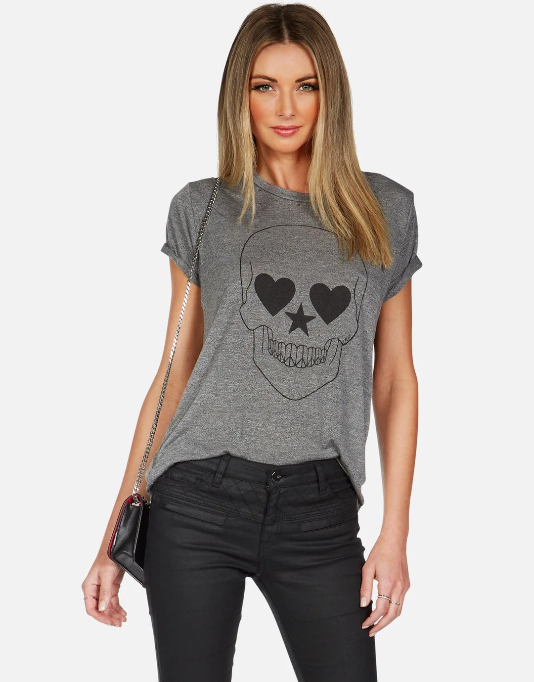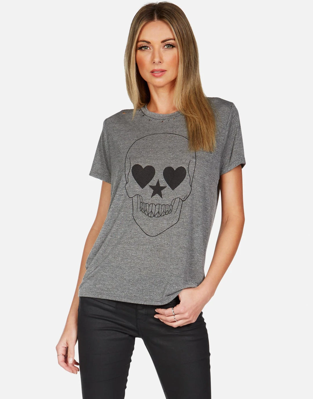 Peace Love Skull Printed on Ultra Soft Lightweight Tee in Heather Grey by Lauren Moshi.