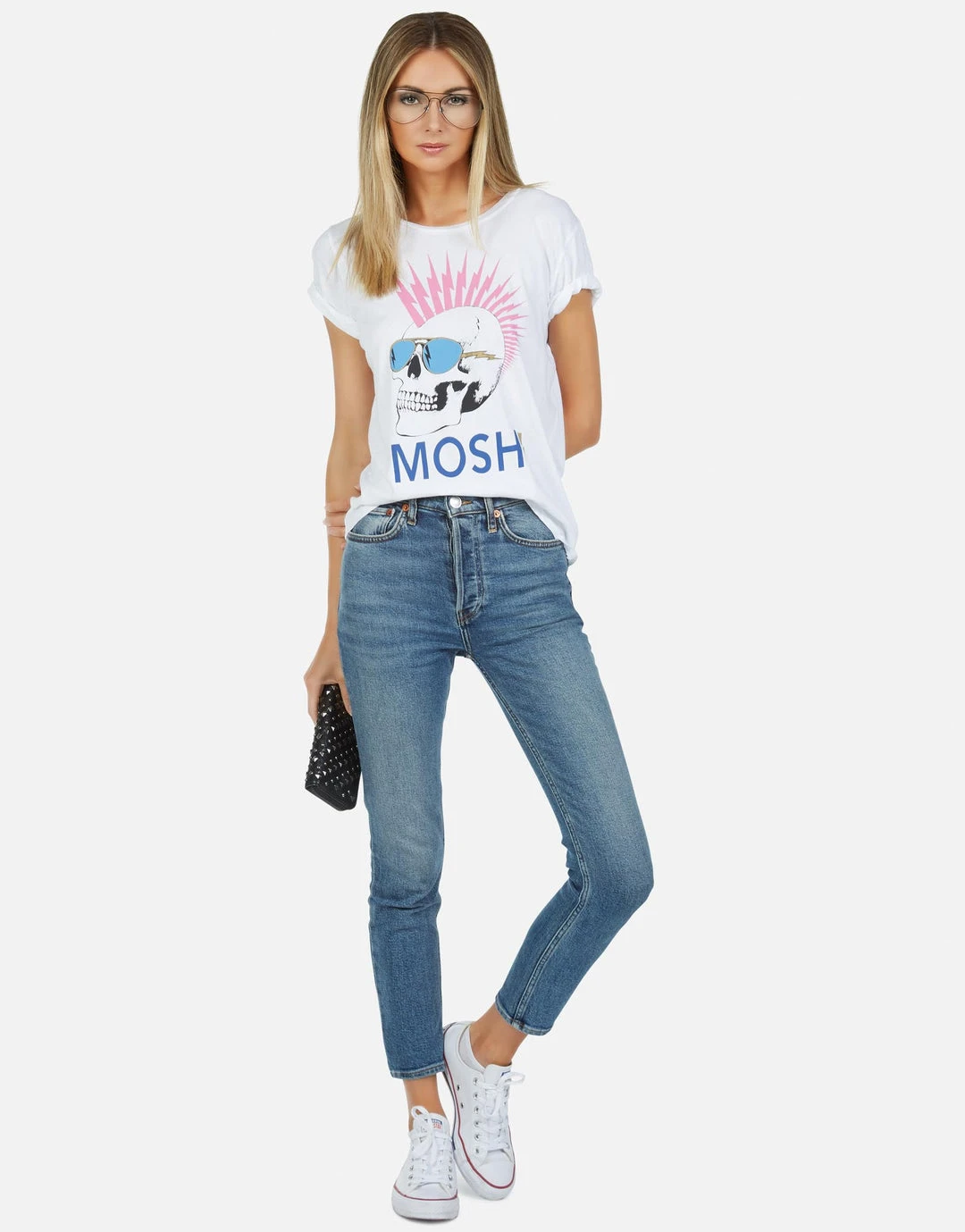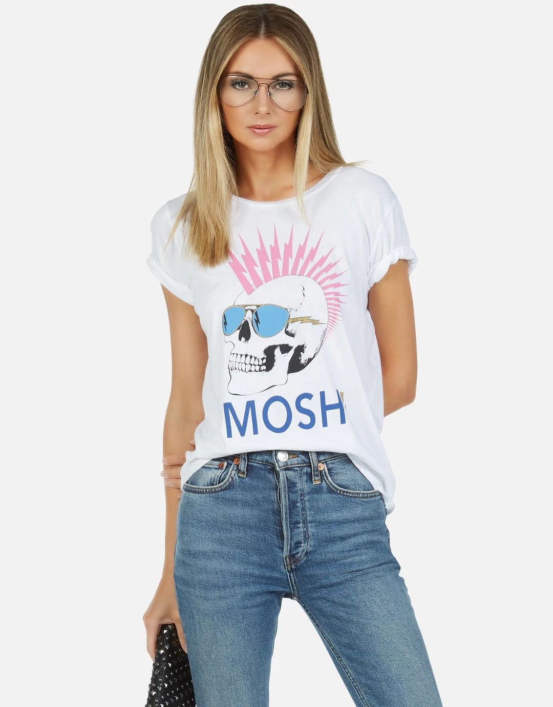 Moshi Lightning Skull Printed on Ultra Soft Lightweight Tee in White by Lauren Moshi.