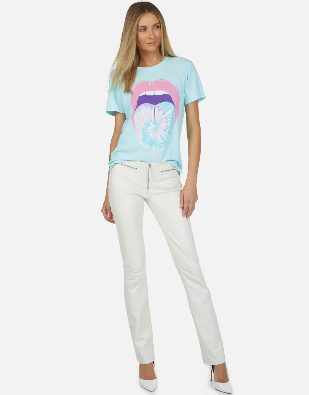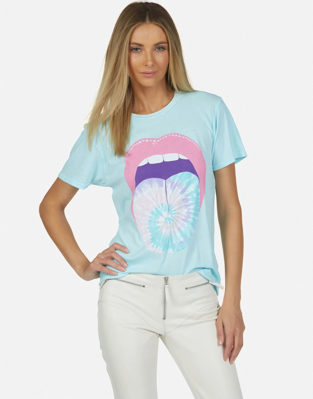 Tie Dye Tongue Printed on Ultra Soft Lightweight Vintage Tee in Seaside by Lauren Moshi.