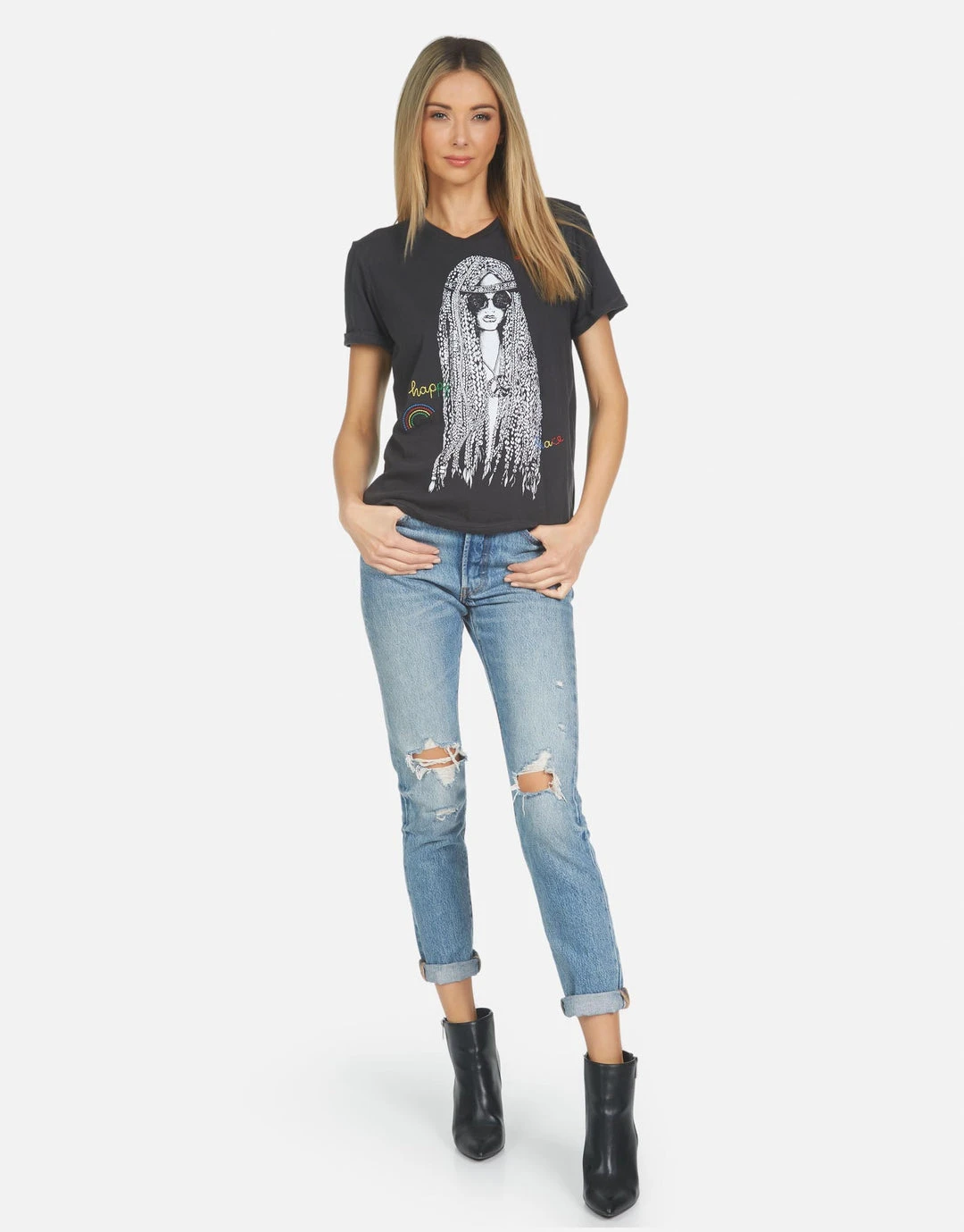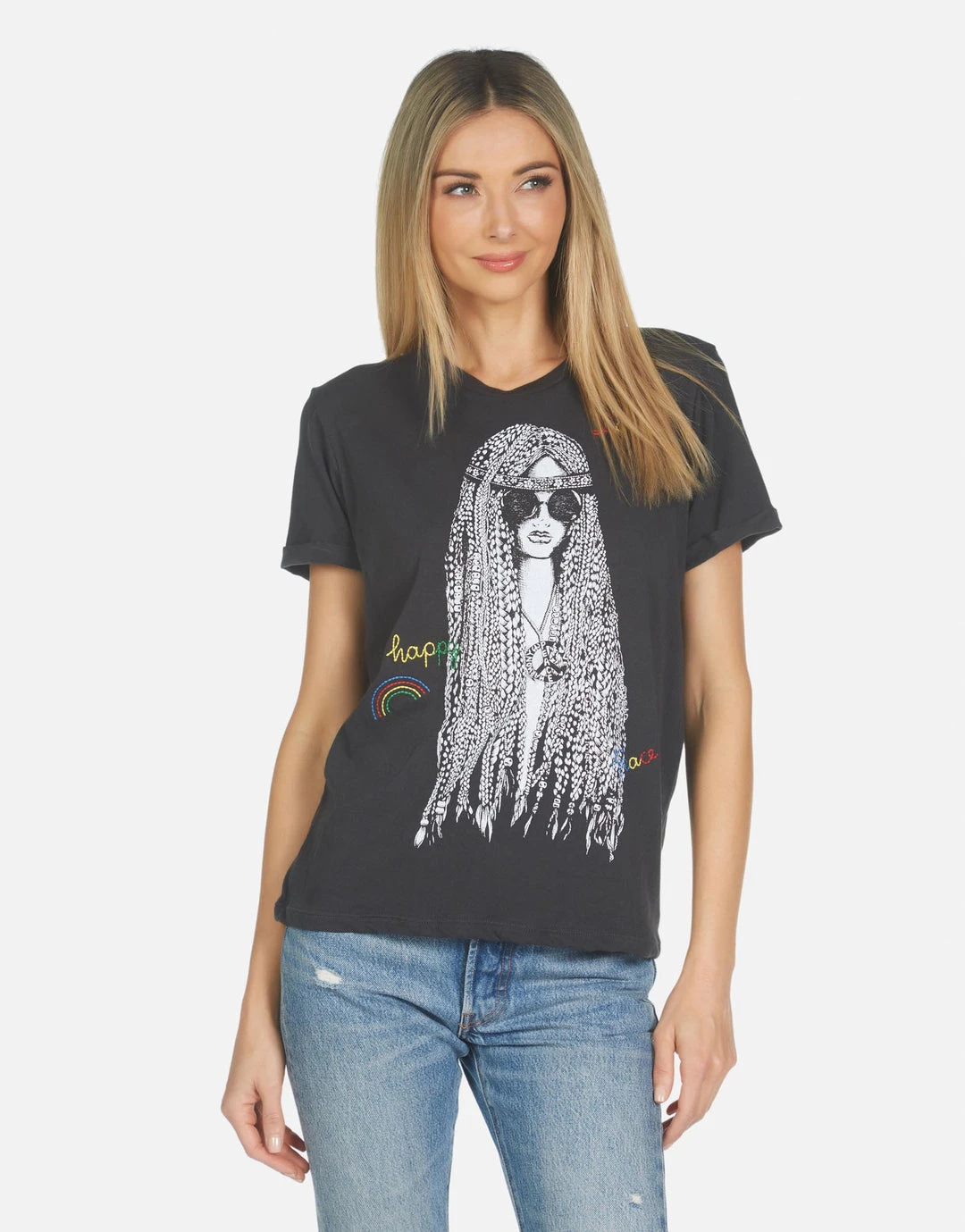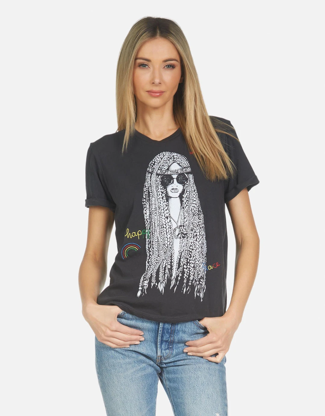 - Screen Print Graphic w/ Embroidered Details