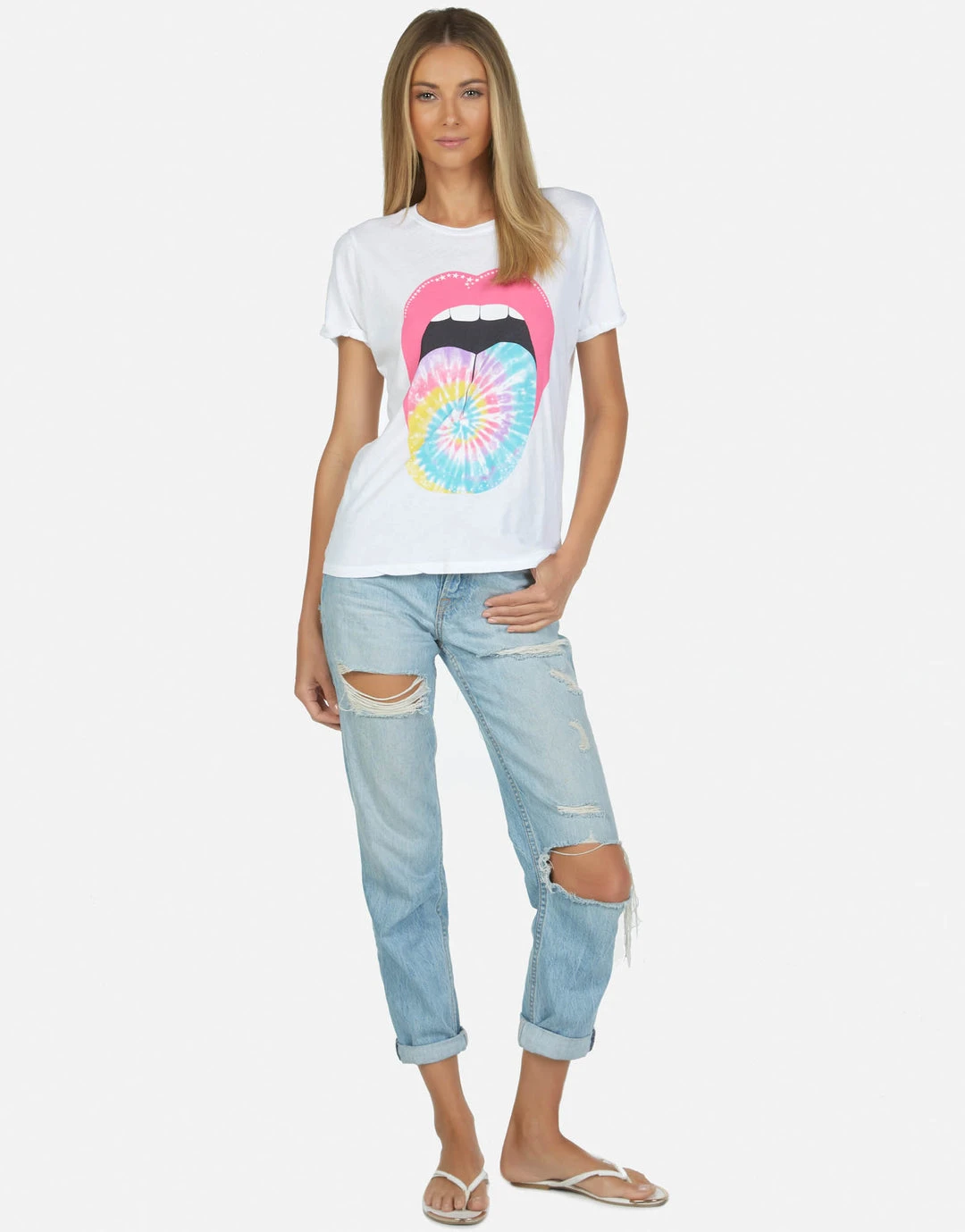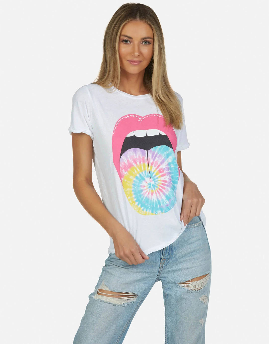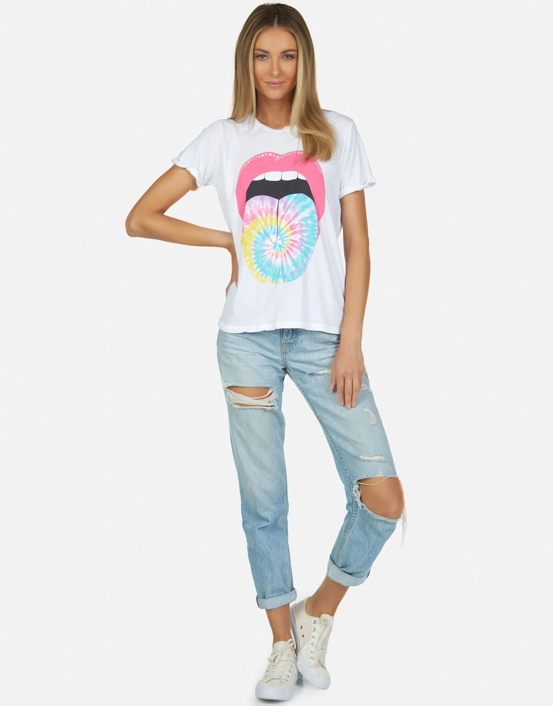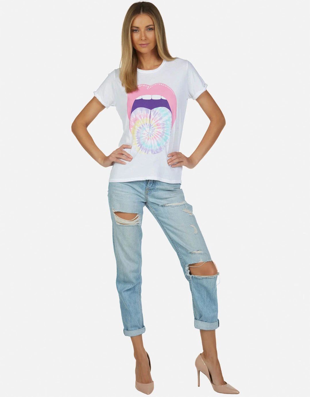 Tie Dye Tongue Printed on Ultra Soft Lightweight Vintage Tee in White by Lauren Moshi.