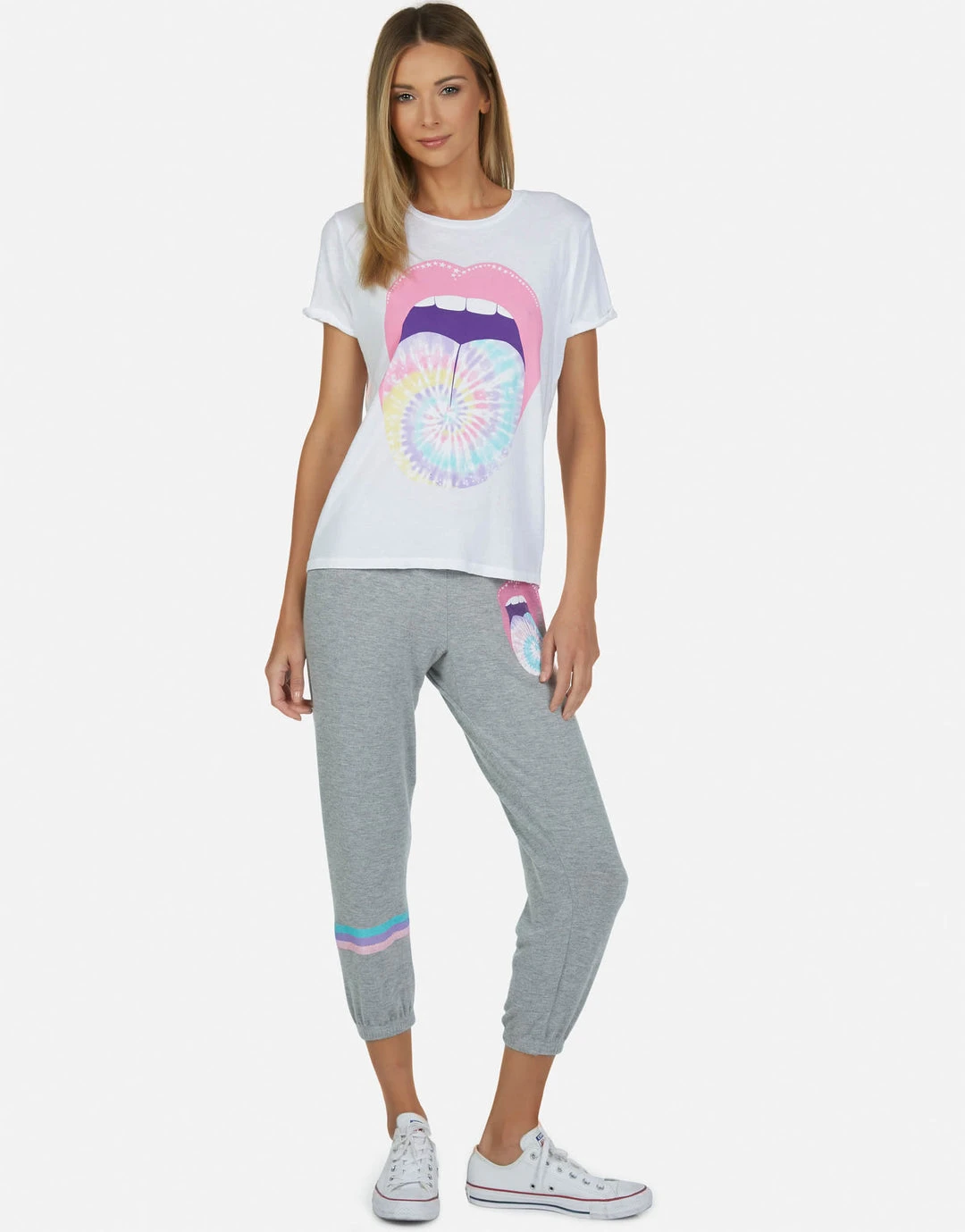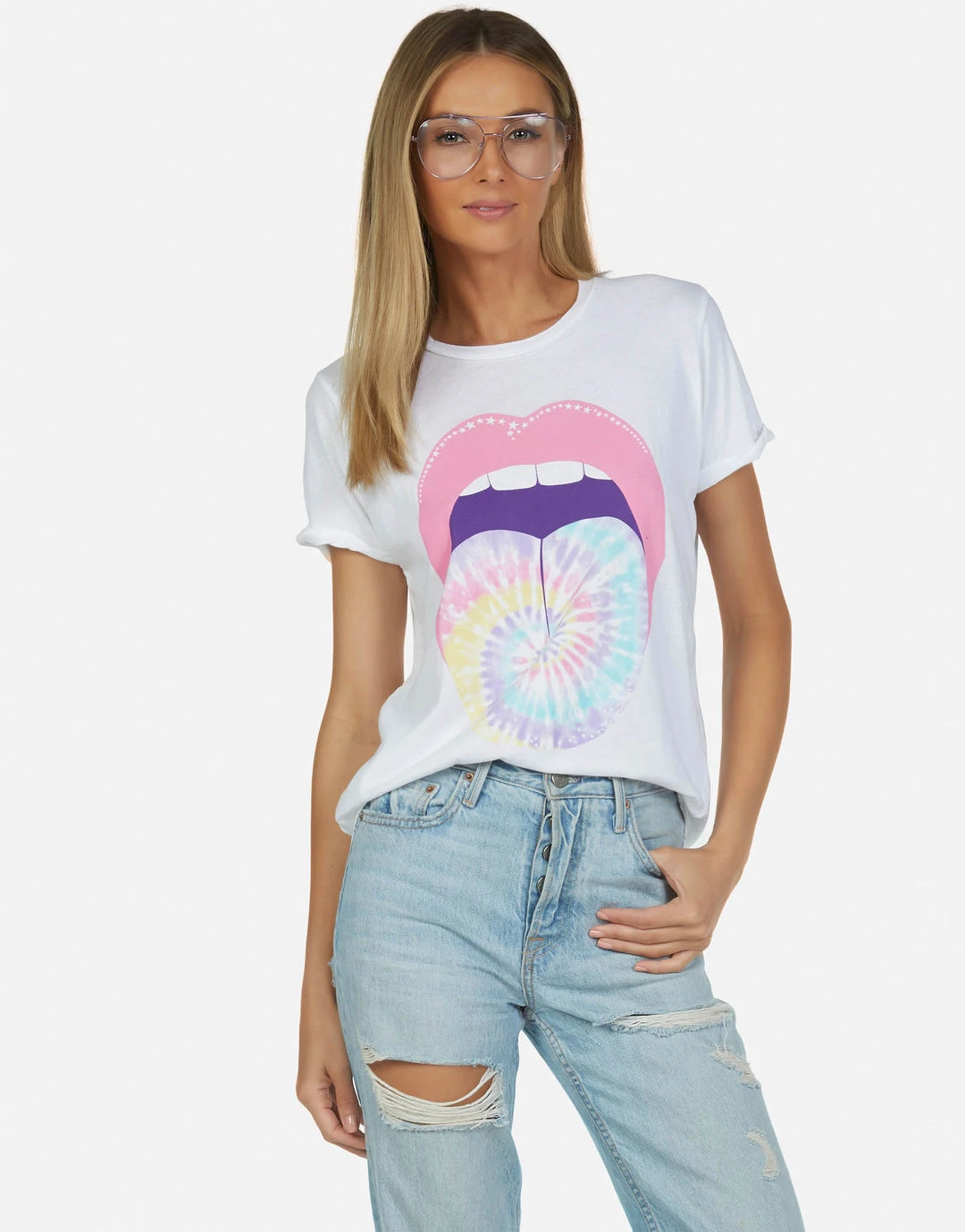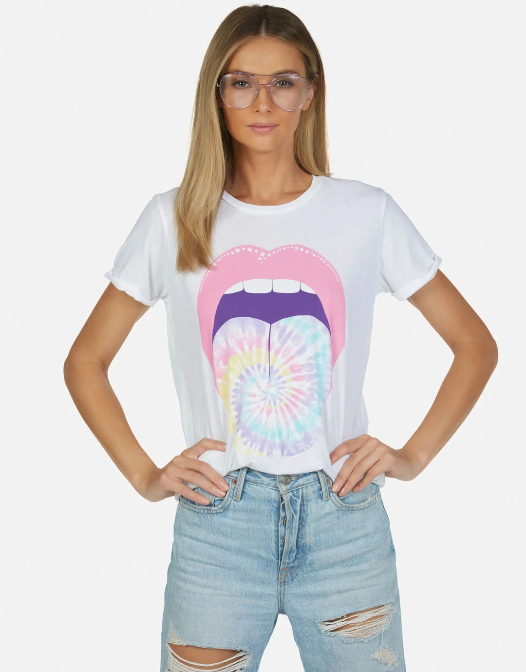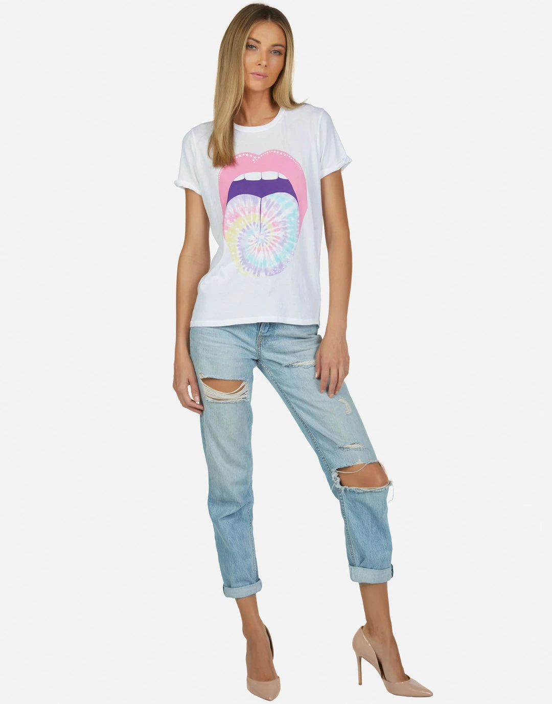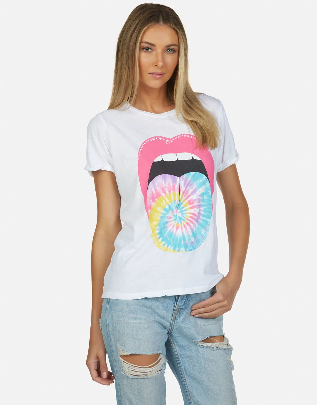 Tie Dye Tongue Printed on Ultra Soft Lightweight Vintage Tee in White by Lauren Moshi.