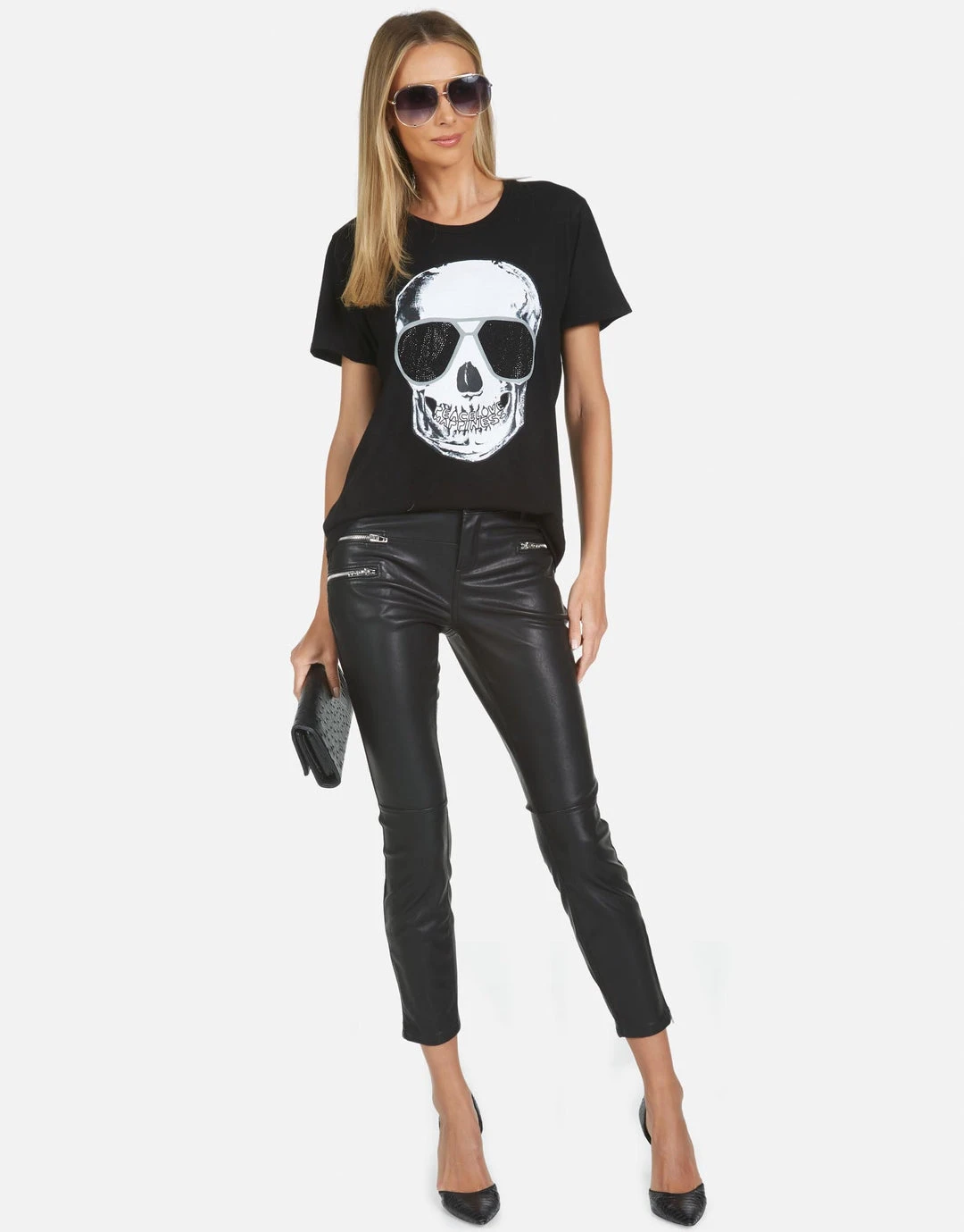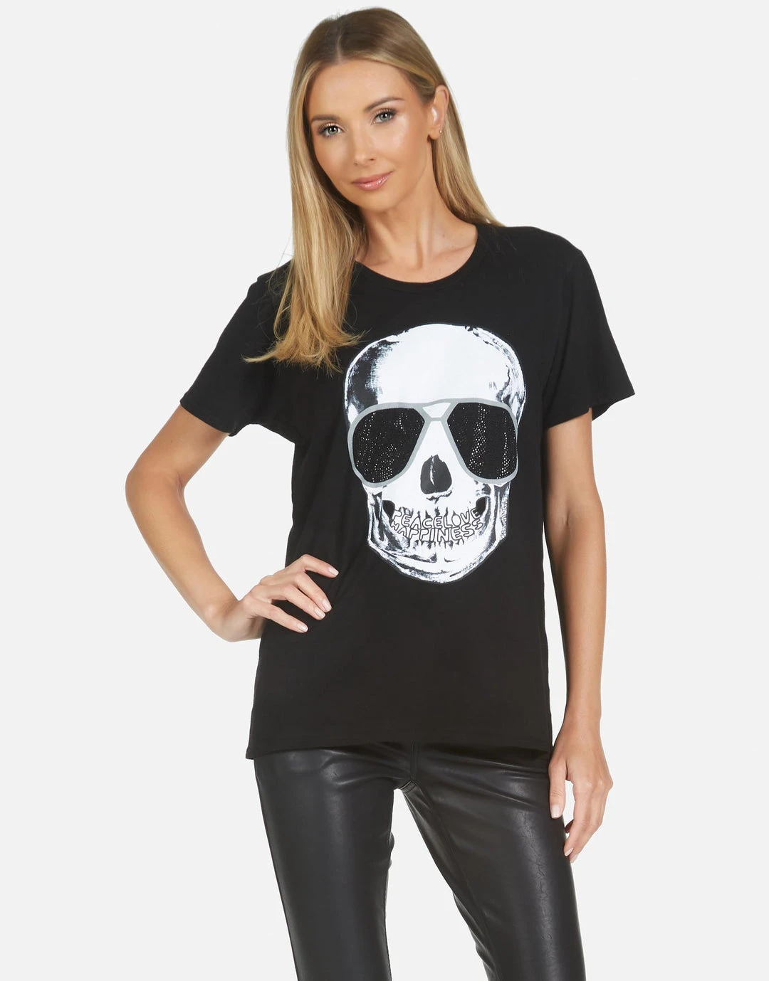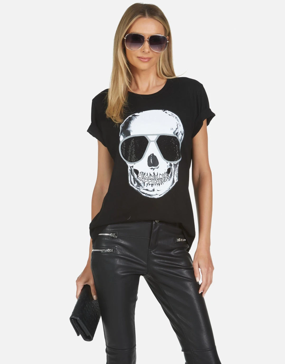 Cool Skull Printed on Ultra Soft Lightweight Tee in Black by Lauren Moshi.