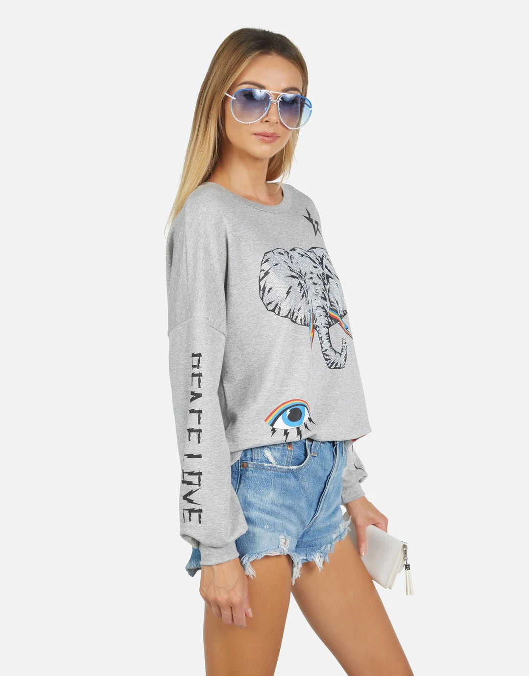 Elephant Bolt Elements Printed on Ultra Soft Lightweight Tee in Heather GRey by Lauren Moshi.