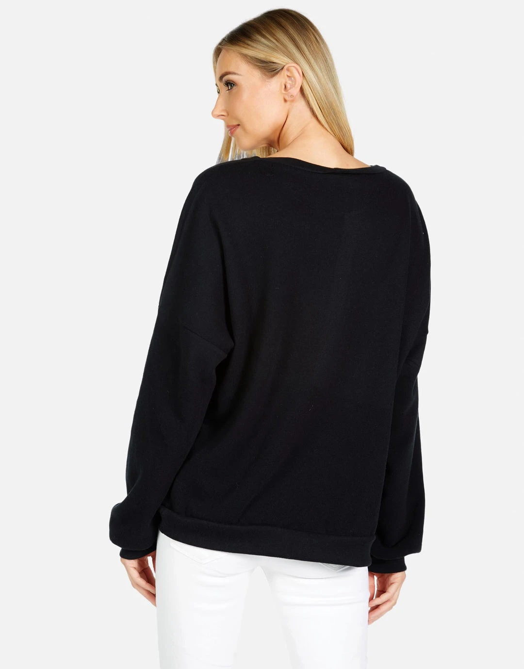 Red Kiss Printed on Ultra Soft Lightweight Pullover in Black by Lauren Moshi.