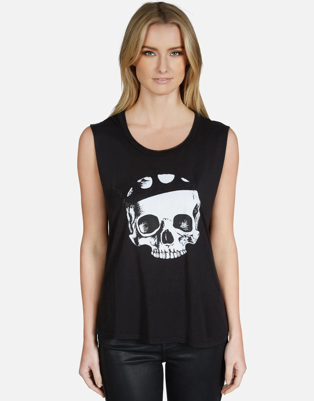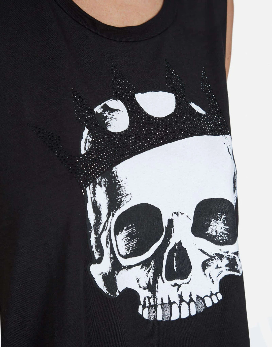 Crystal Royal Skull Printed on Ultra Soft Lightweight Tank in Black by Lauren Moshi.