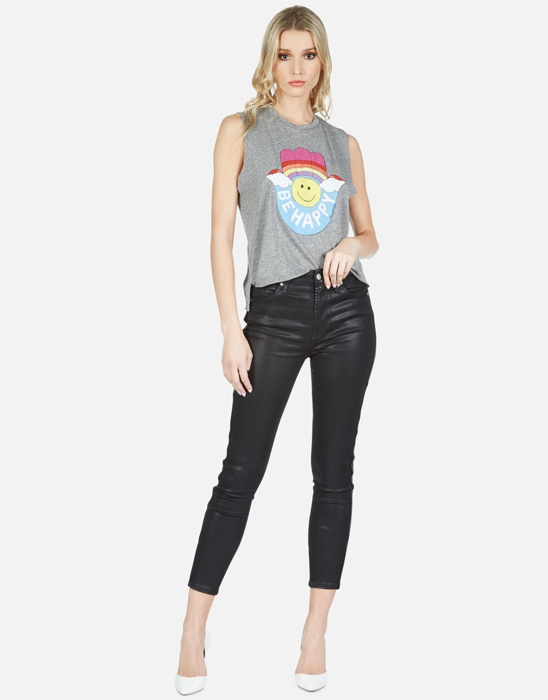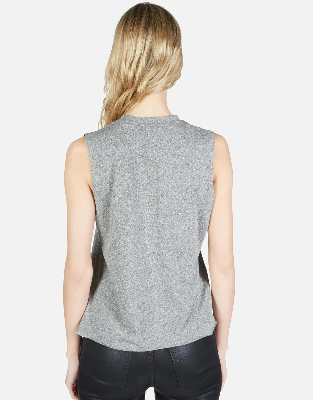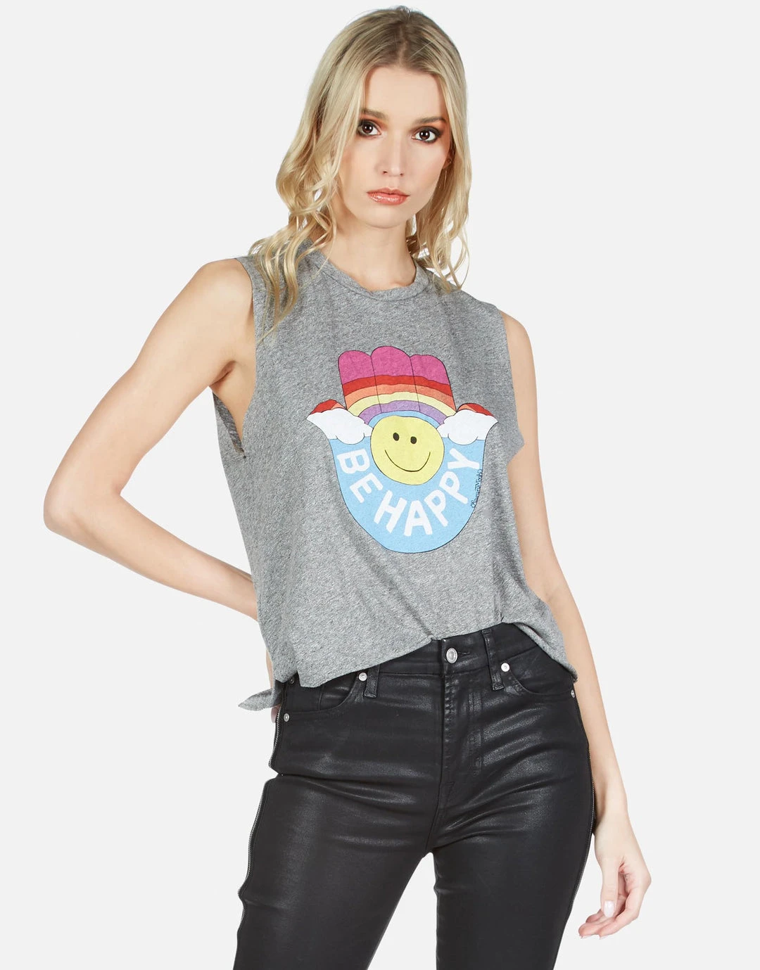 Happy Hamsa Printed on Ultra Soft Lightweight Tank in Heather Grey by Lauren Moshi.