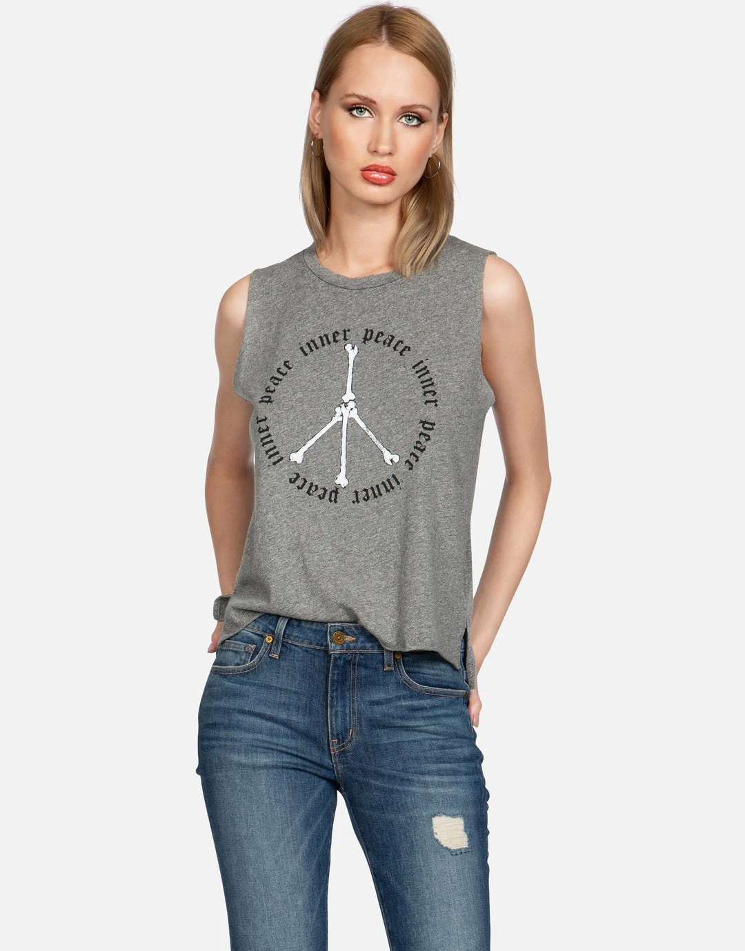 Inner Peace Sign Printed on Ultra Soft Lightweight Tank in Heather Grey by Lauren Moshi.