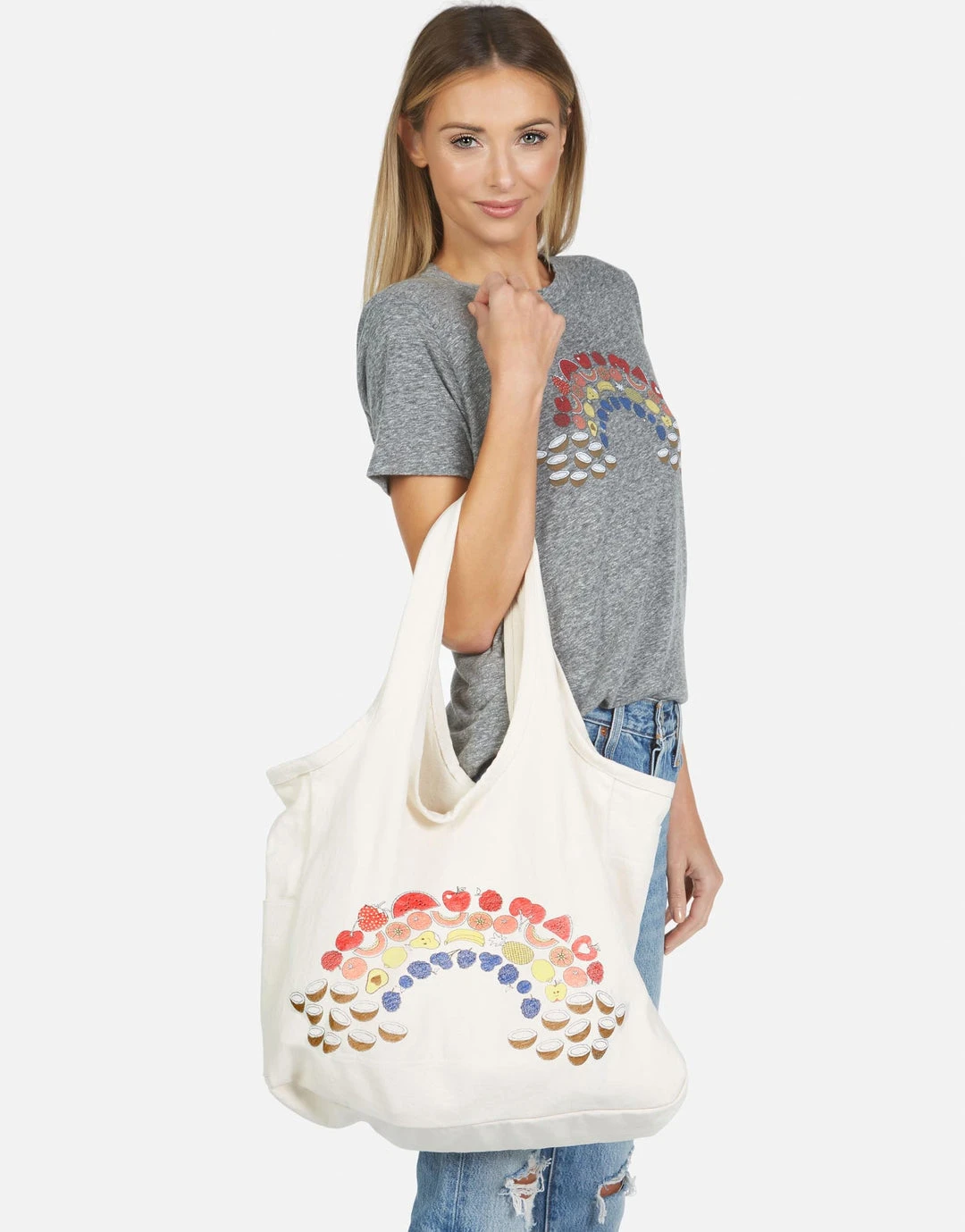 Fruit Rainbow Printed on Ultra Soft Lightweight Tote Bag in Natural by Lauren Moshi.