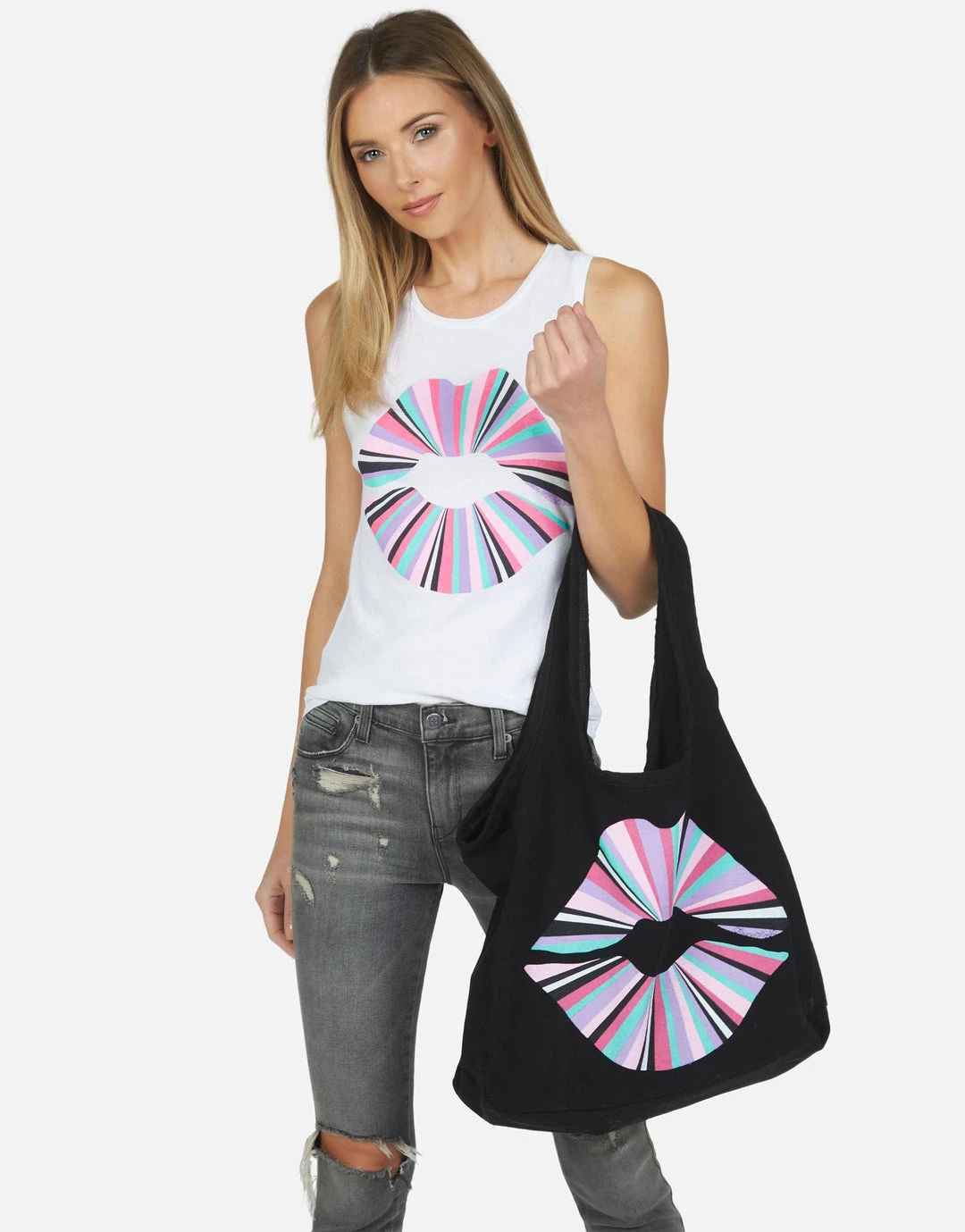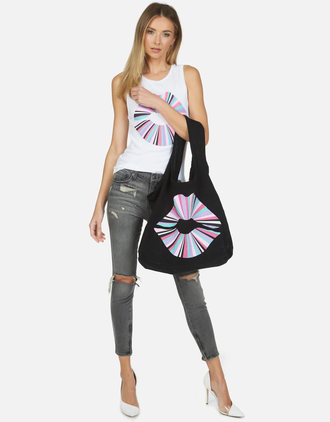 Rainbow Ray Printed on Ultra Soft Lightweight Tote Bag in Black or Natural by Lauren Moshi.