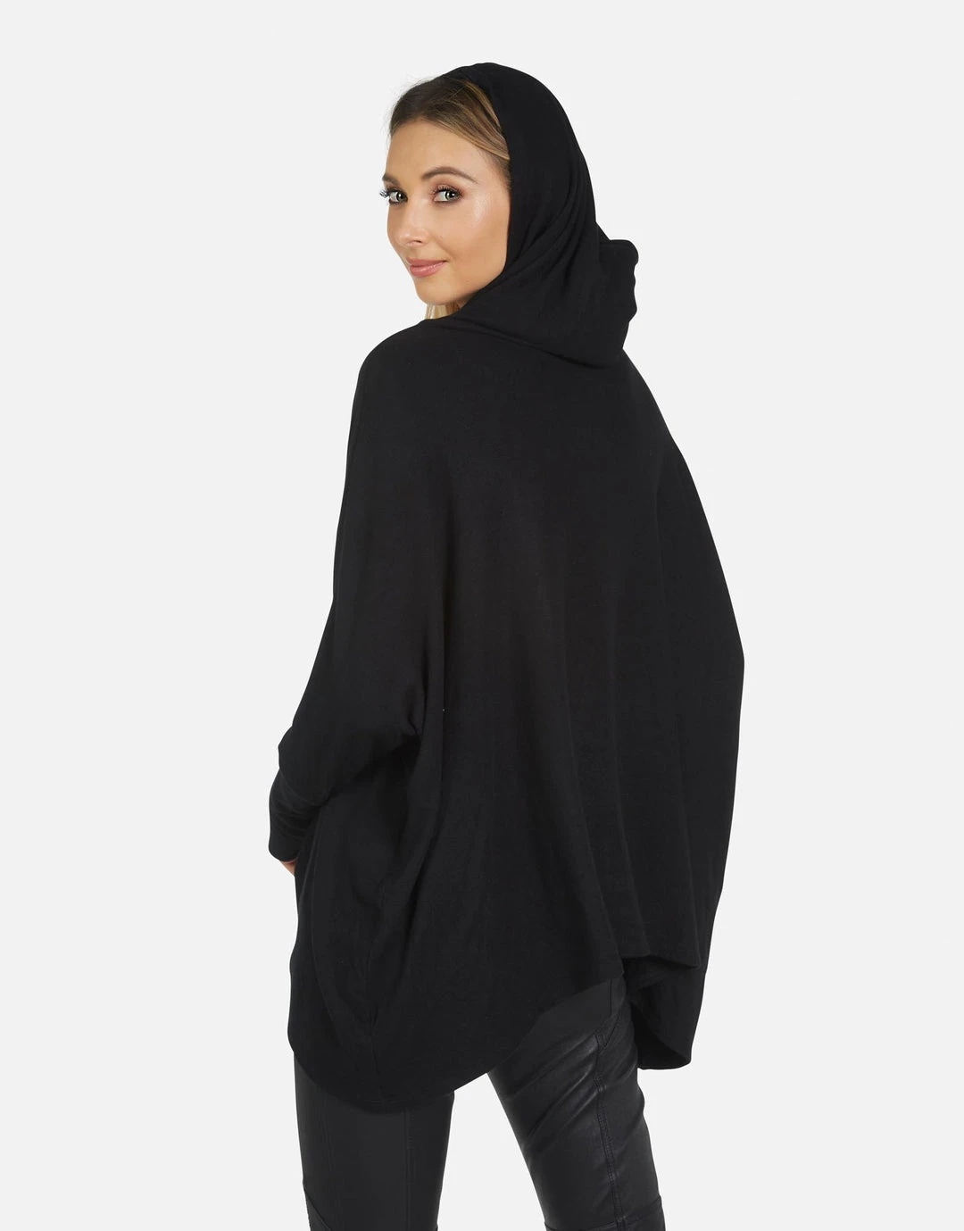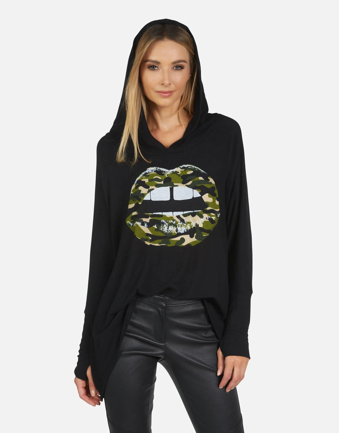Camo Lip Printed on Ultra Soft Lightweight Hoodie in Black by Lauren Moshi.
