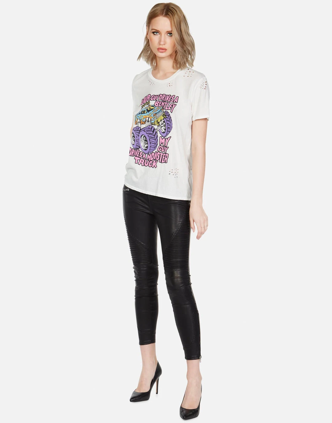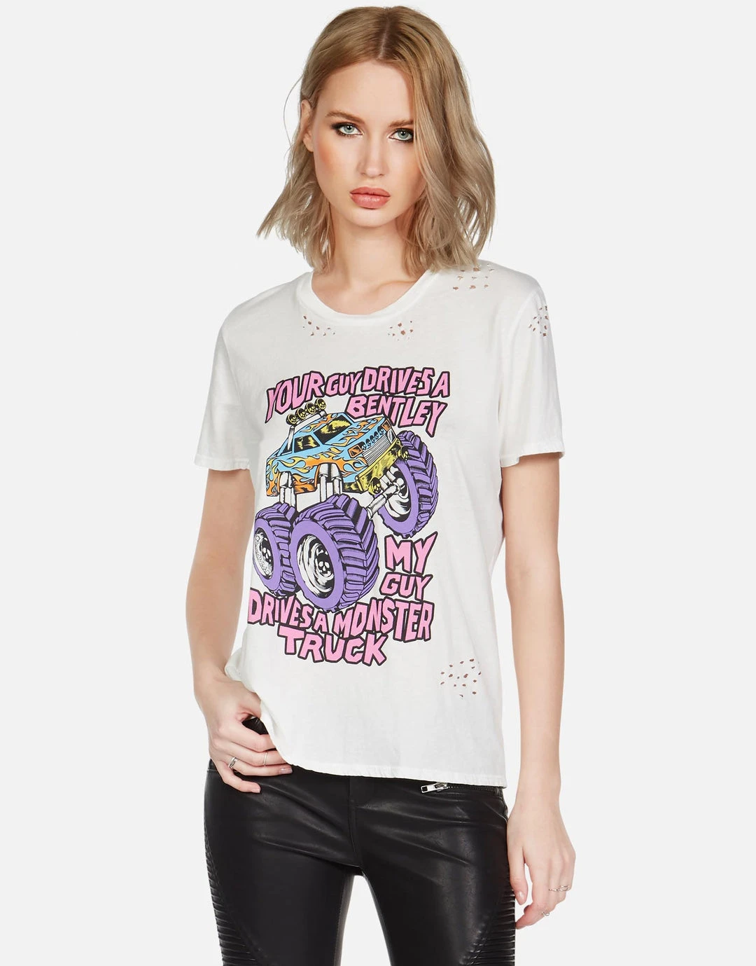 Monster Truck Printed on Ultra Soft Lightweight Tee in Milk by Lauren Moshi.