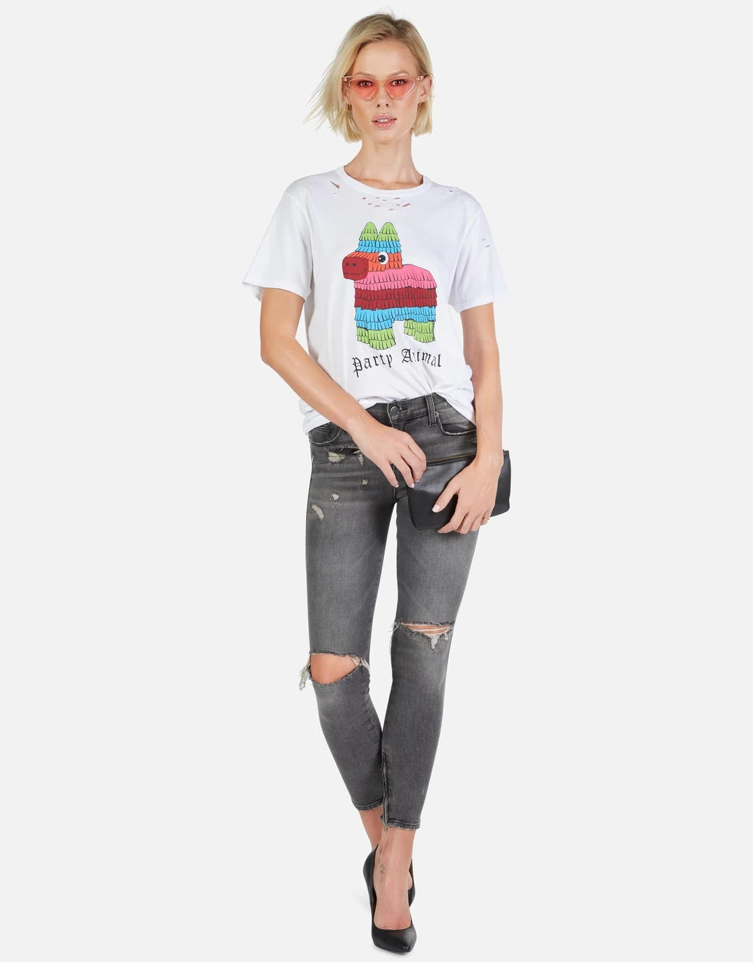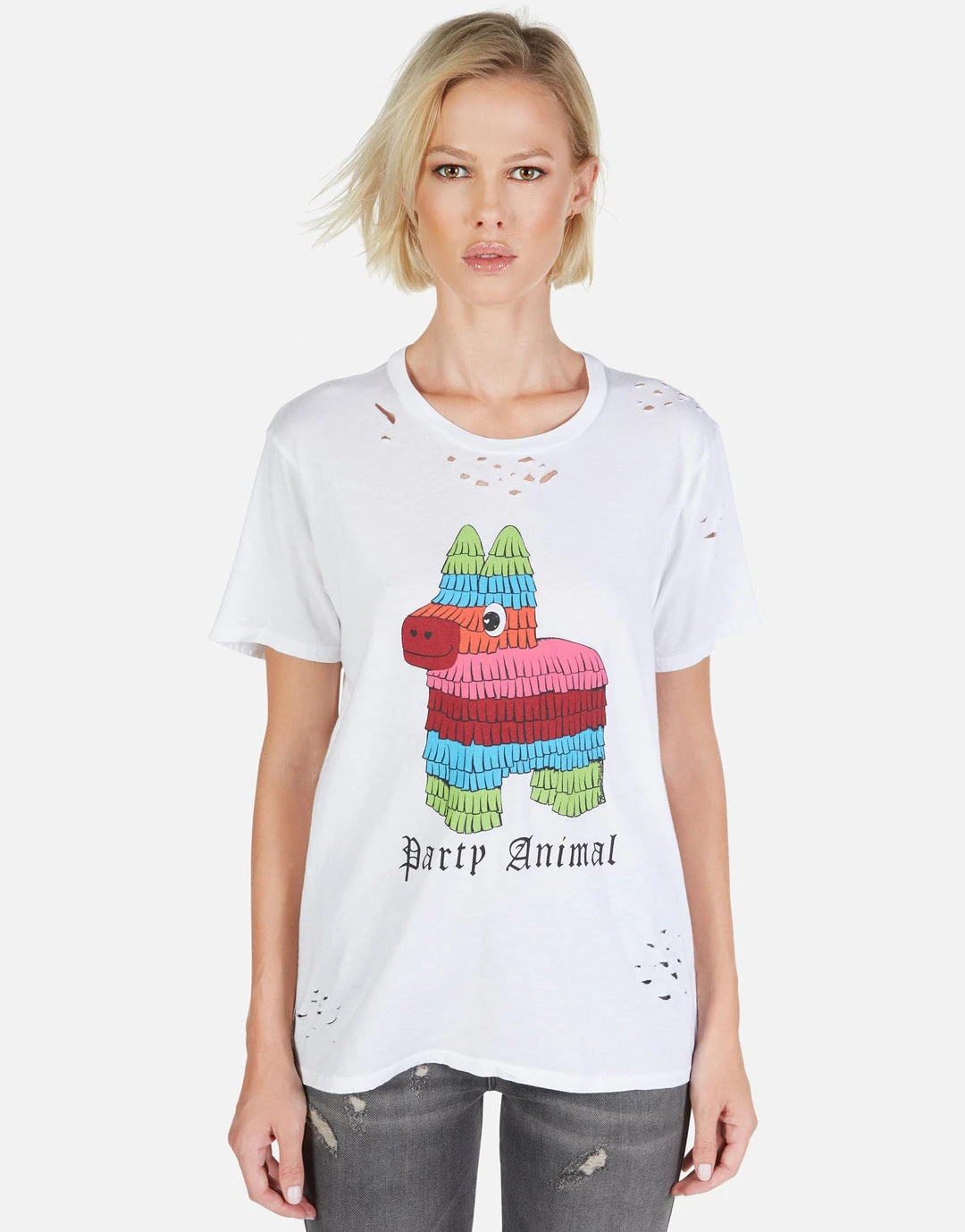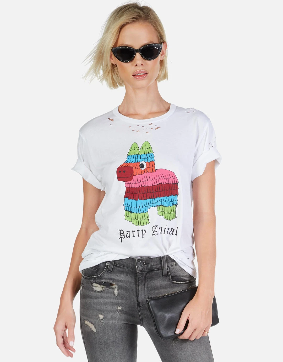 Party Pinata Printed on Super Soft Lightweight Tee in White by Lauren Moshi.