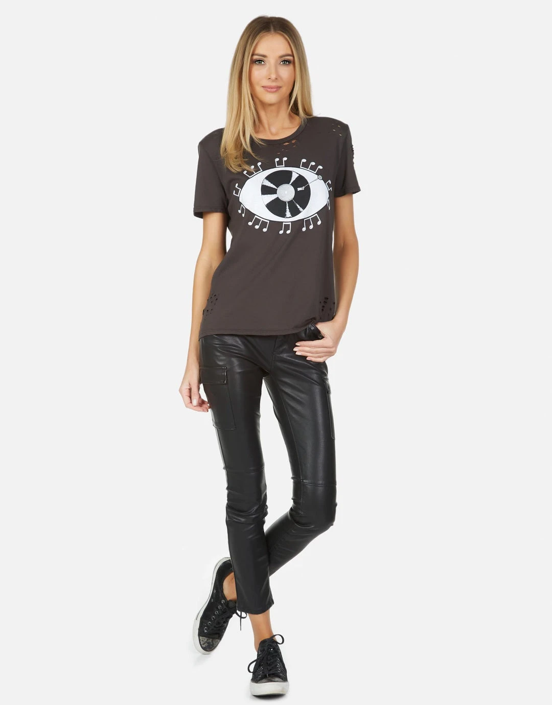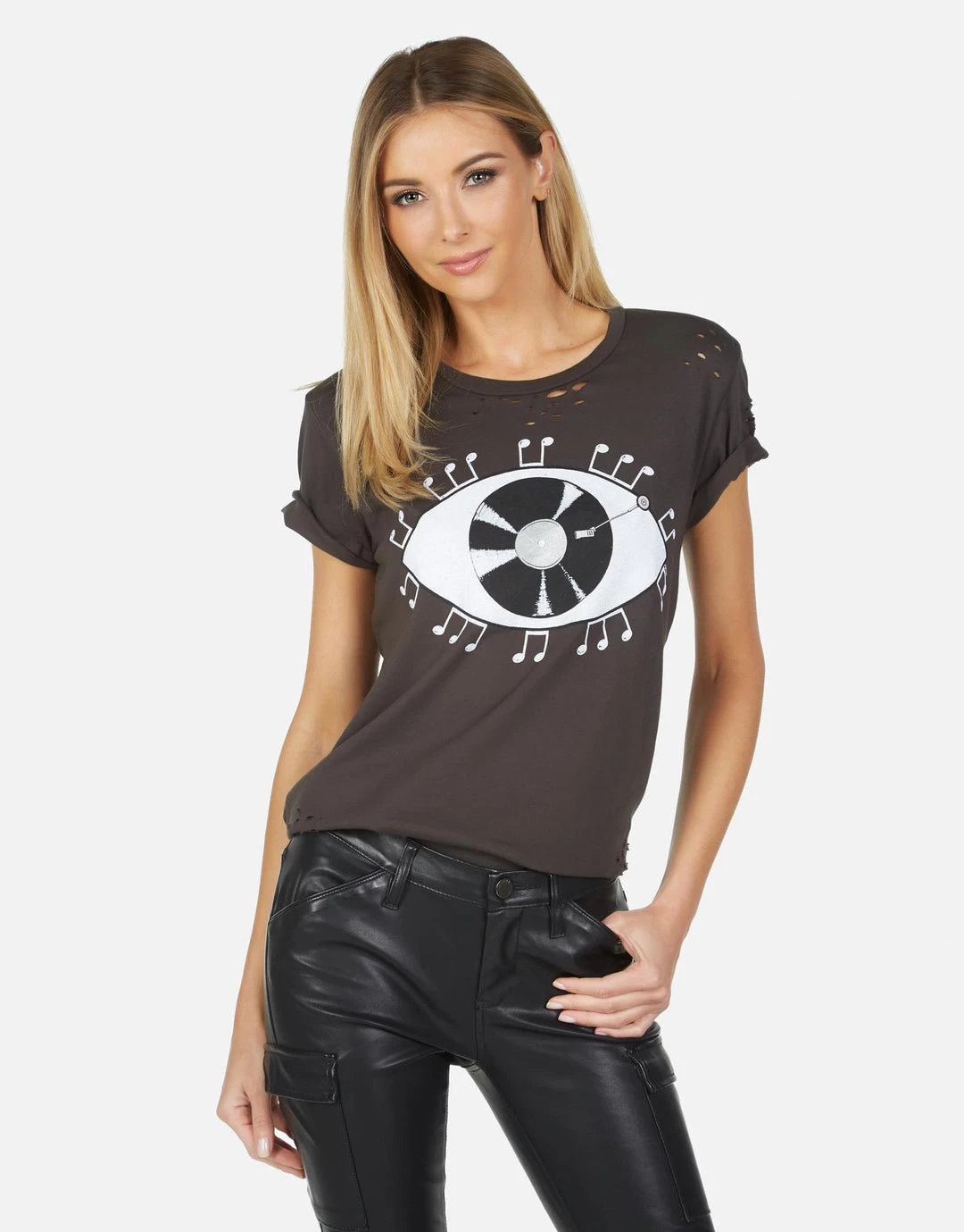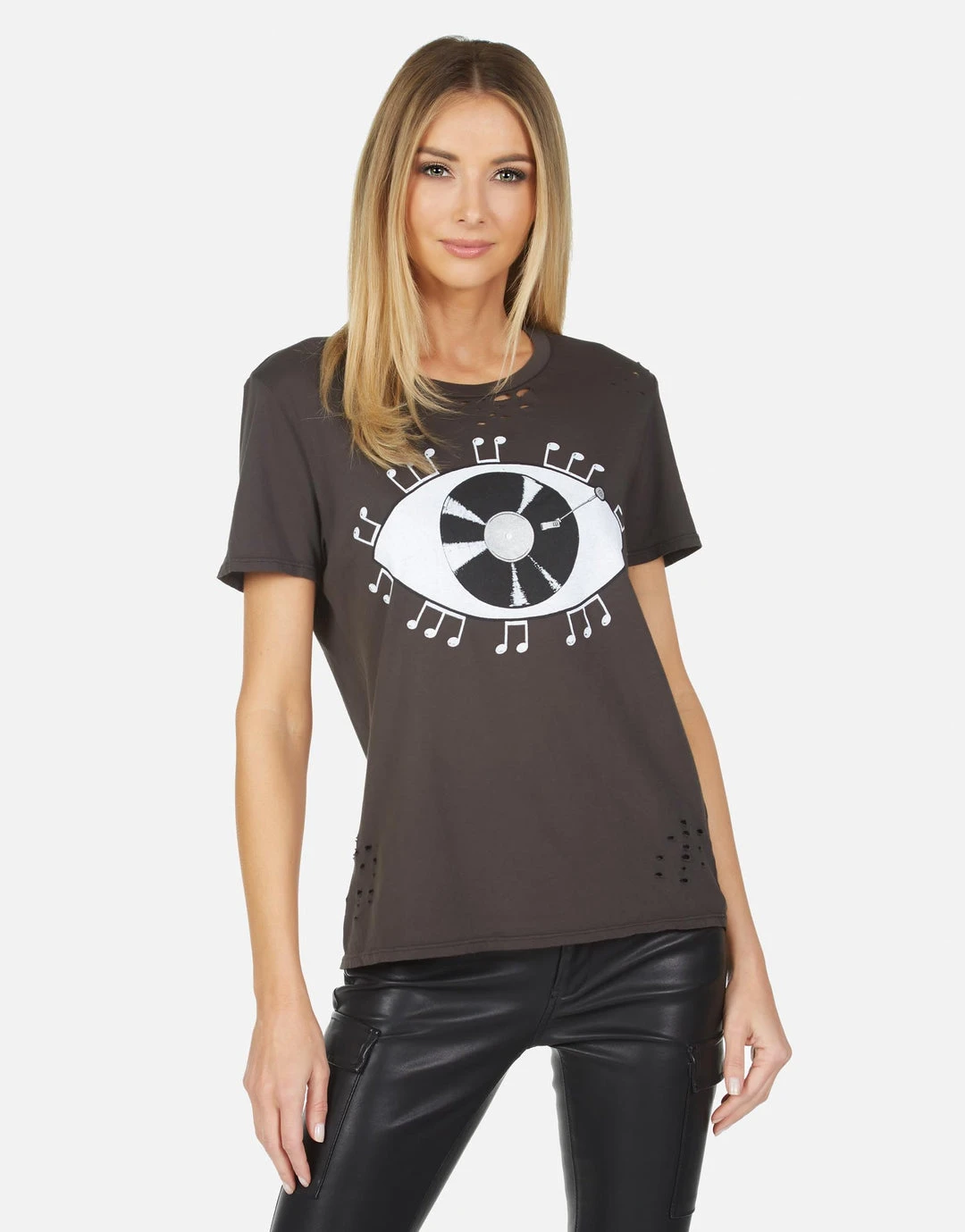 Record Eye Printed on Ultra Soft Lightweight Tee in Onyx by Lauren Moshi.