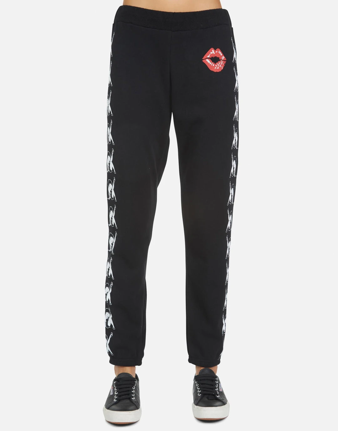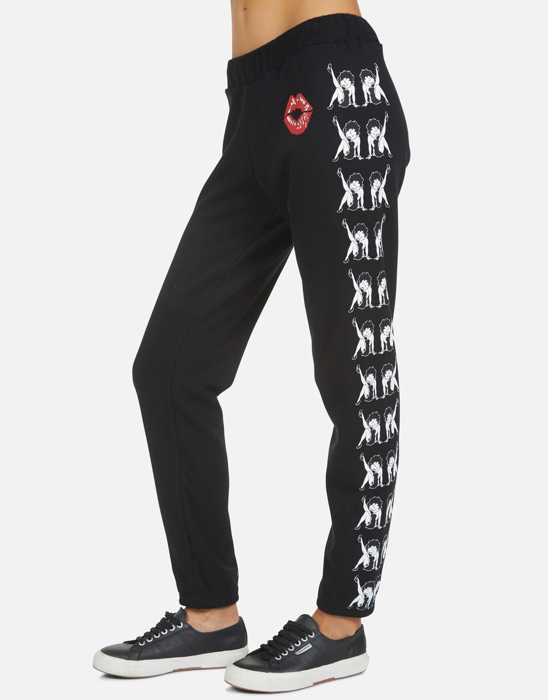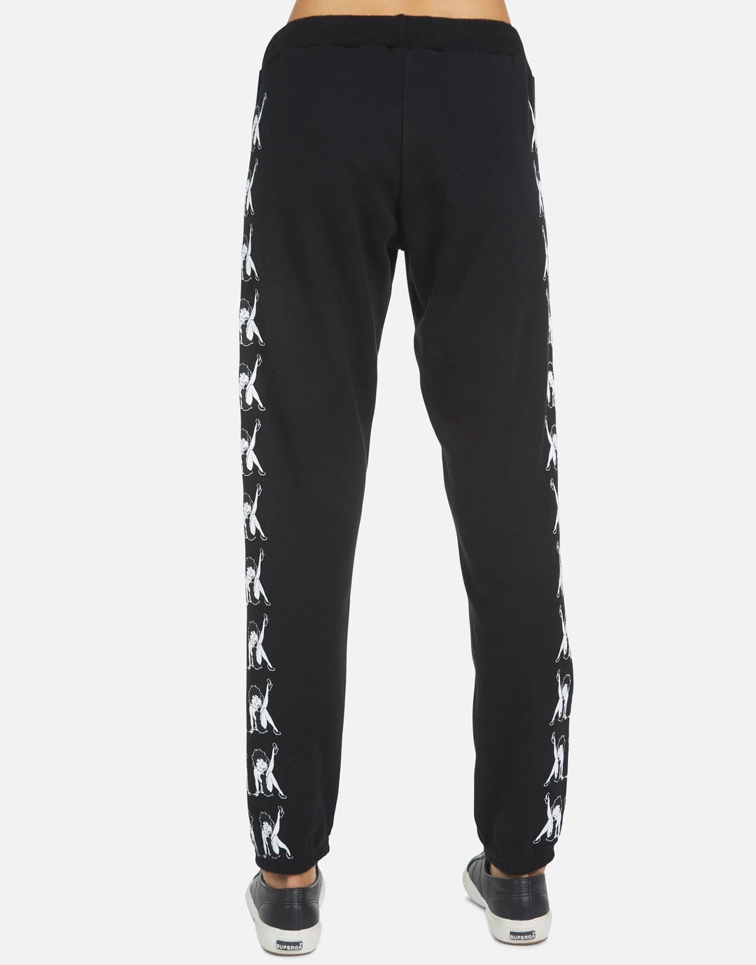 Betty Boop Printed on Ultra Soft Lightweight Sweatpant in Black by Lauren Moshi.