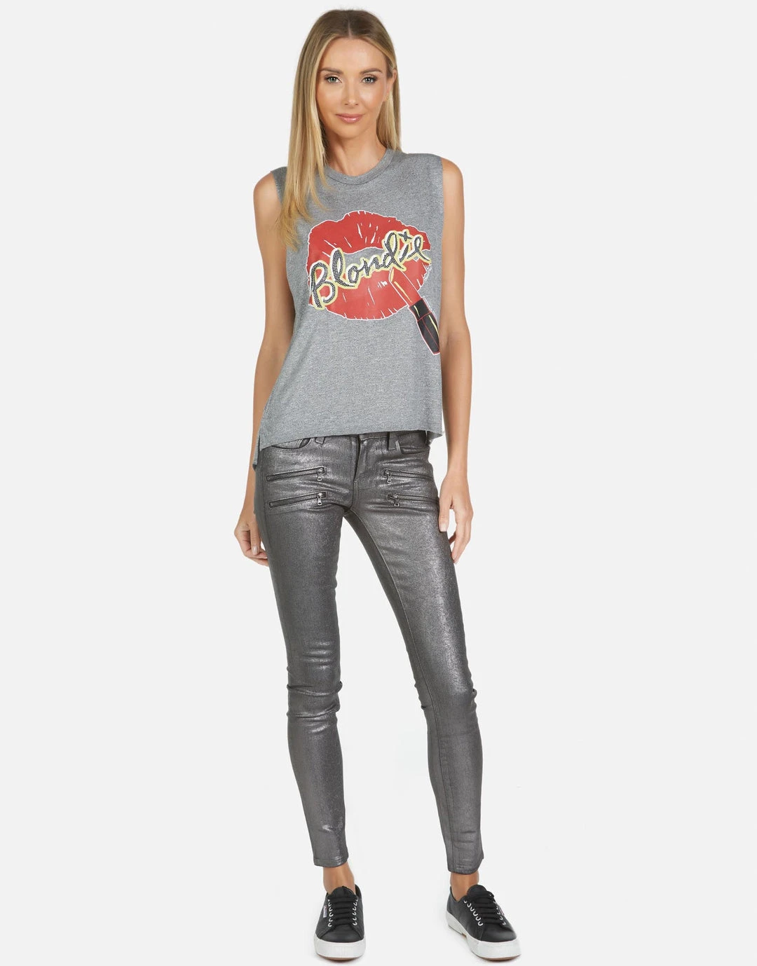 Blondie Kiss Printed on Ultra Soft Lightweight Tee in Heather Grey by Lauren Moshi.