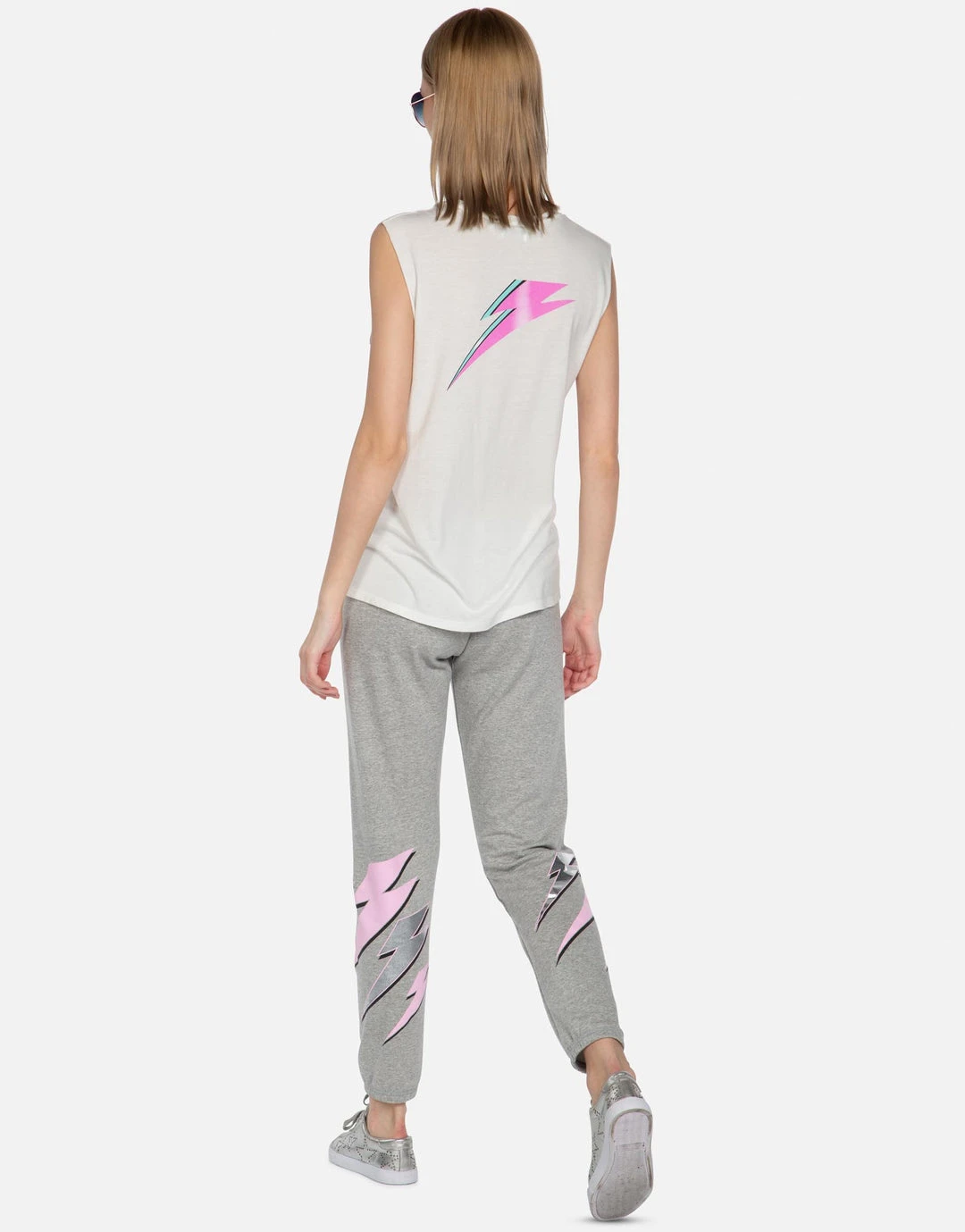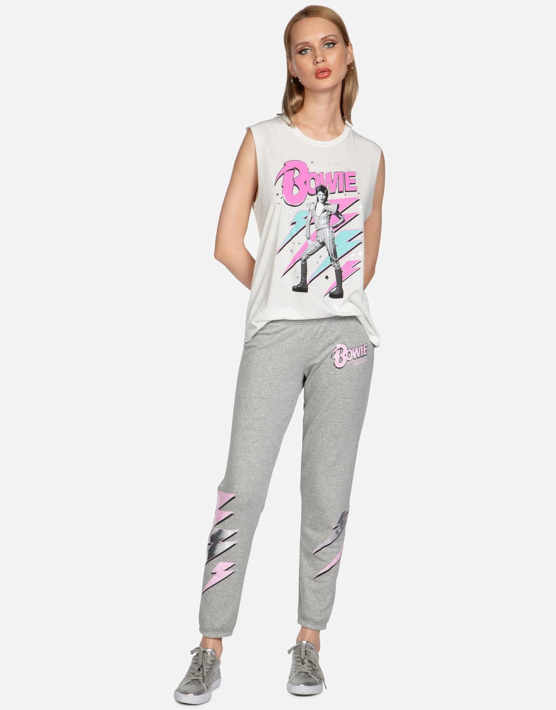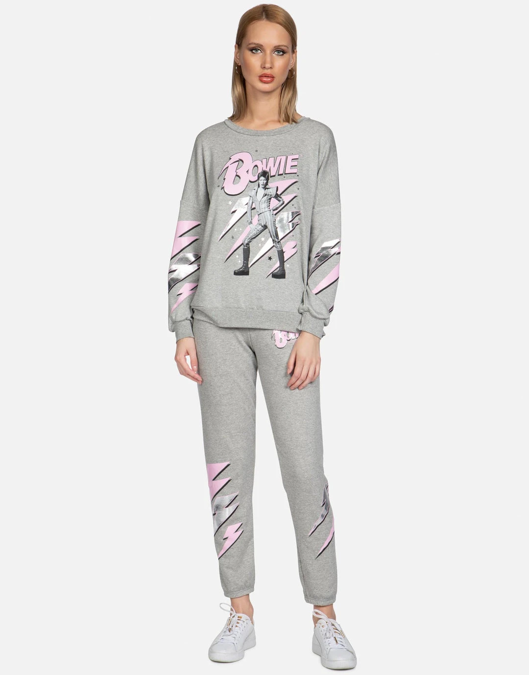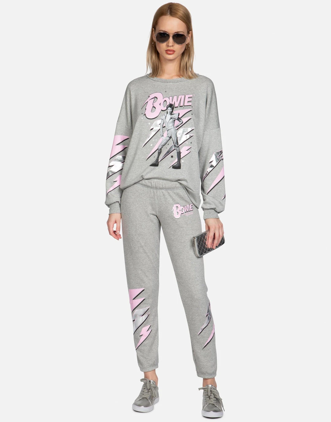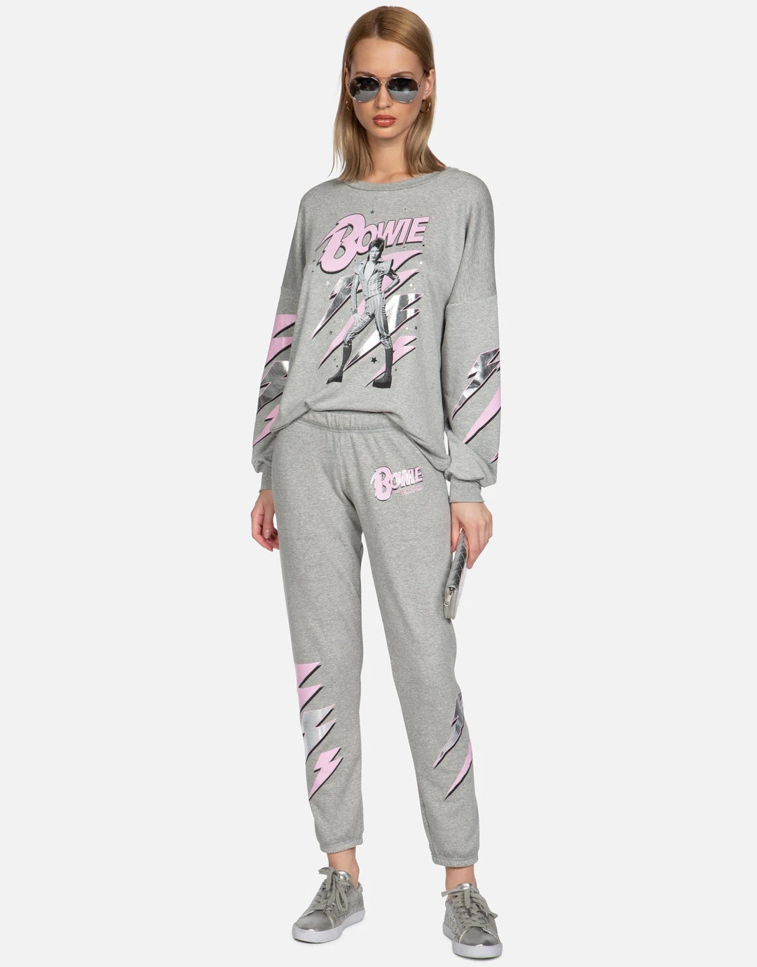 Bowie Stardust Printed on Ultra Soft Lightweight Sweatpant in Heather Grey by Lauren Moshi.