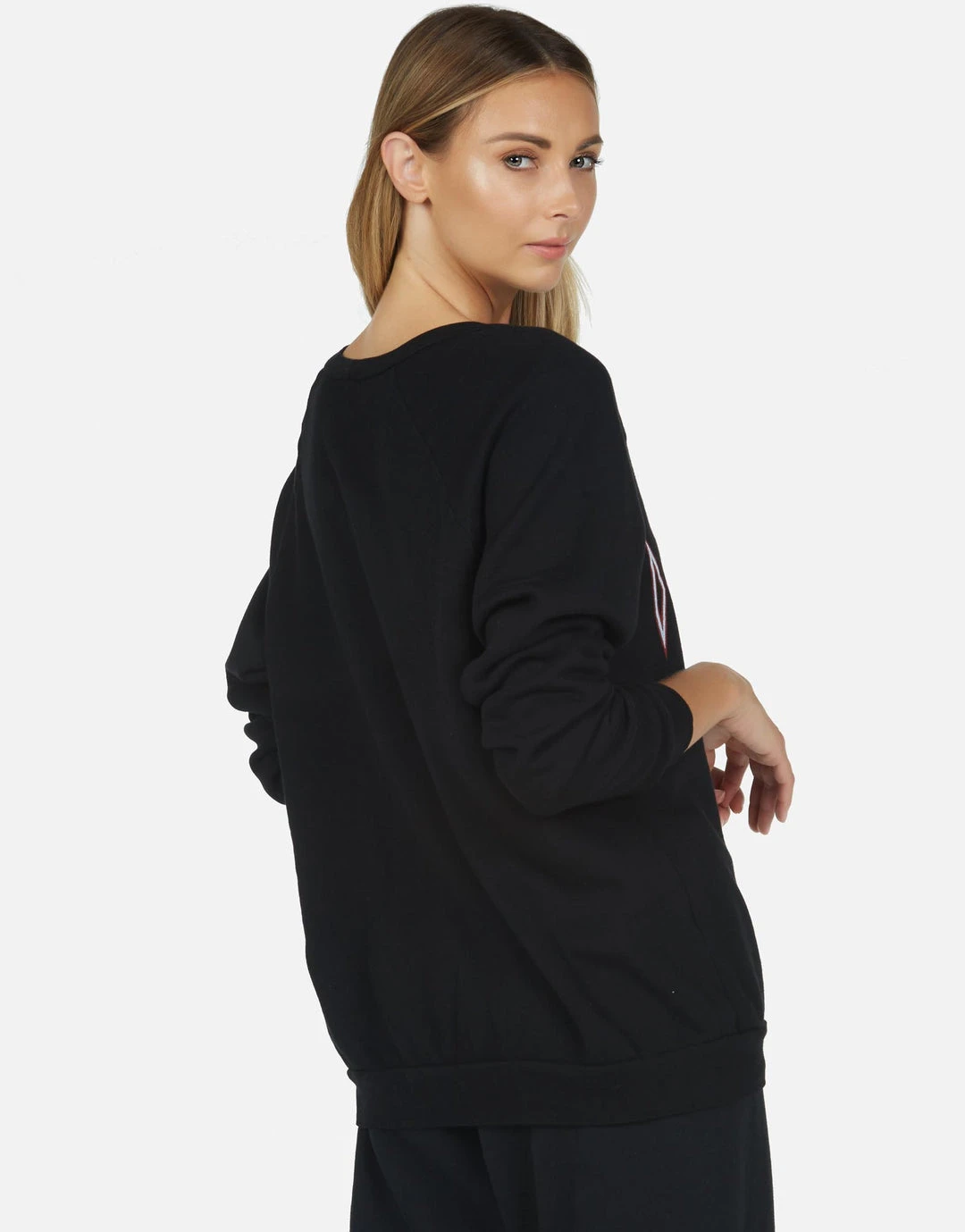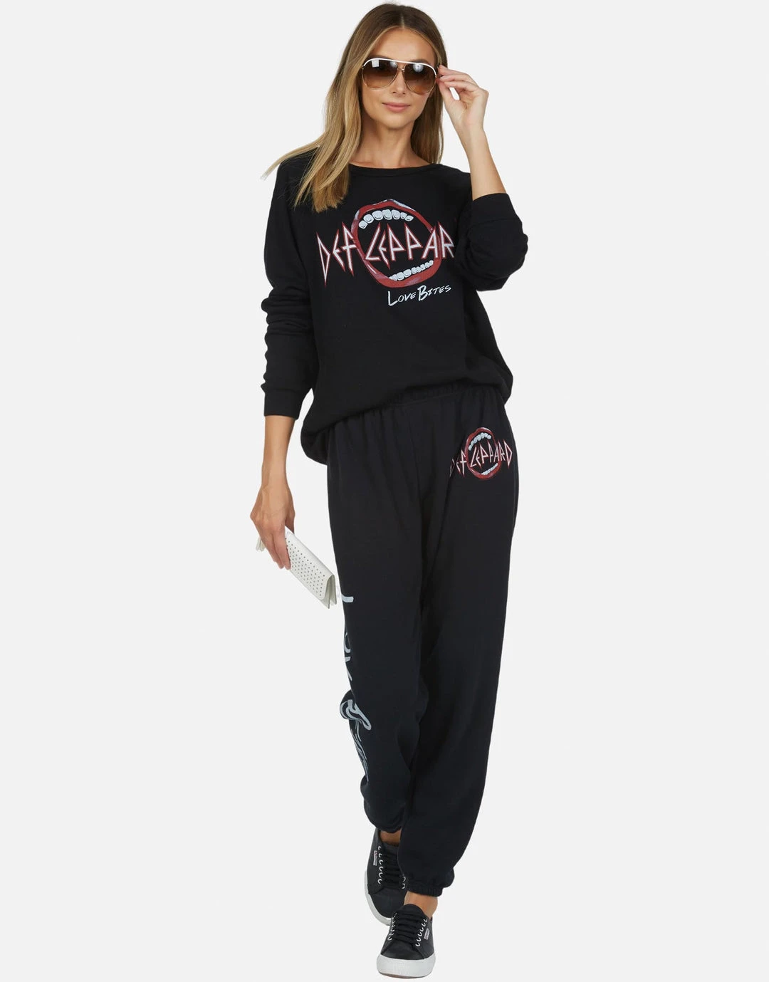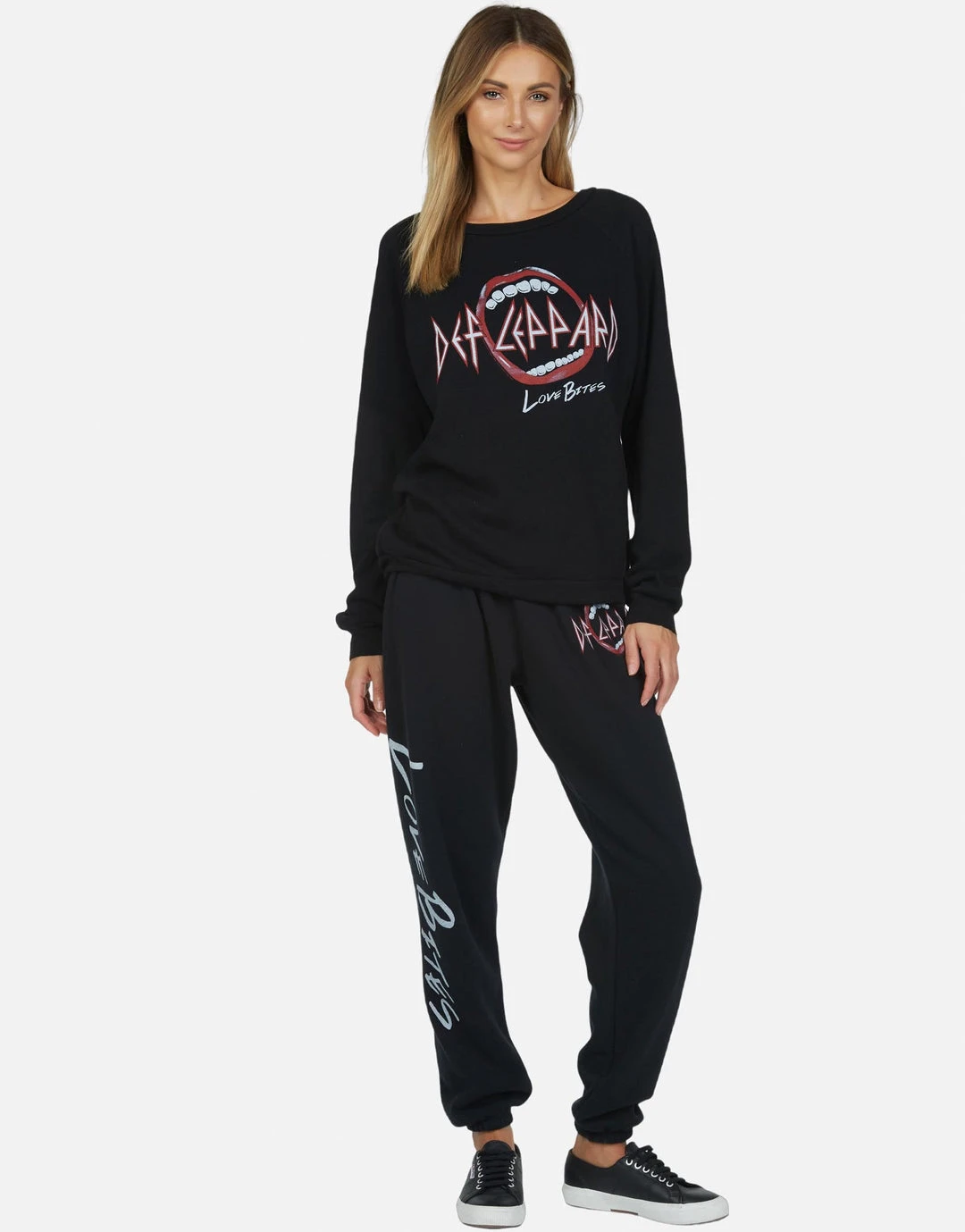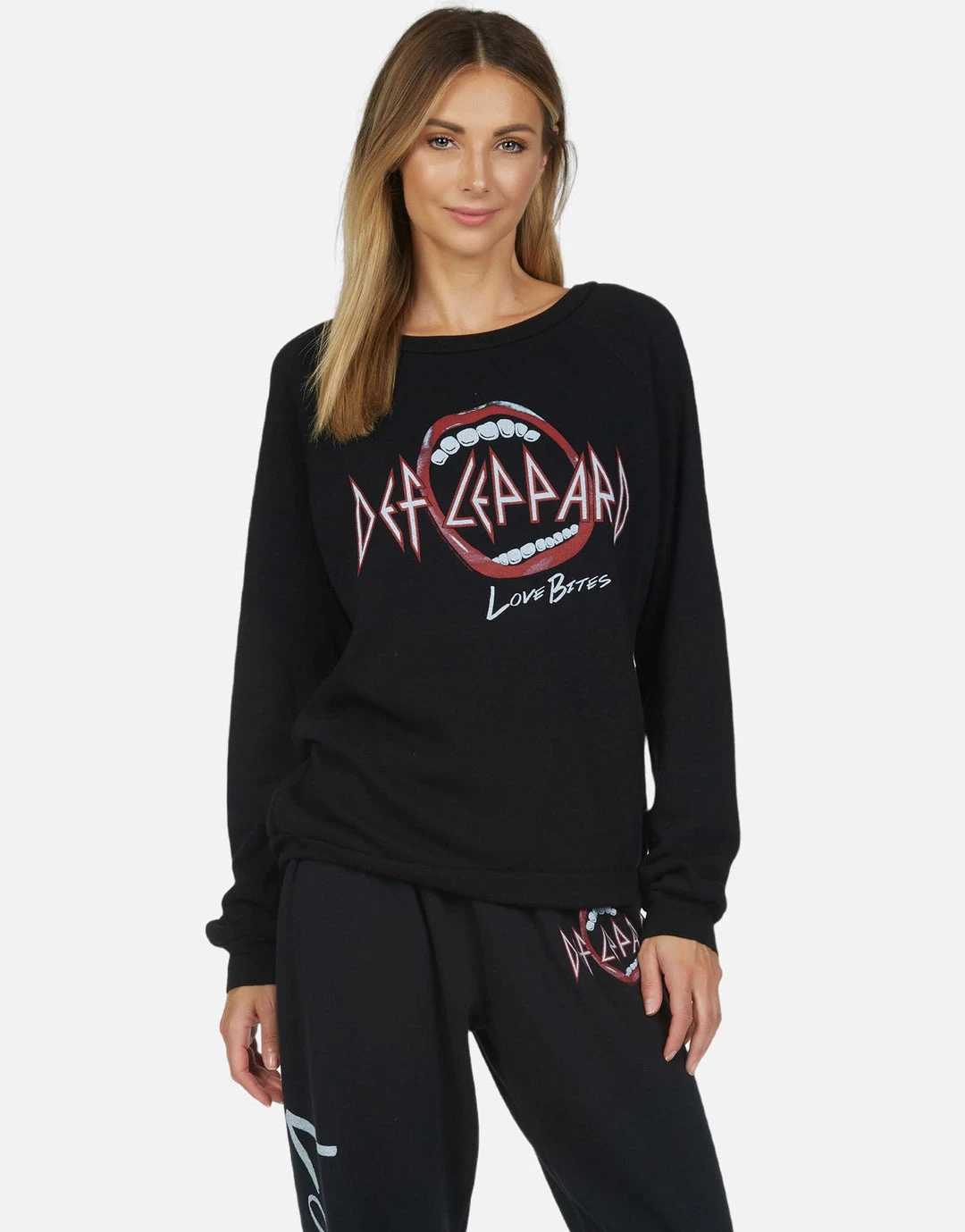 Def Leppard Love Bites Printed on Ultra Soft Lightweight Pullover in Black by Lauren Moshi.