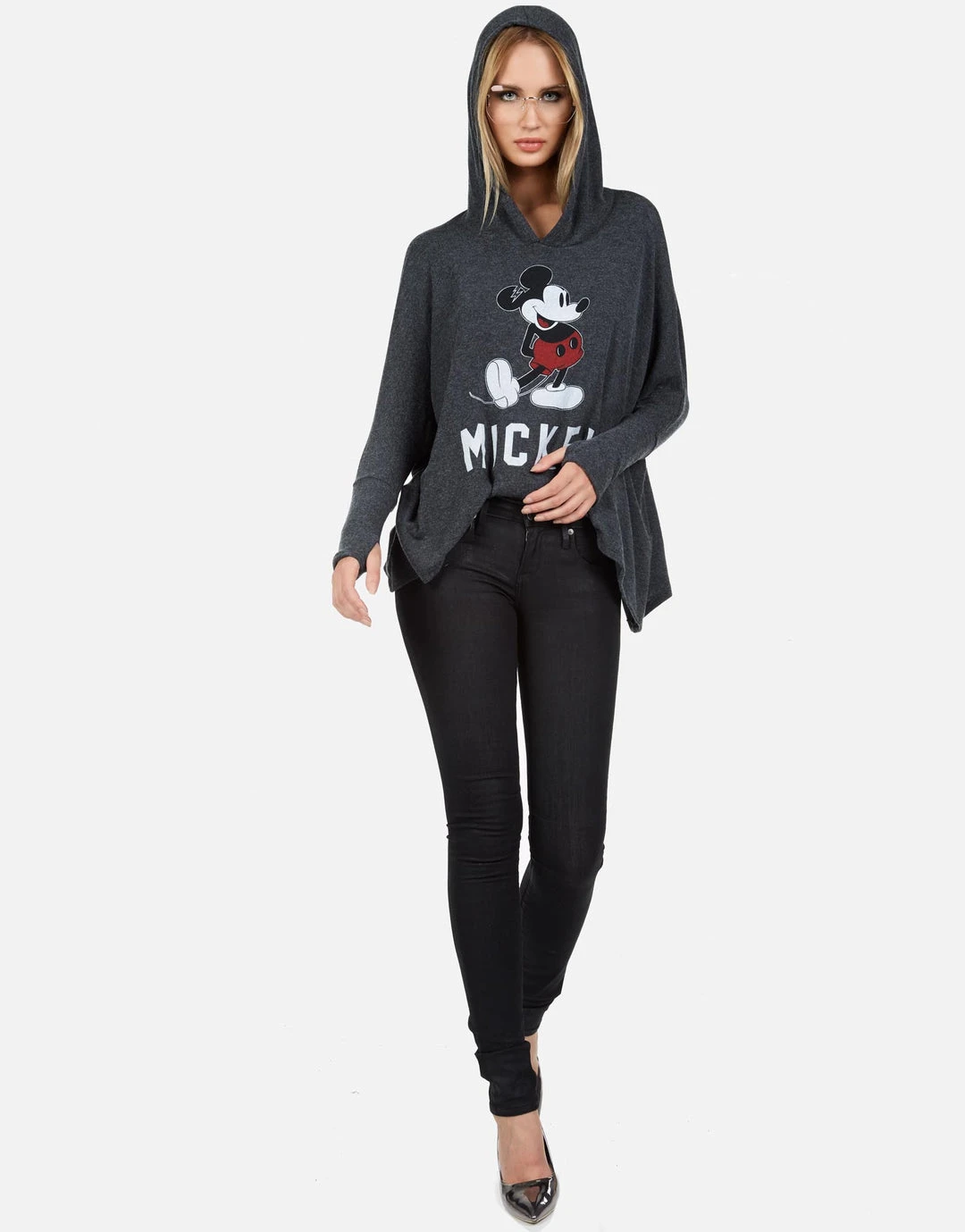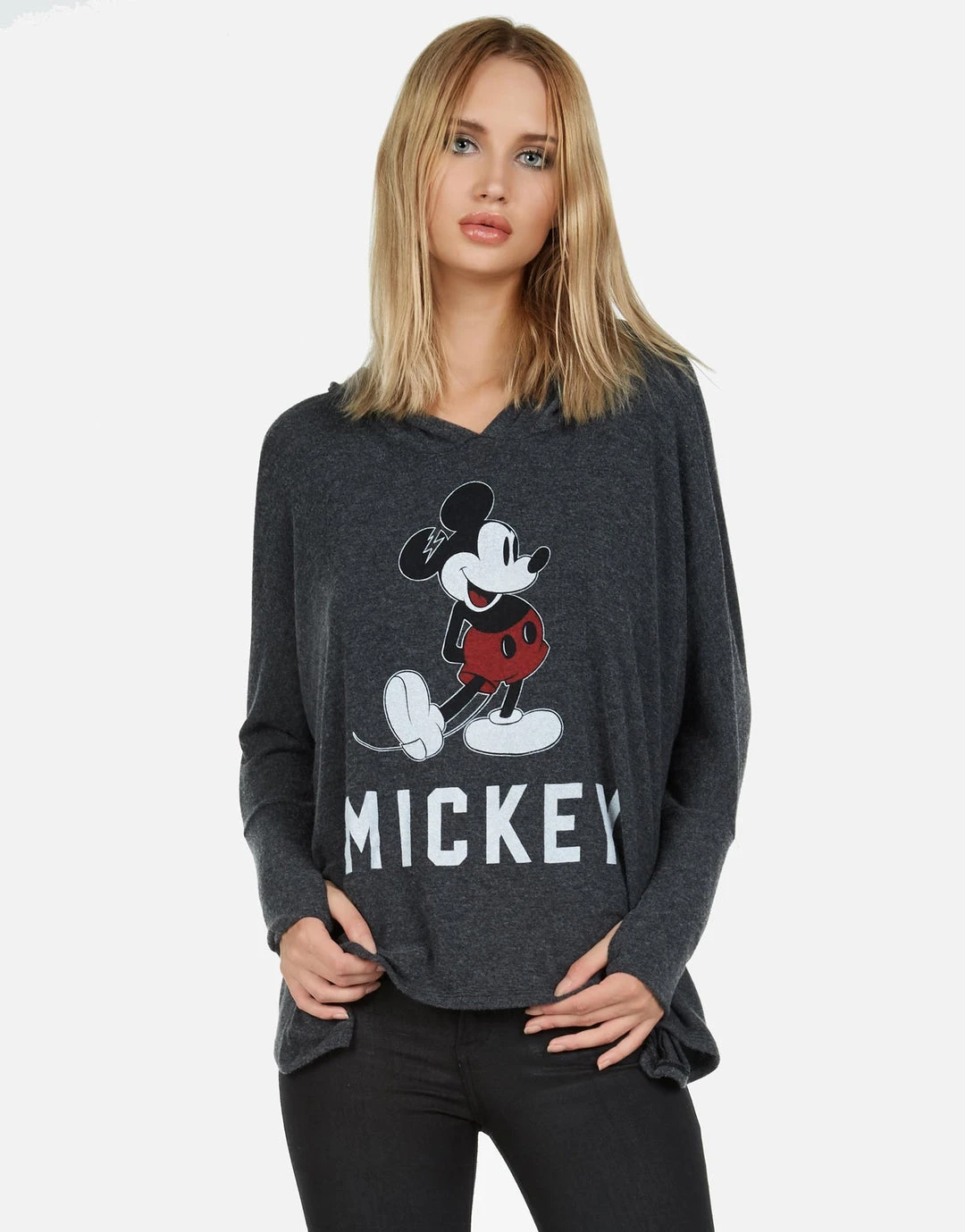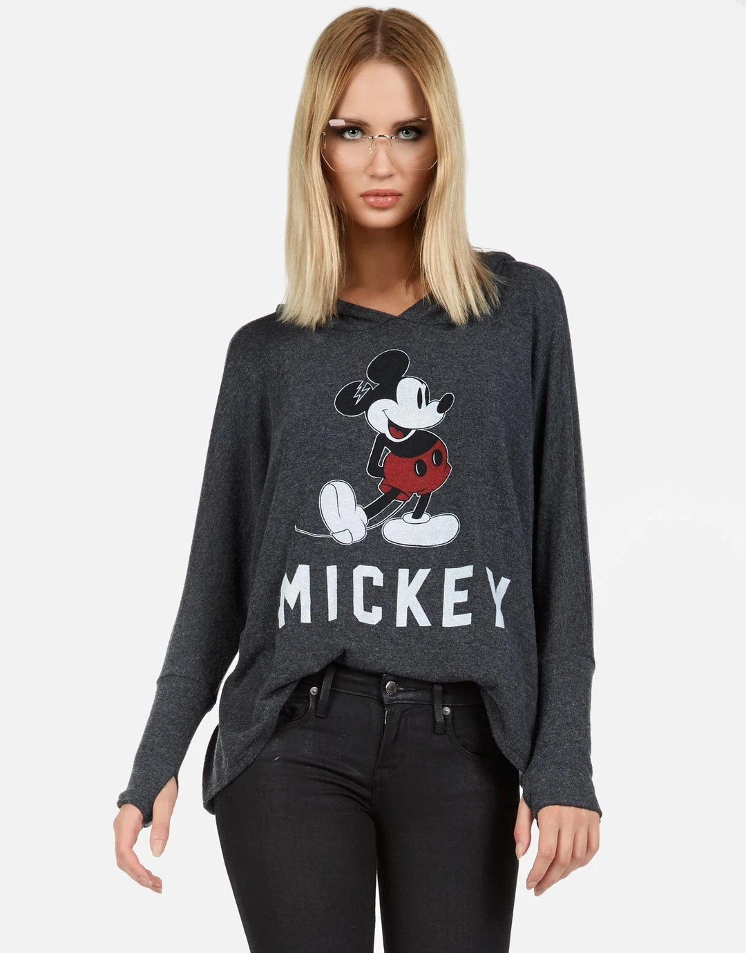 WEB EXCLUSIVE | Mickey Mouse Printed on Ultra Soft Lightweight Hoodie in Heather Black by Lauren Moshi.